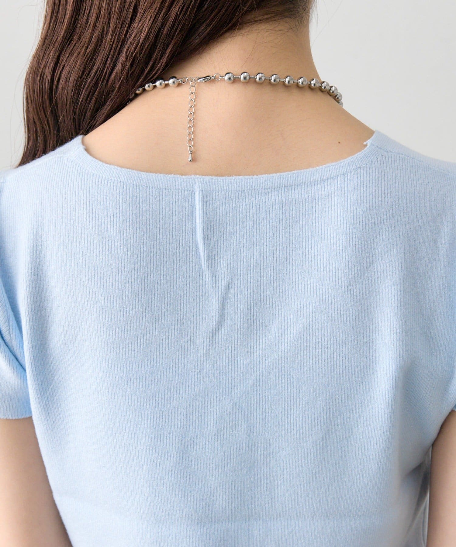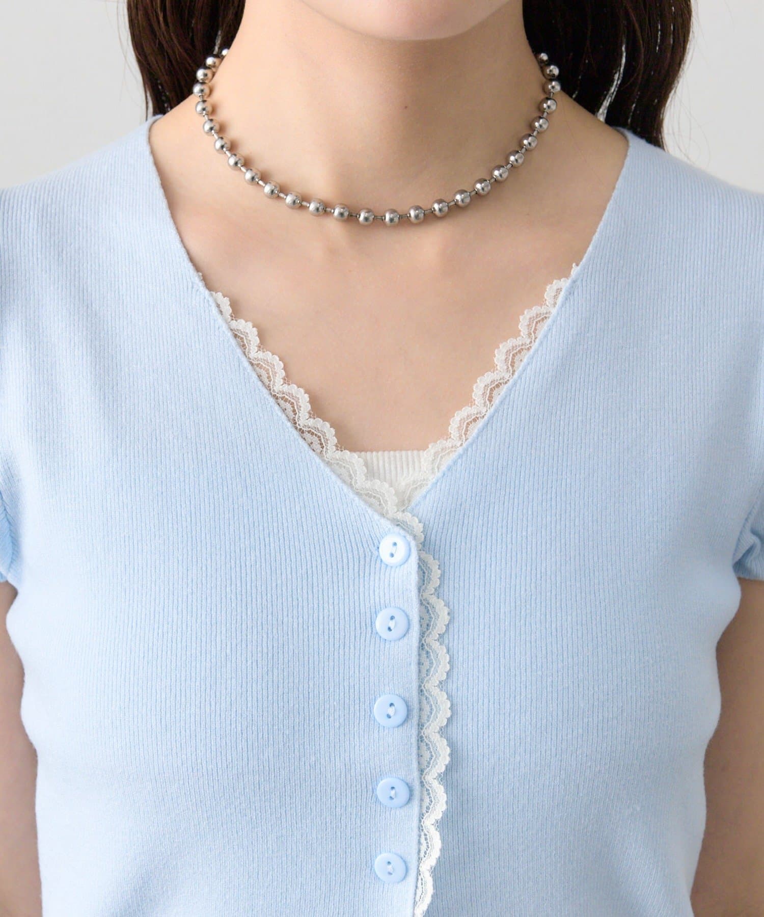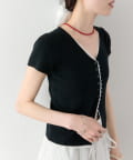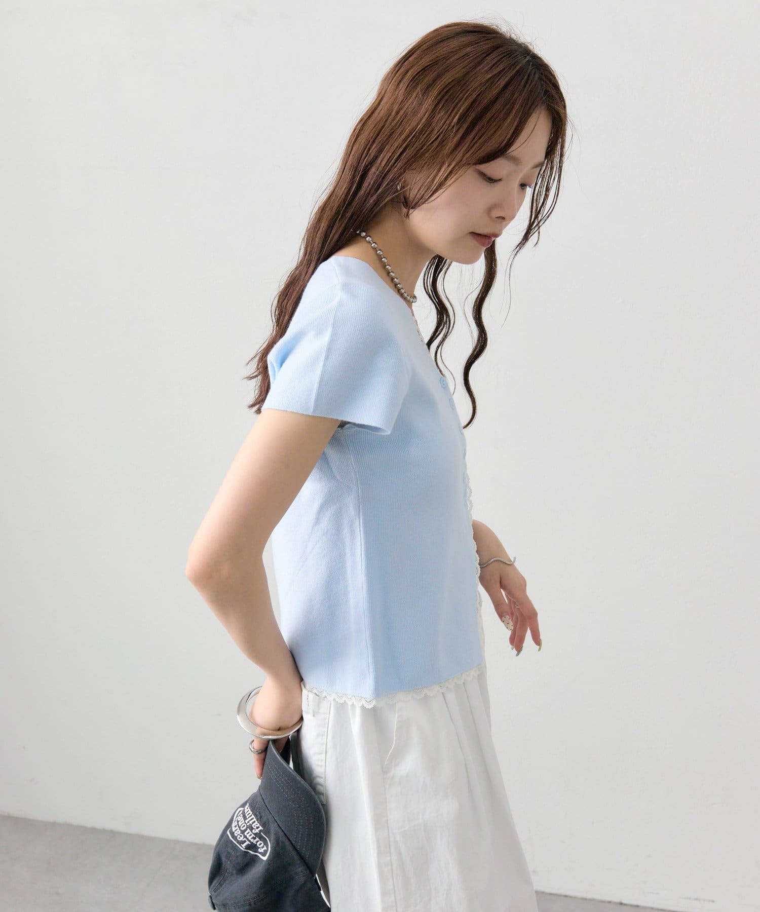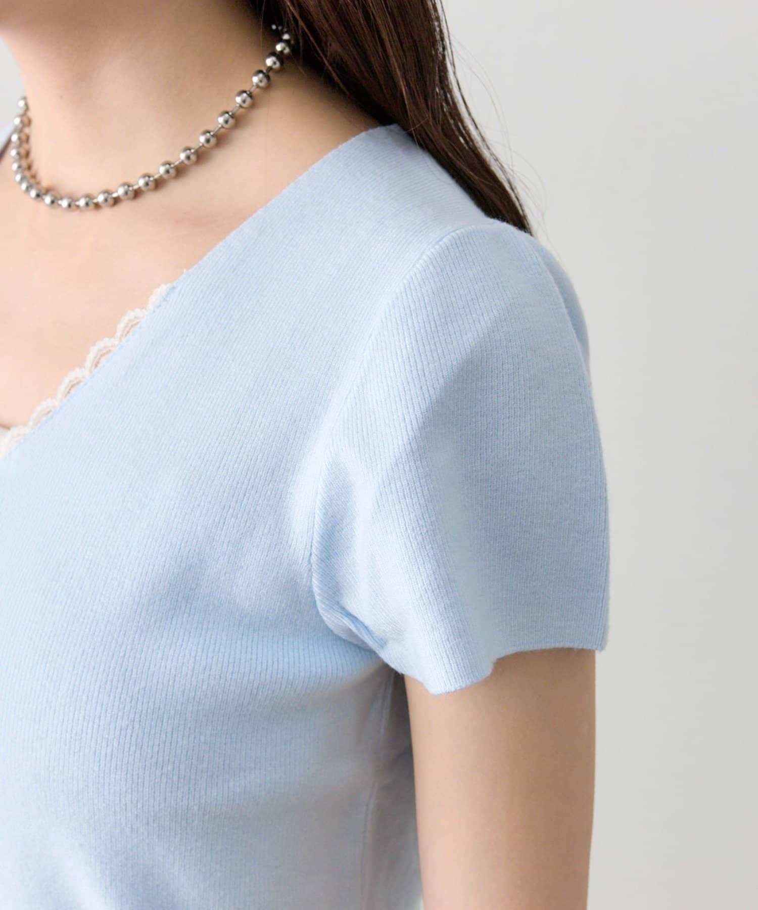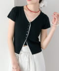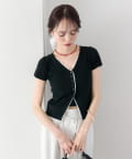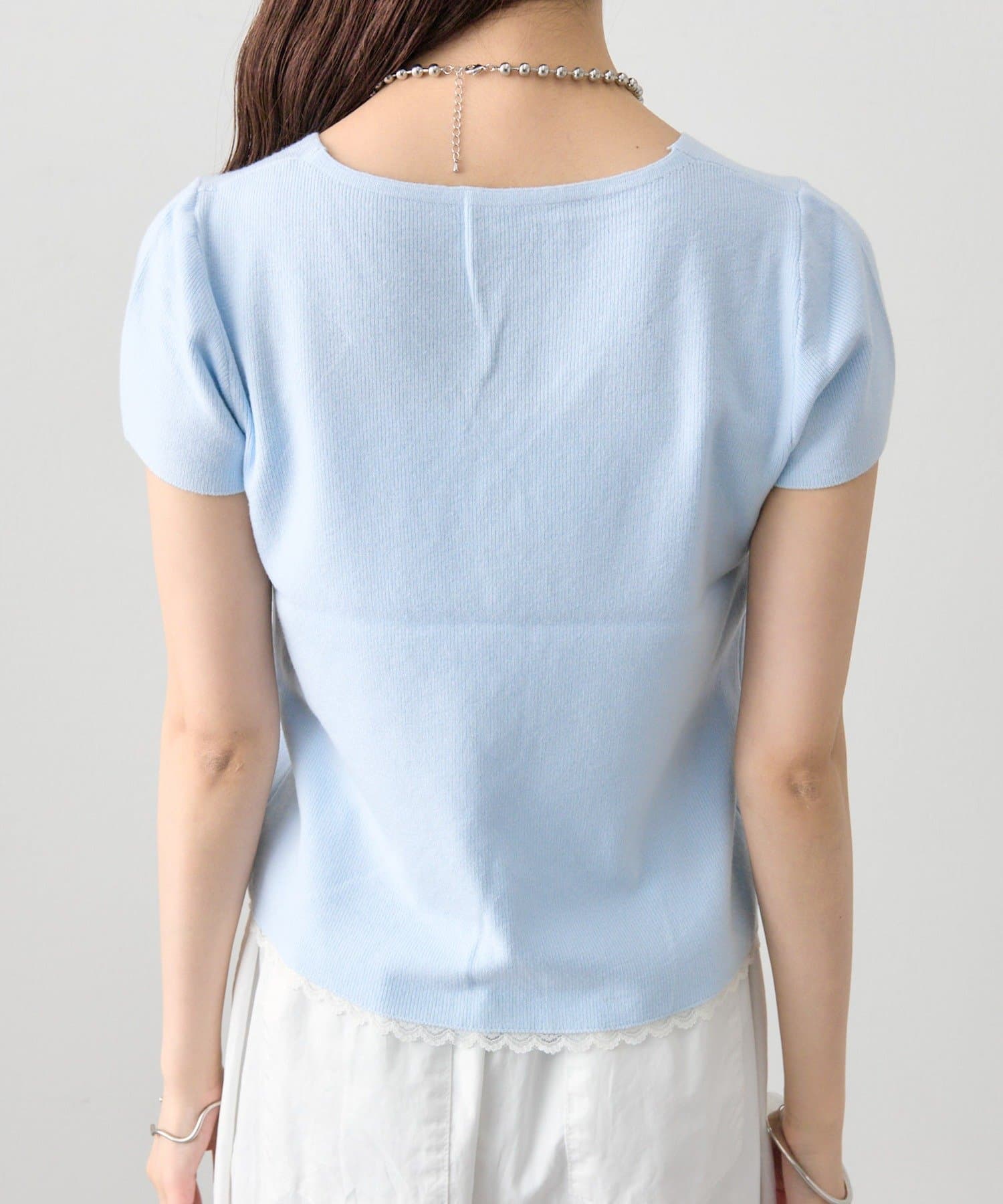 mystic(ミスティック) レースライン半袖ニットカーディガン