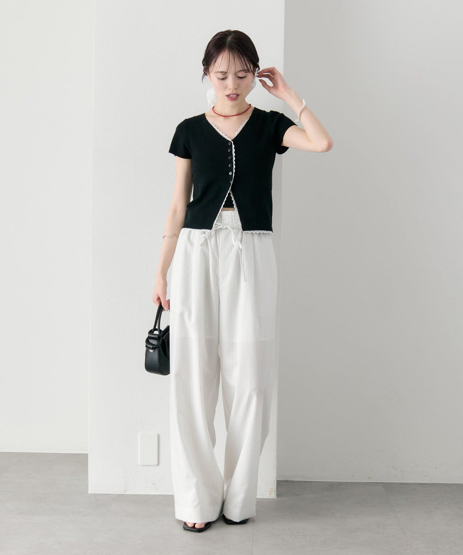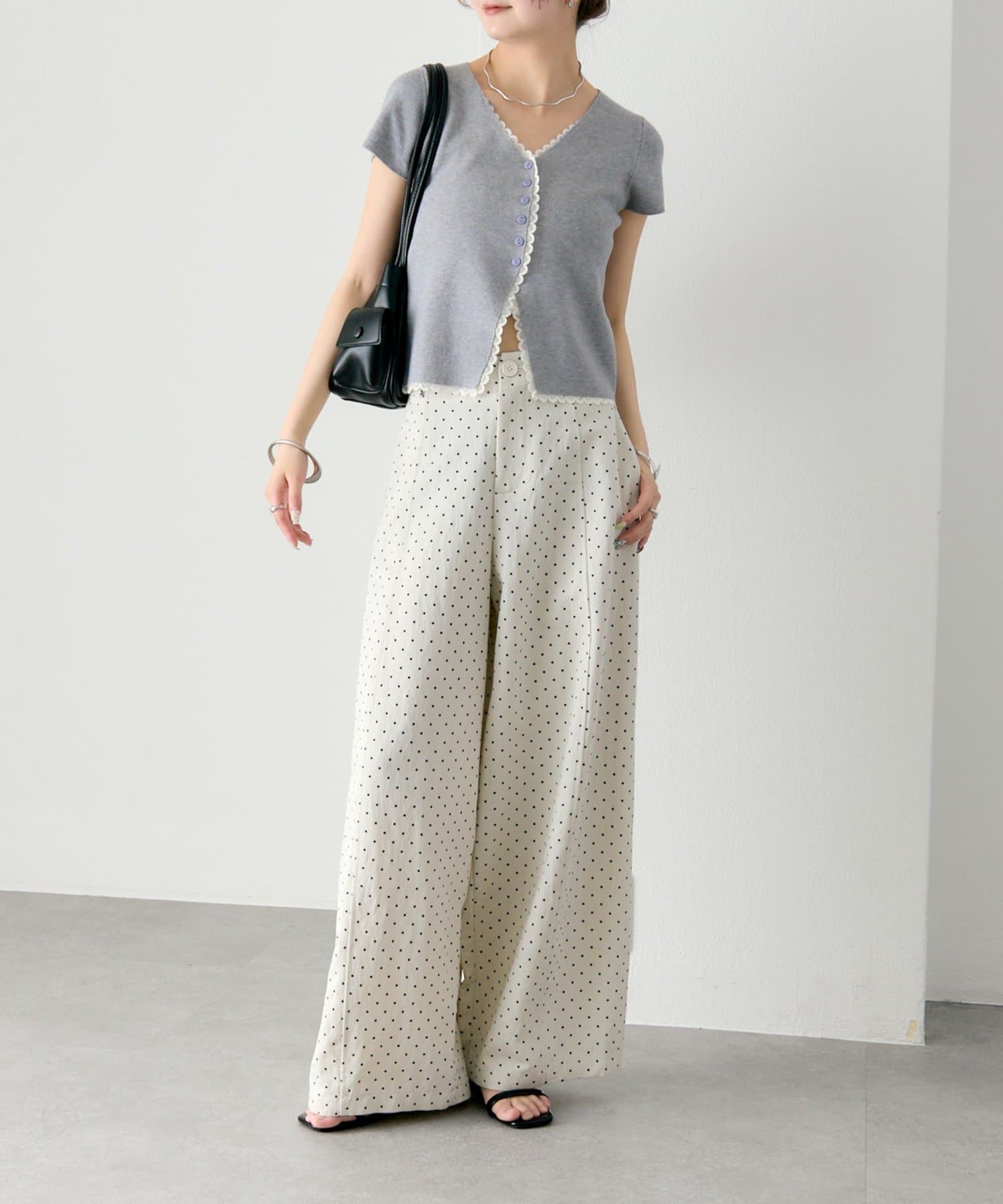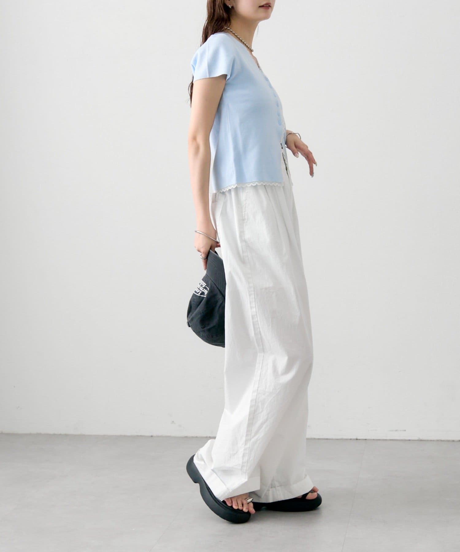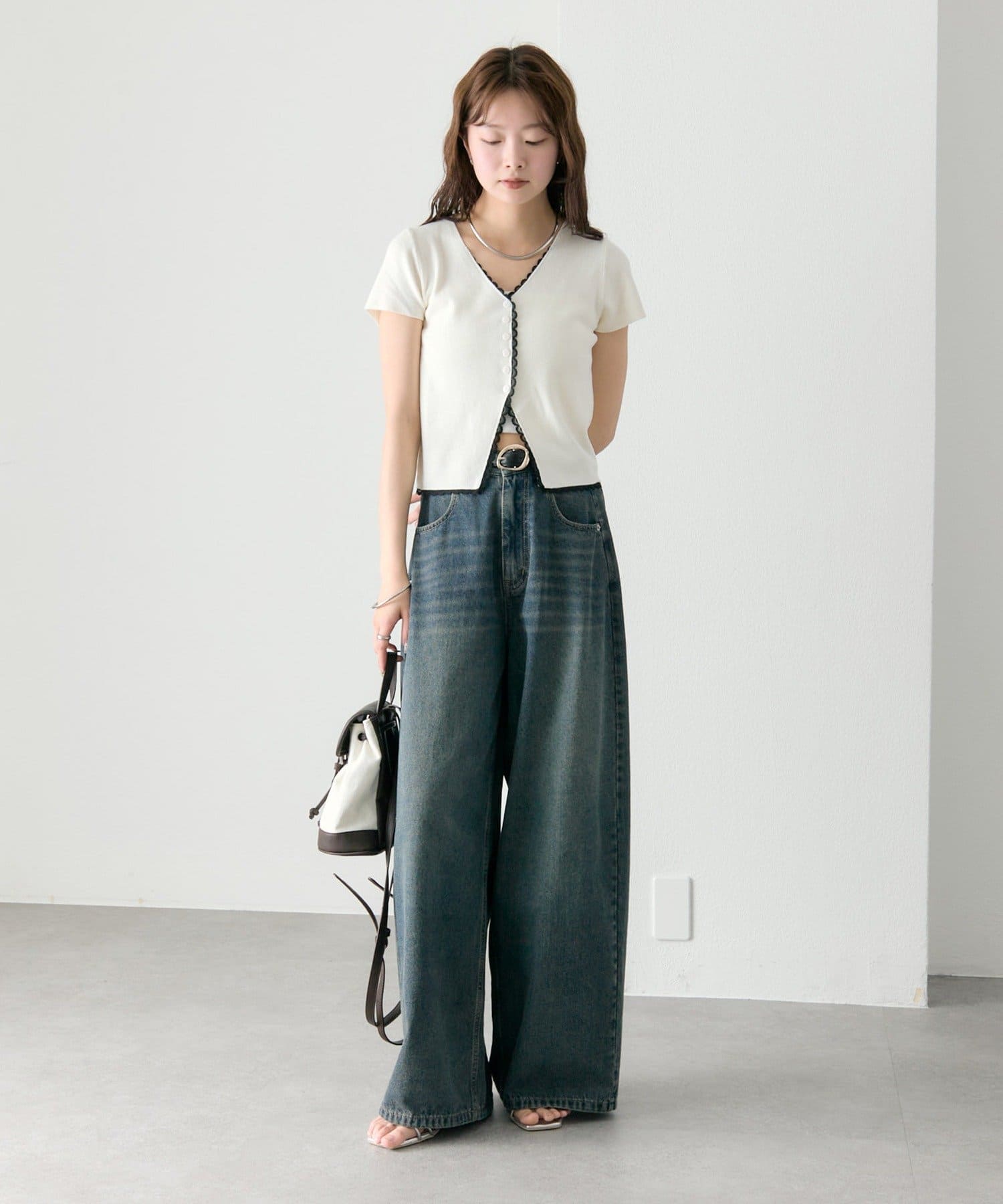・コンパクトな丈感なので、ハイウエストボトムとの相性抜群もです。