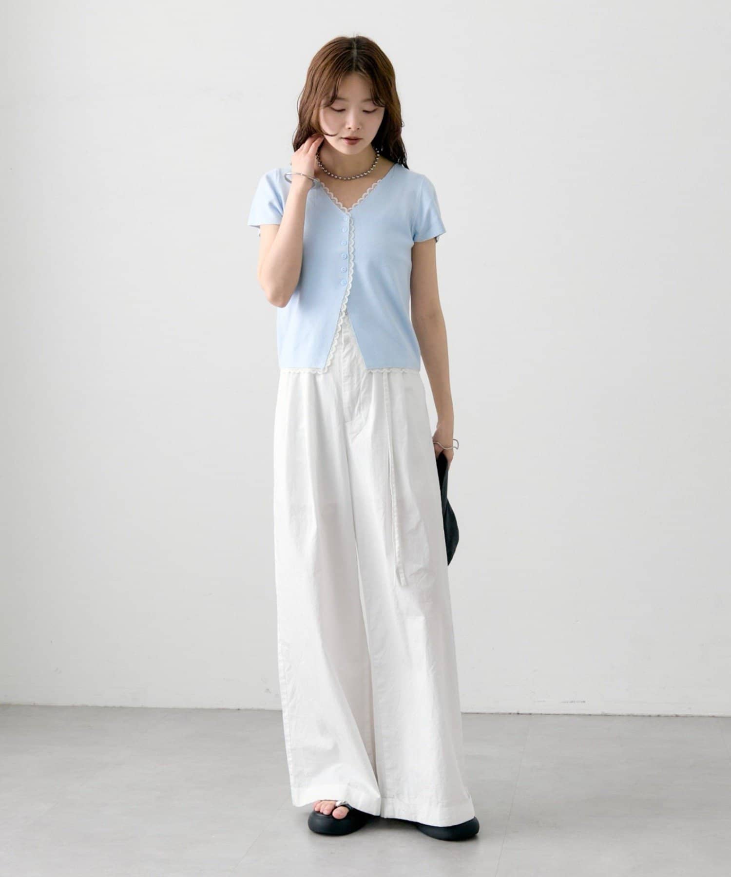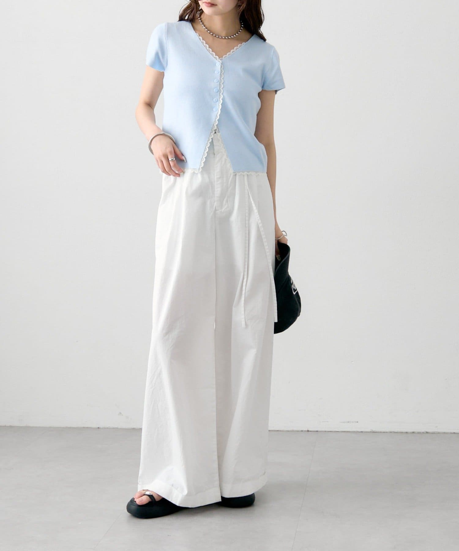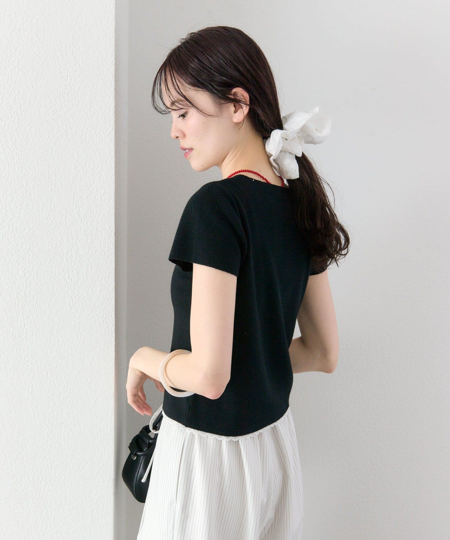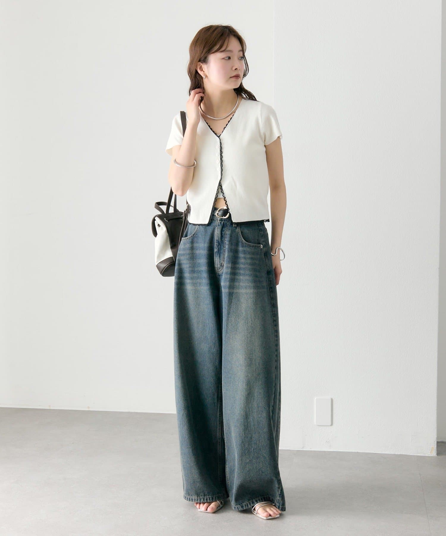 ・コンパクトな丈感なので、ハイウエストボトムとの相性抜群もです。