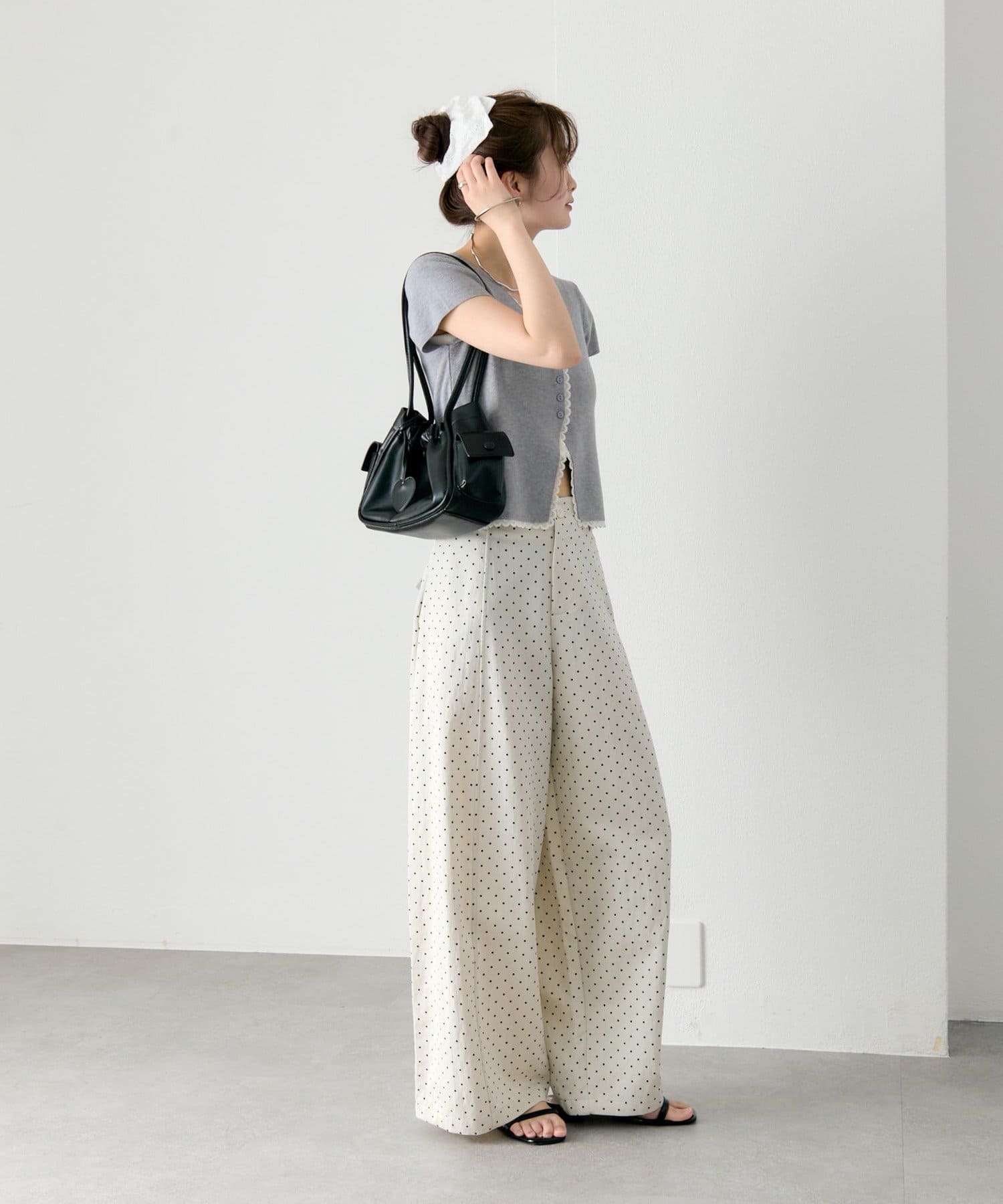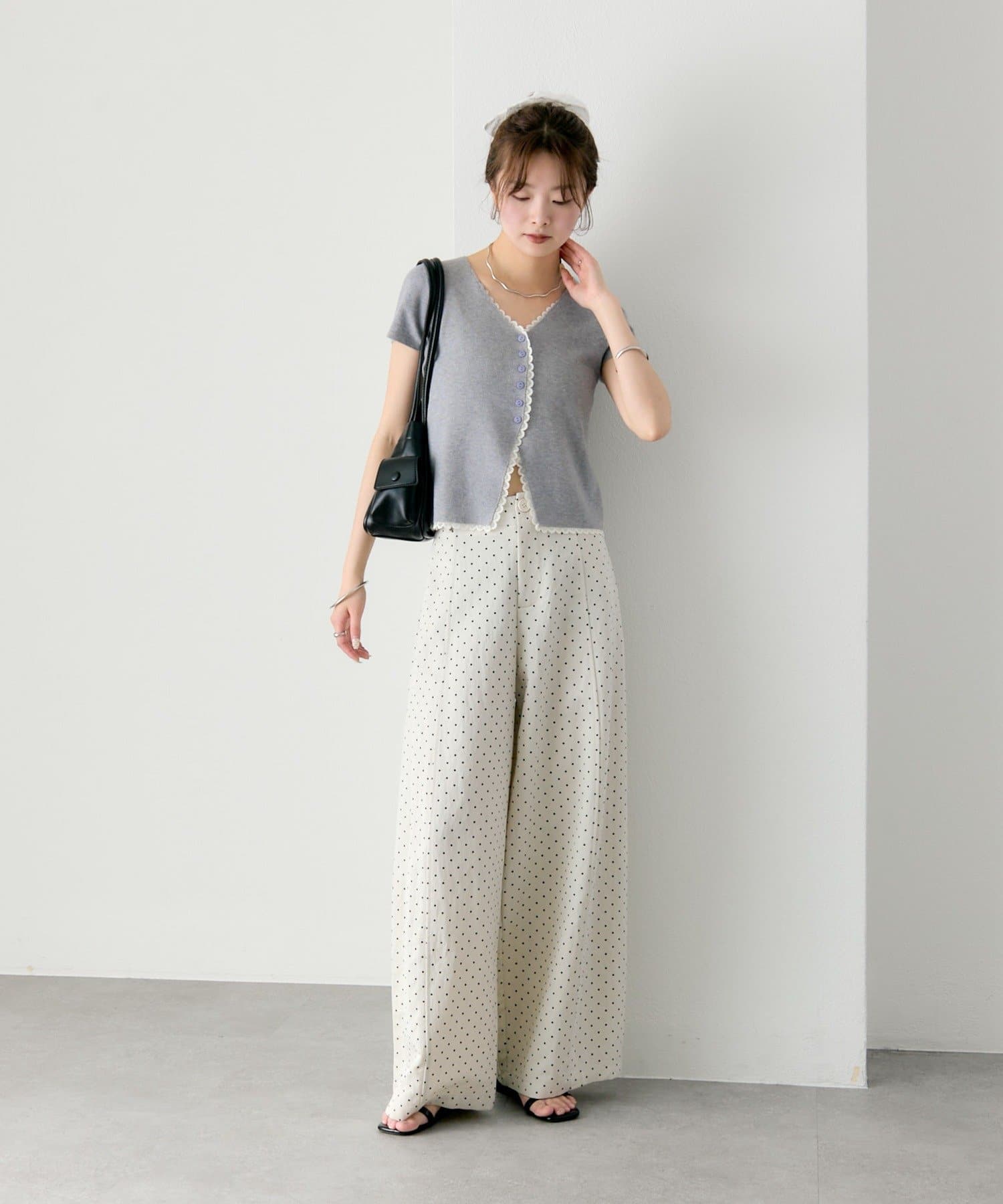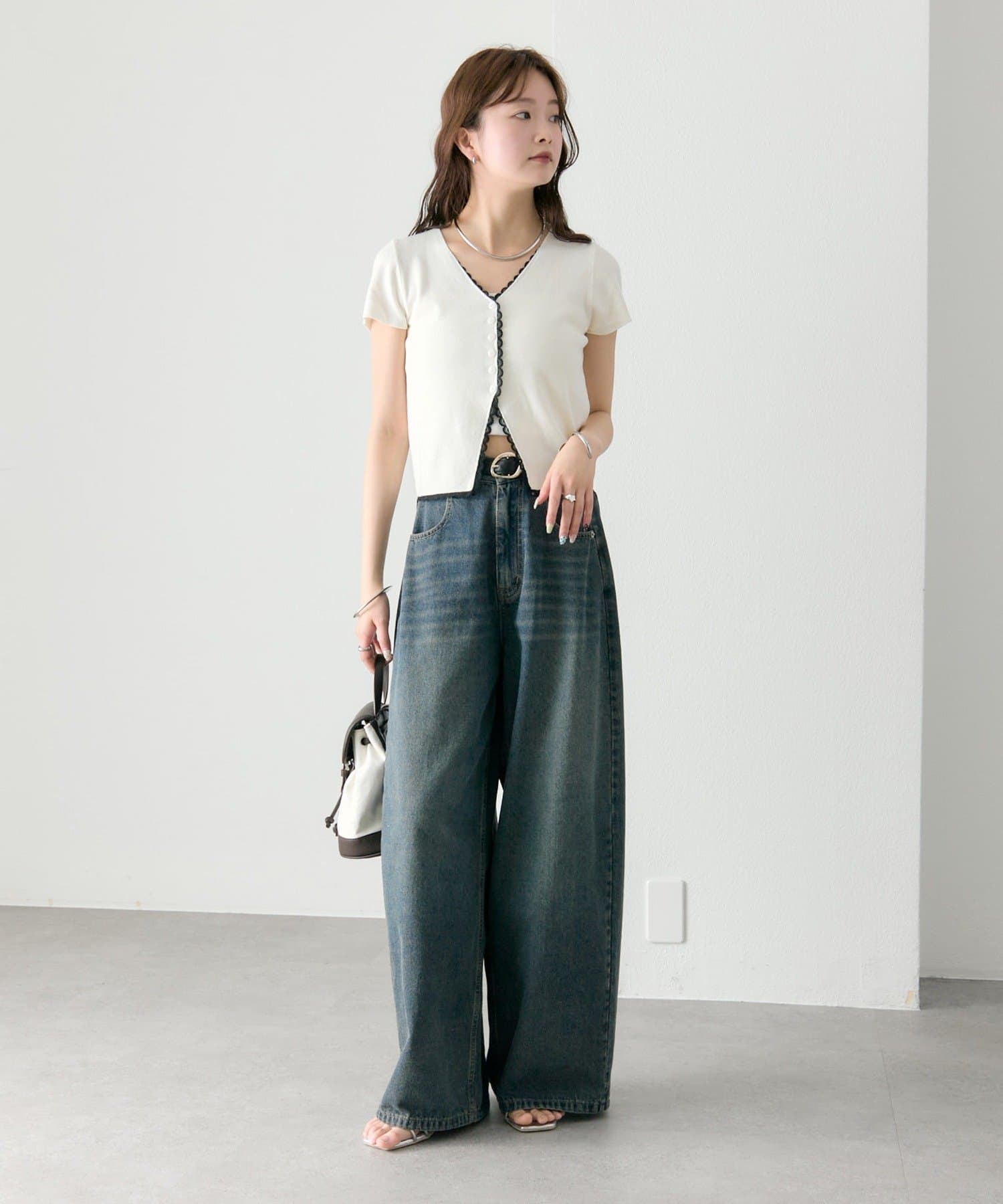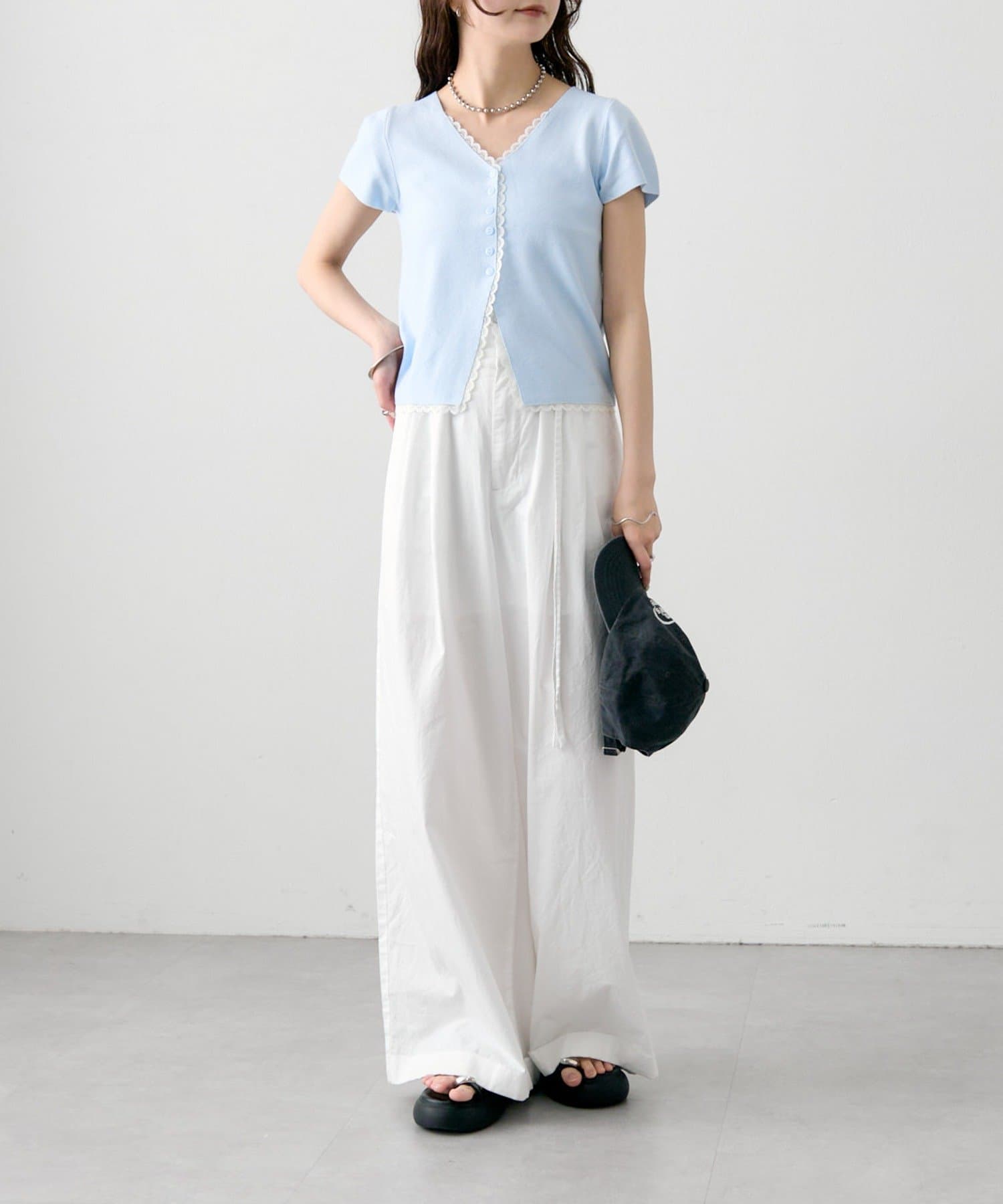 ・コンパクトな丈感なので、ハイウエストボトムとの相性抜群もです。