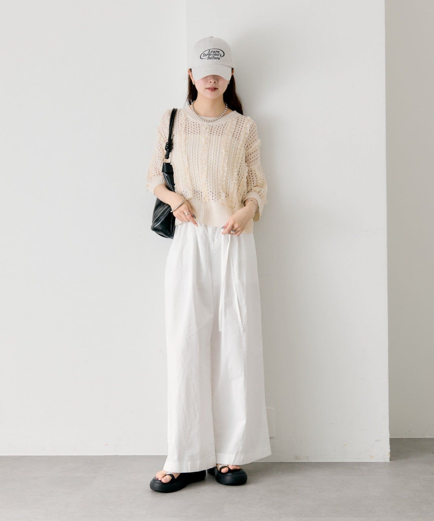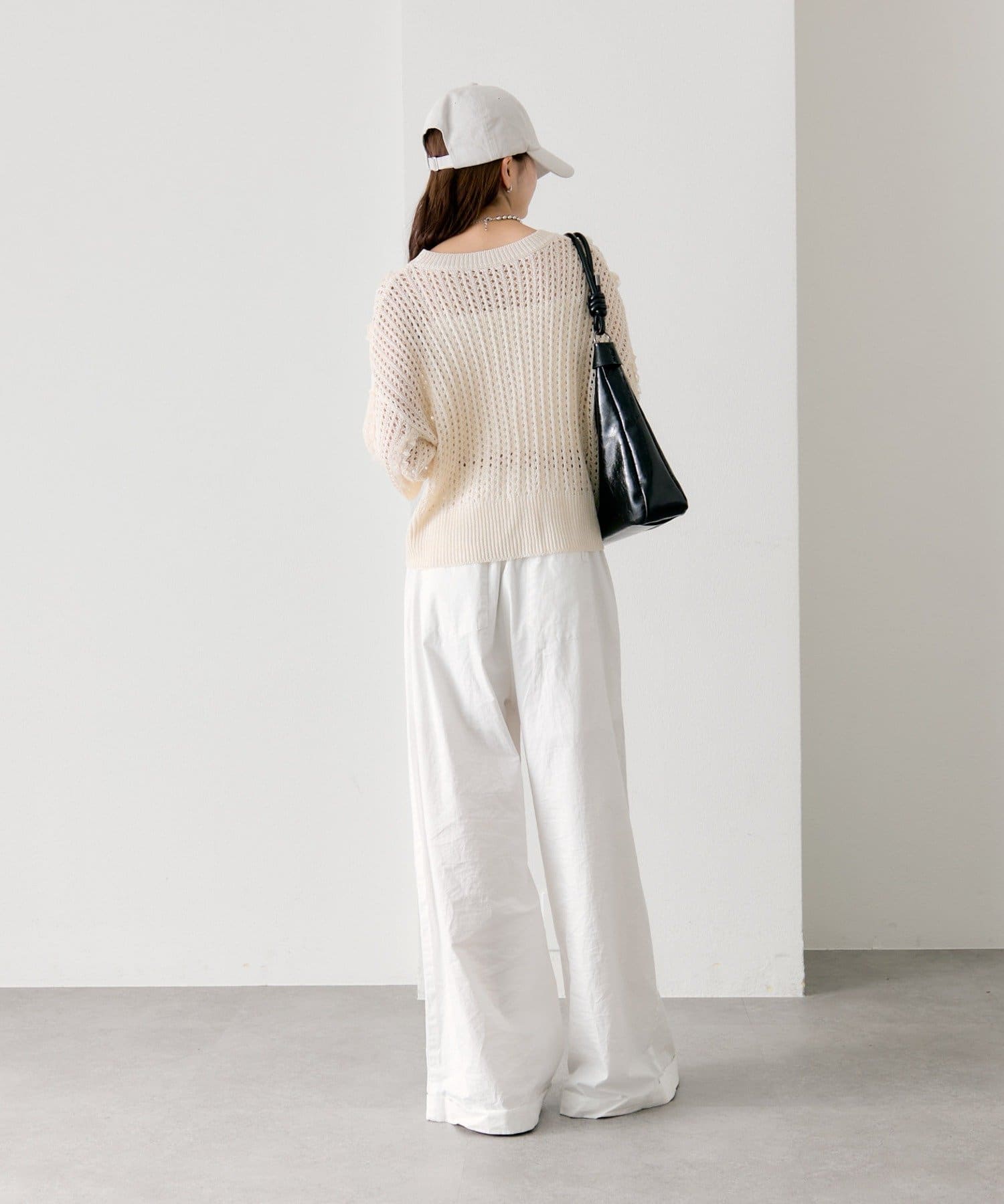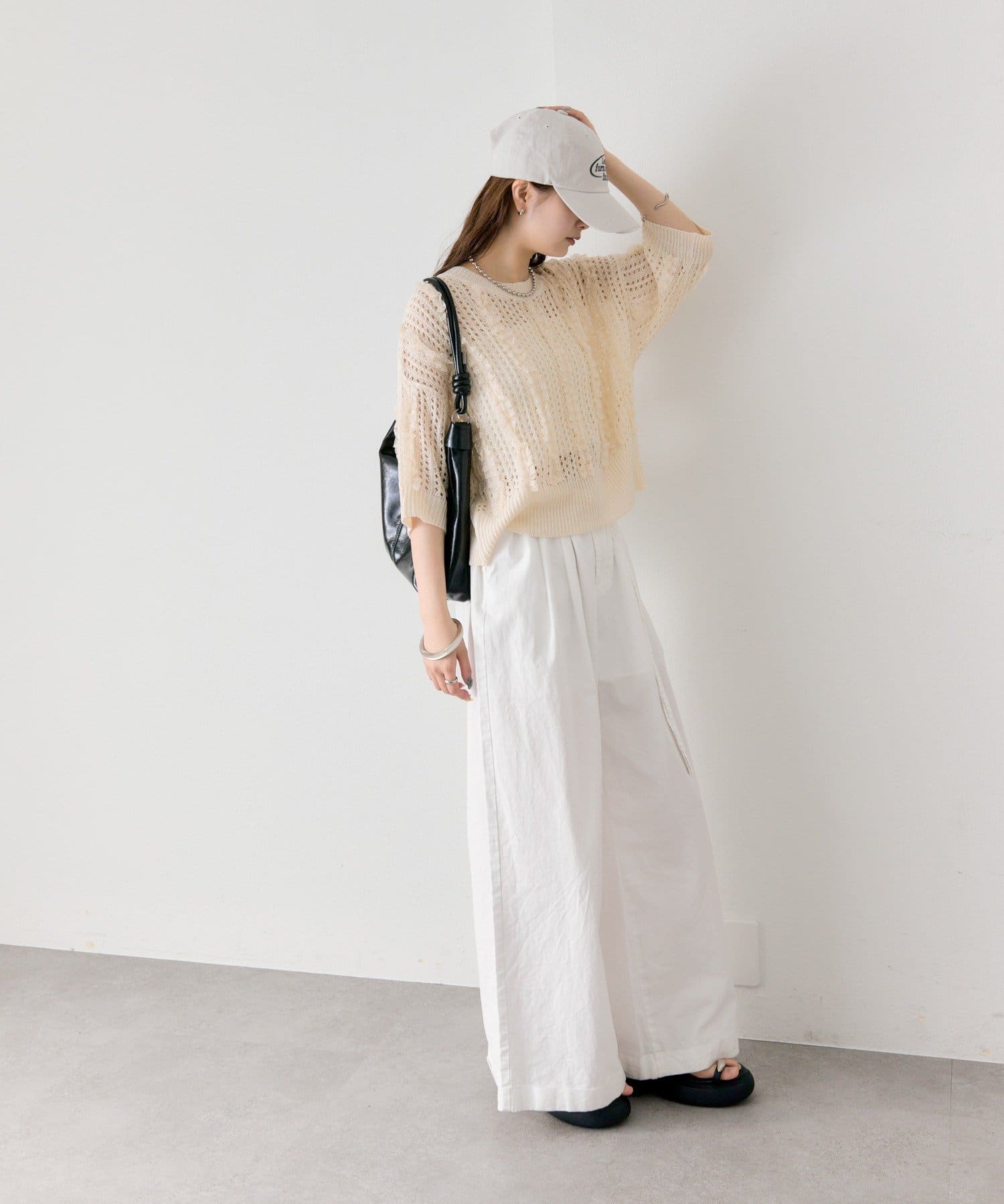 ・透け感と緩めのシルエットで、抜け感のある仕上がりに。