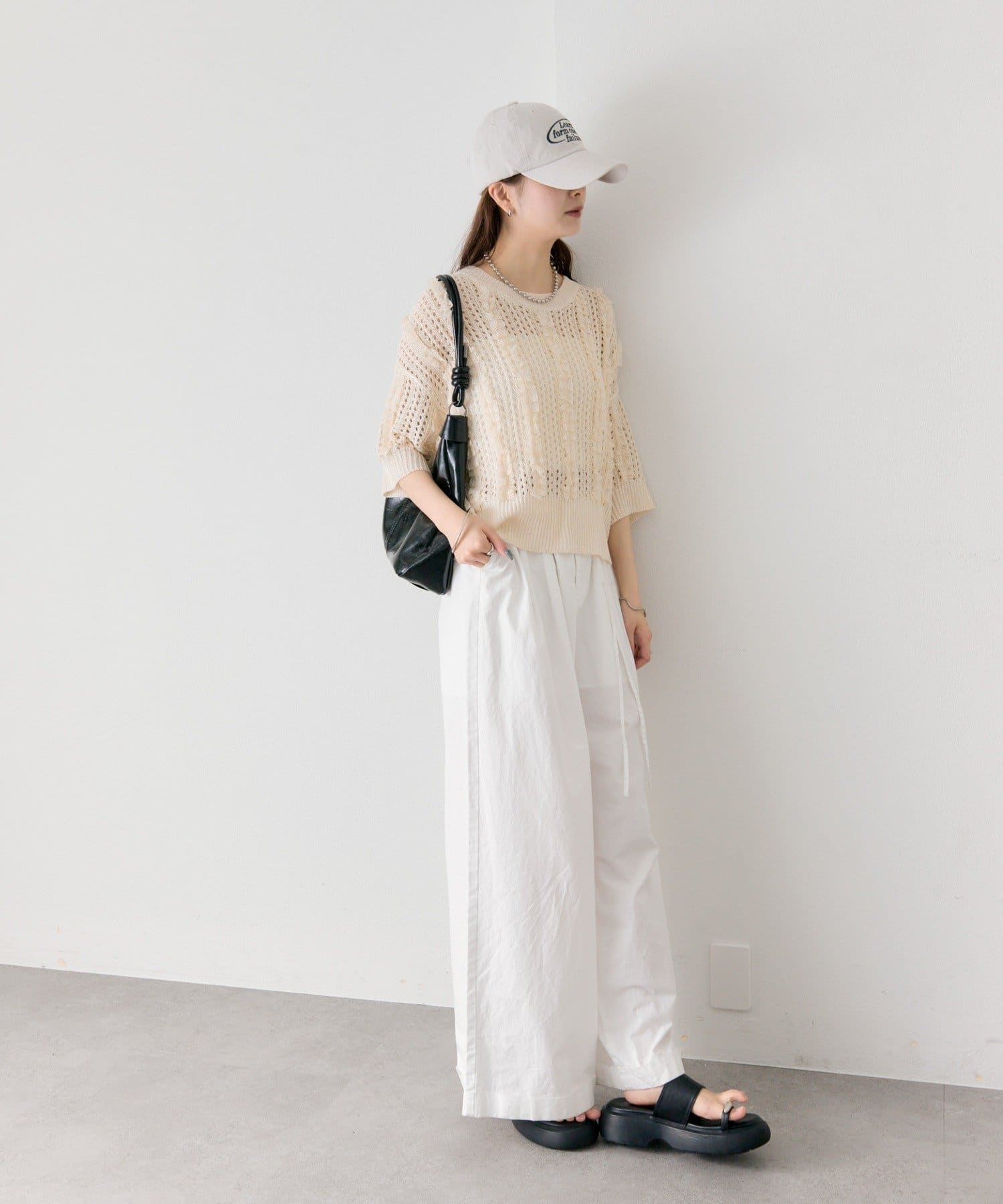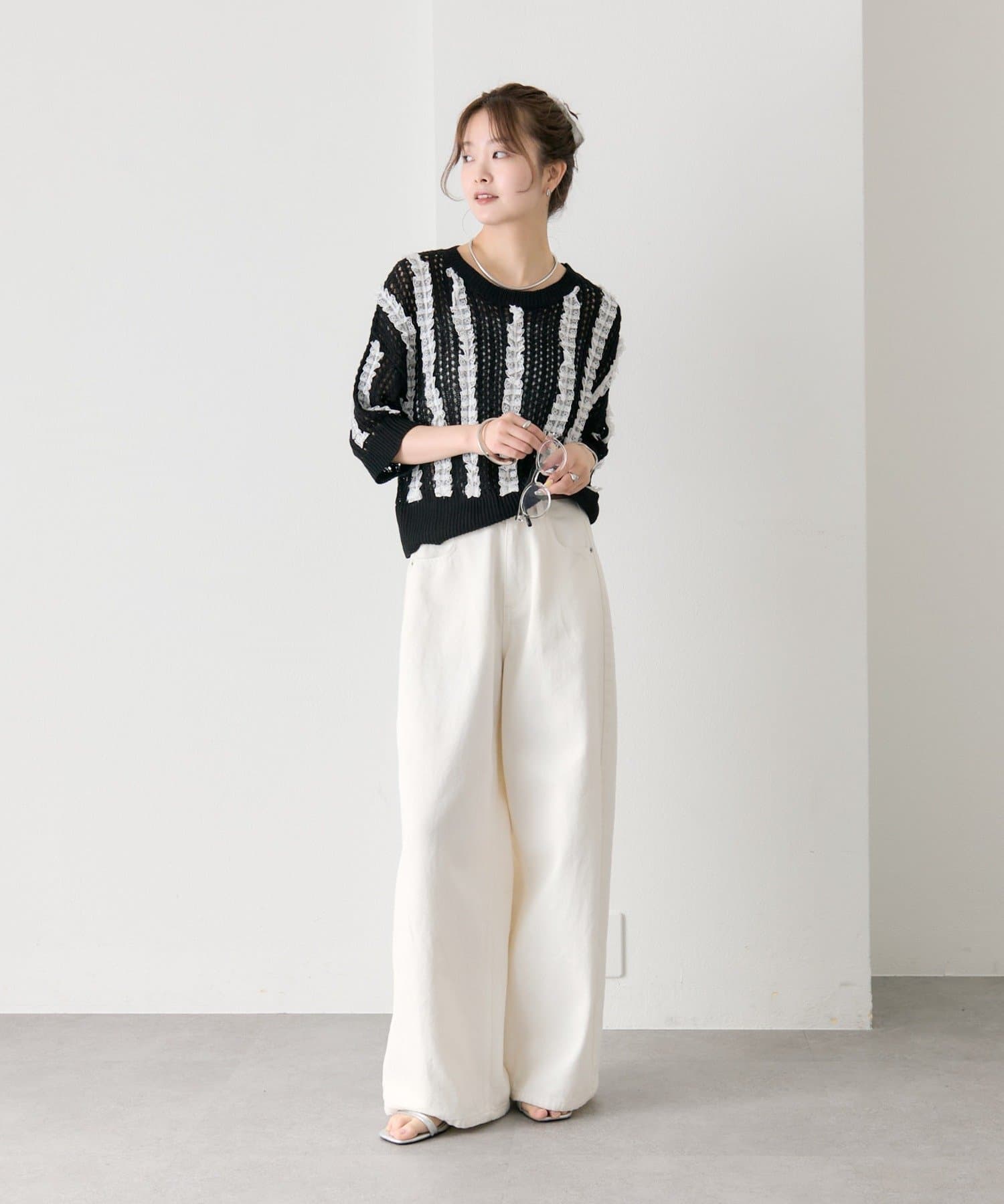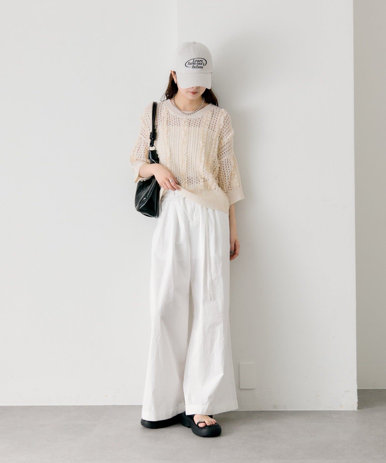 ・透け感と緩めのシルエットで、抜け感のある仕上がりに。