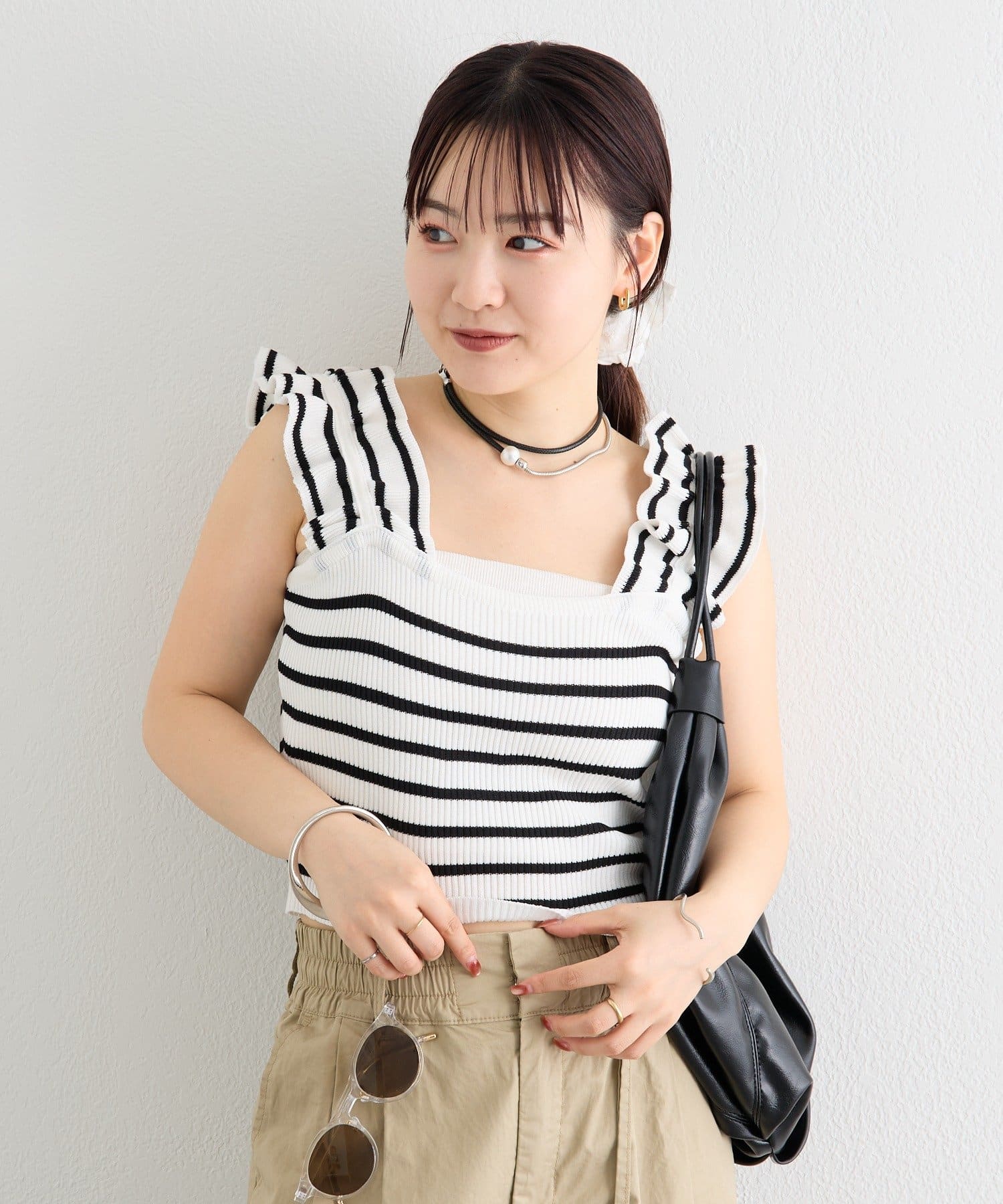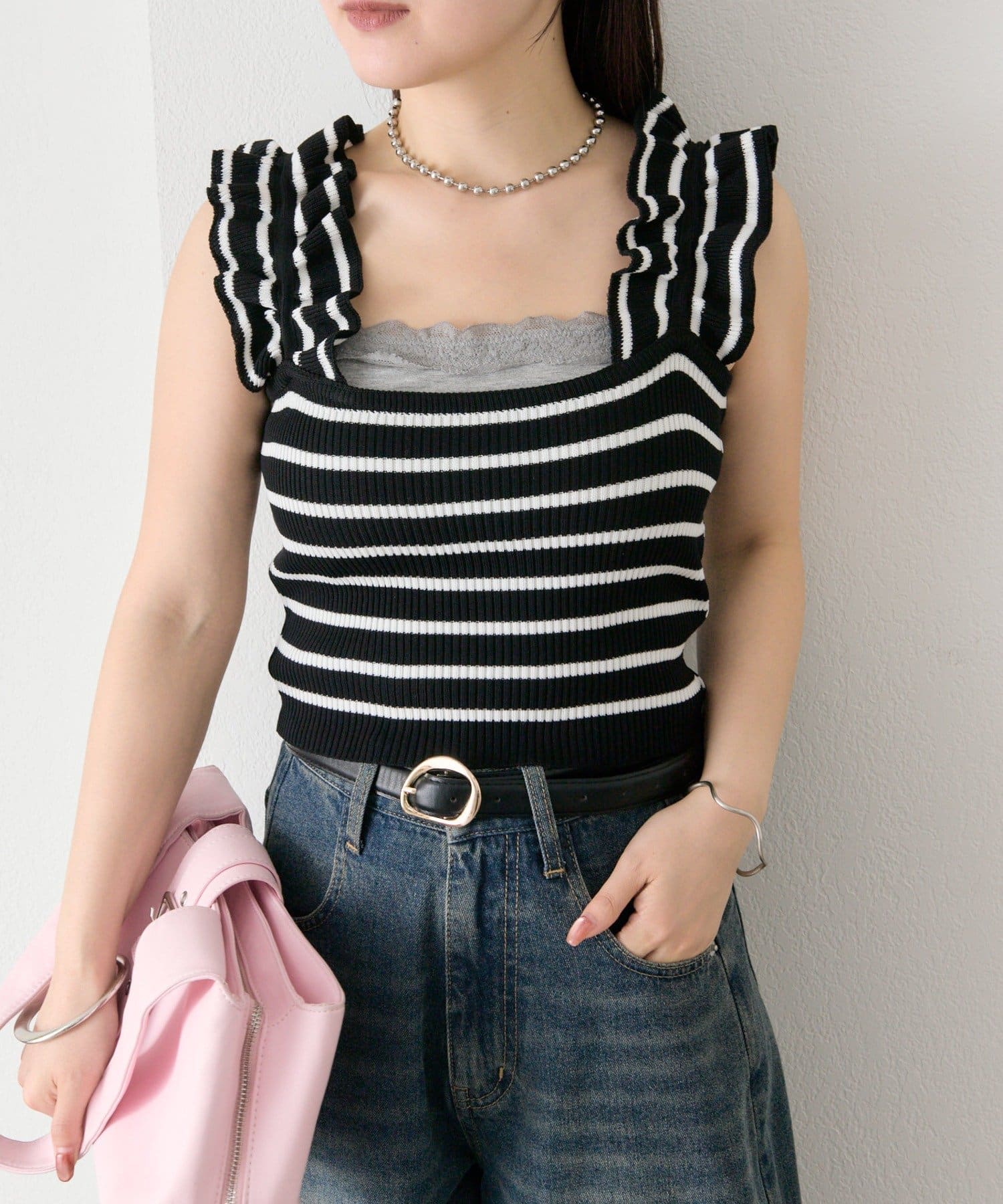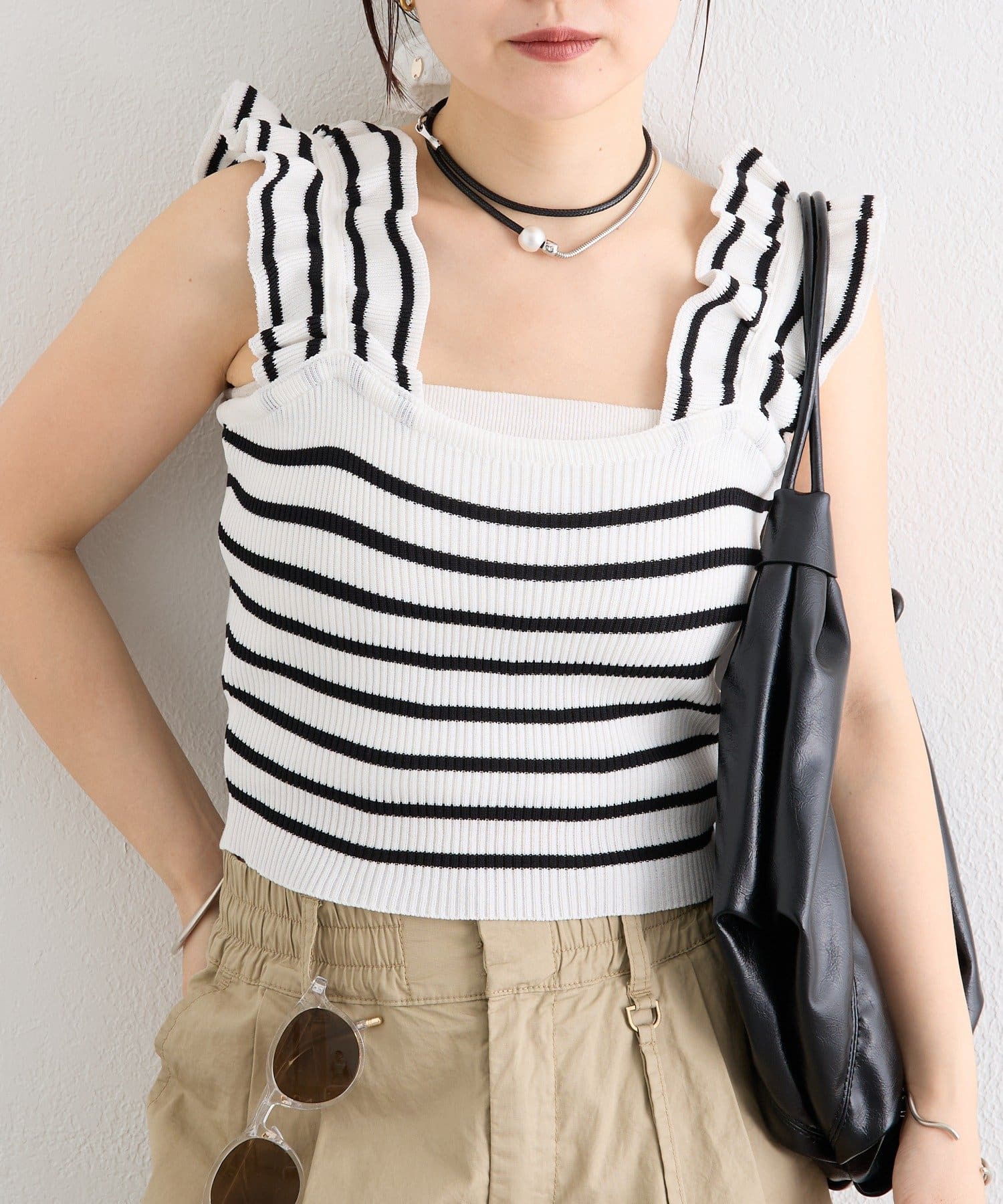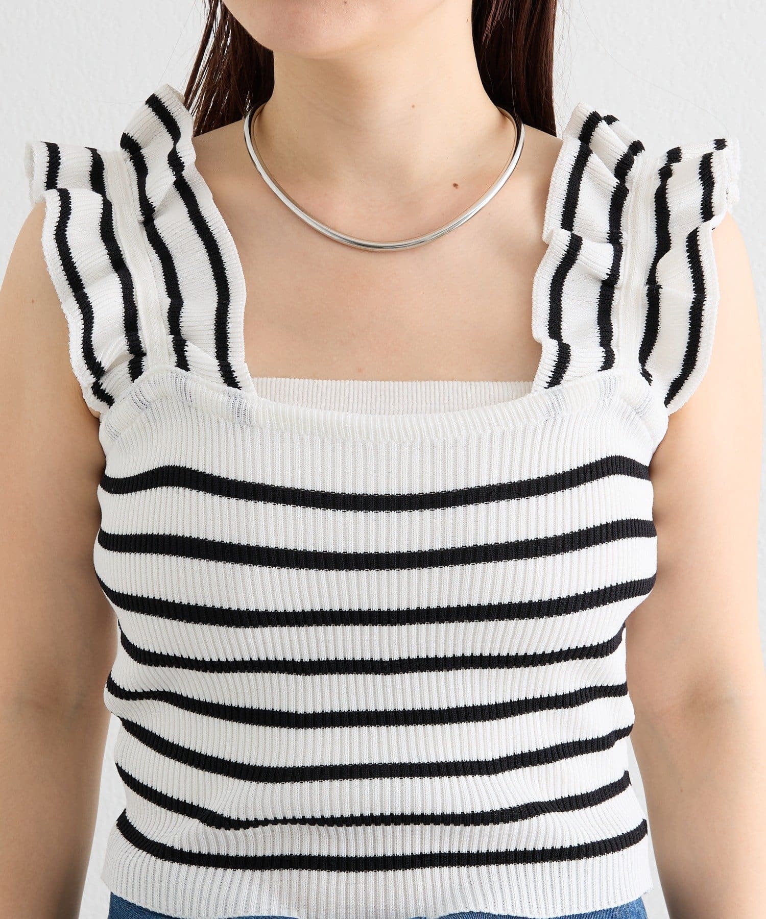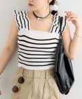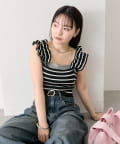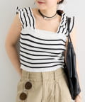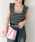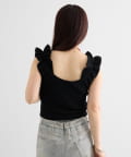 肩にあしらわれたフリルが可愛いニットタンク