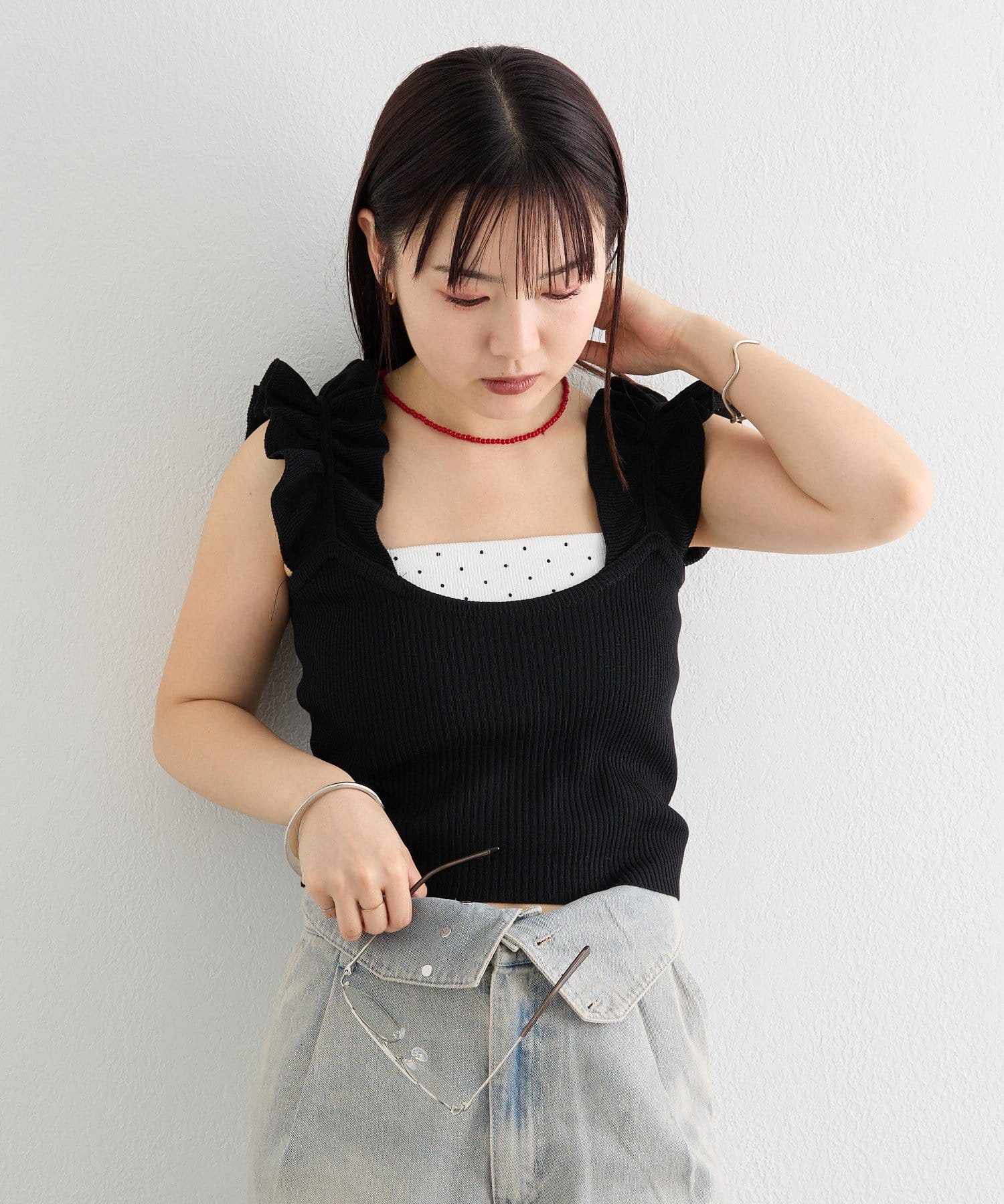 • mystic(ミスティック) フリルタンクニット
