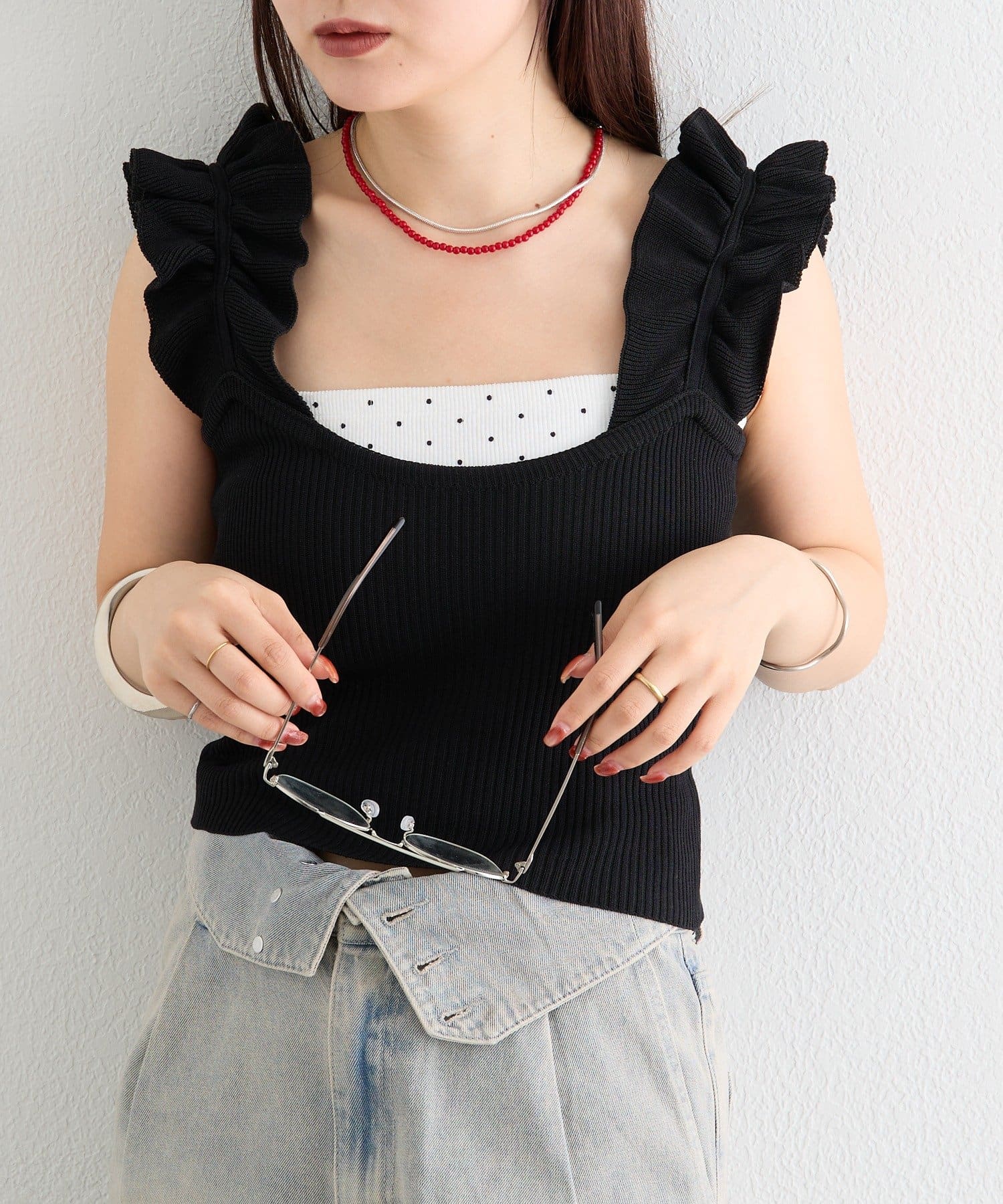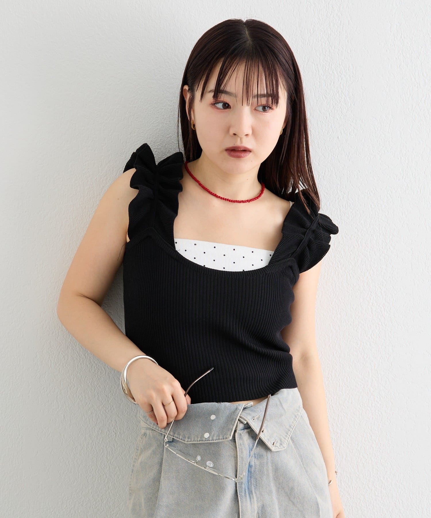 mystic(ミスティック) フリルタンクニット