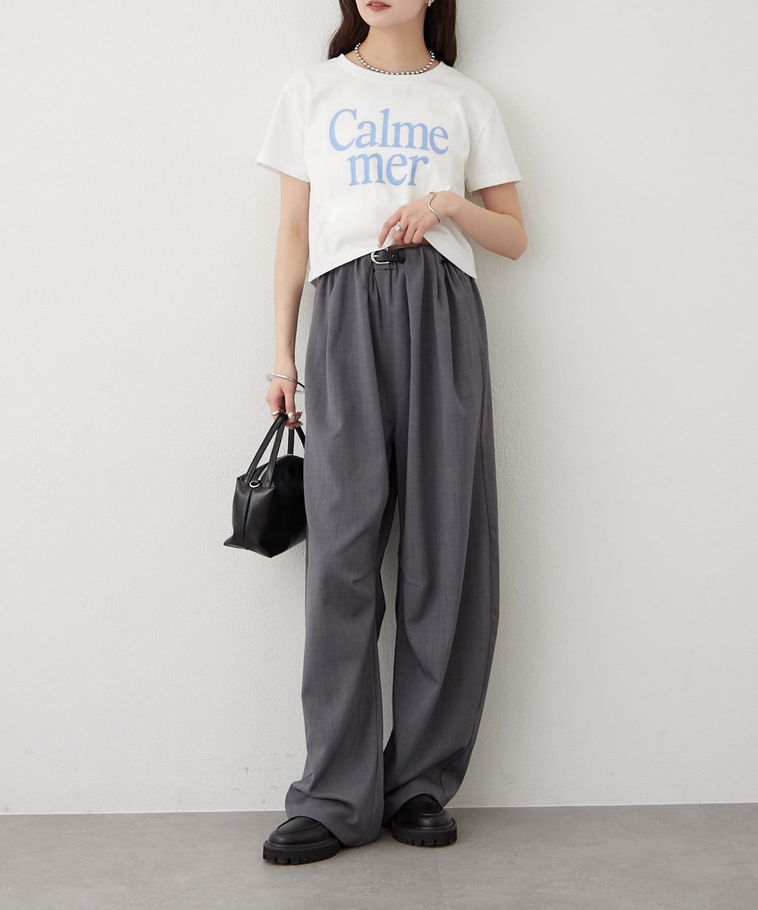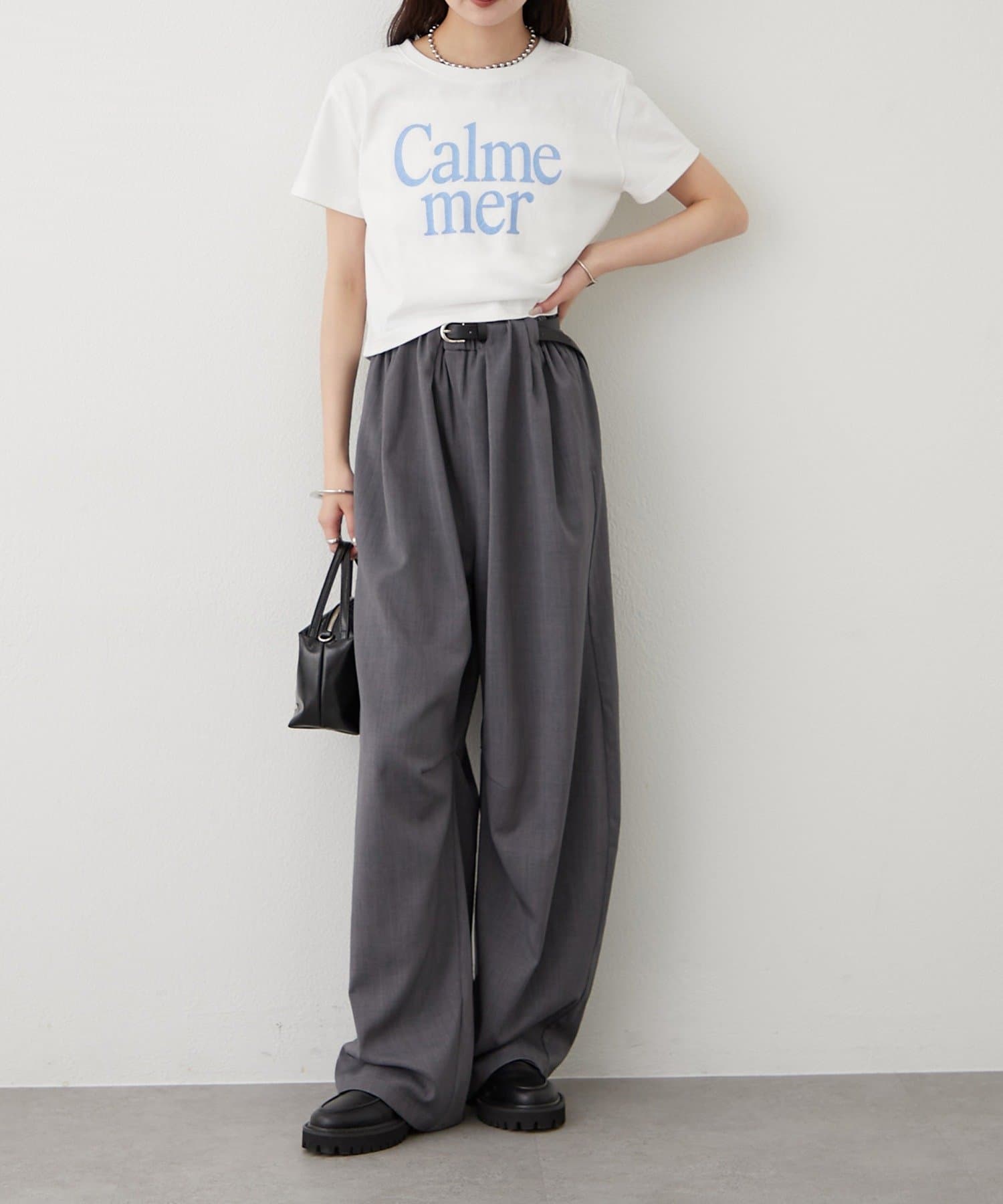 ・ハイウエストのデニムやスラックスを合わせるでだけで、スッキリ今っぽいスタイリングに。