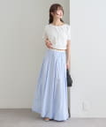 ・スカートを合わせると女性らしさが引き立ち、カジュアルすぎず上品な印象になります。