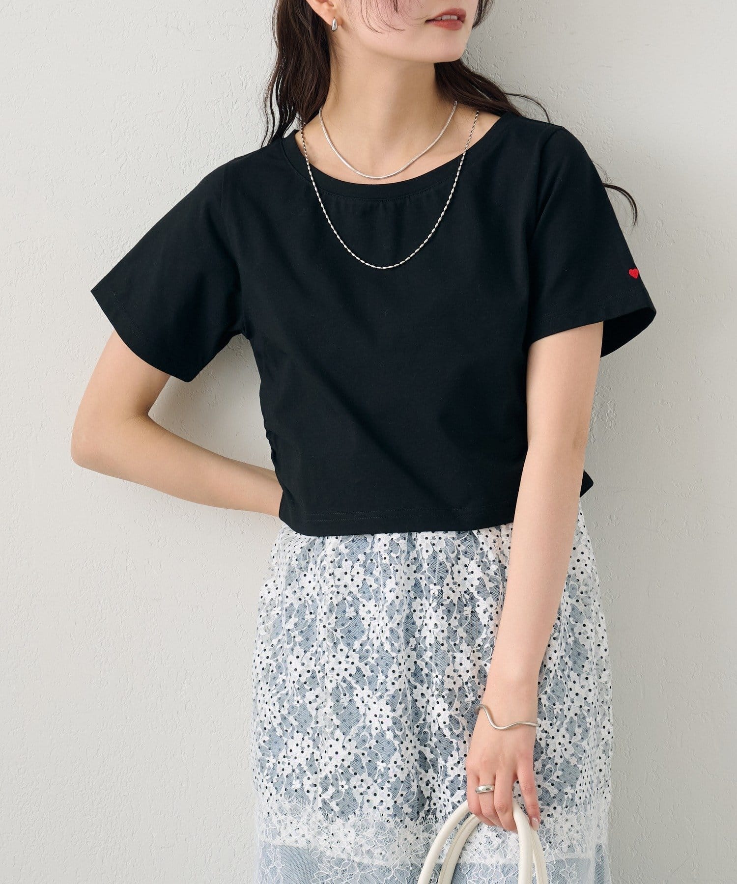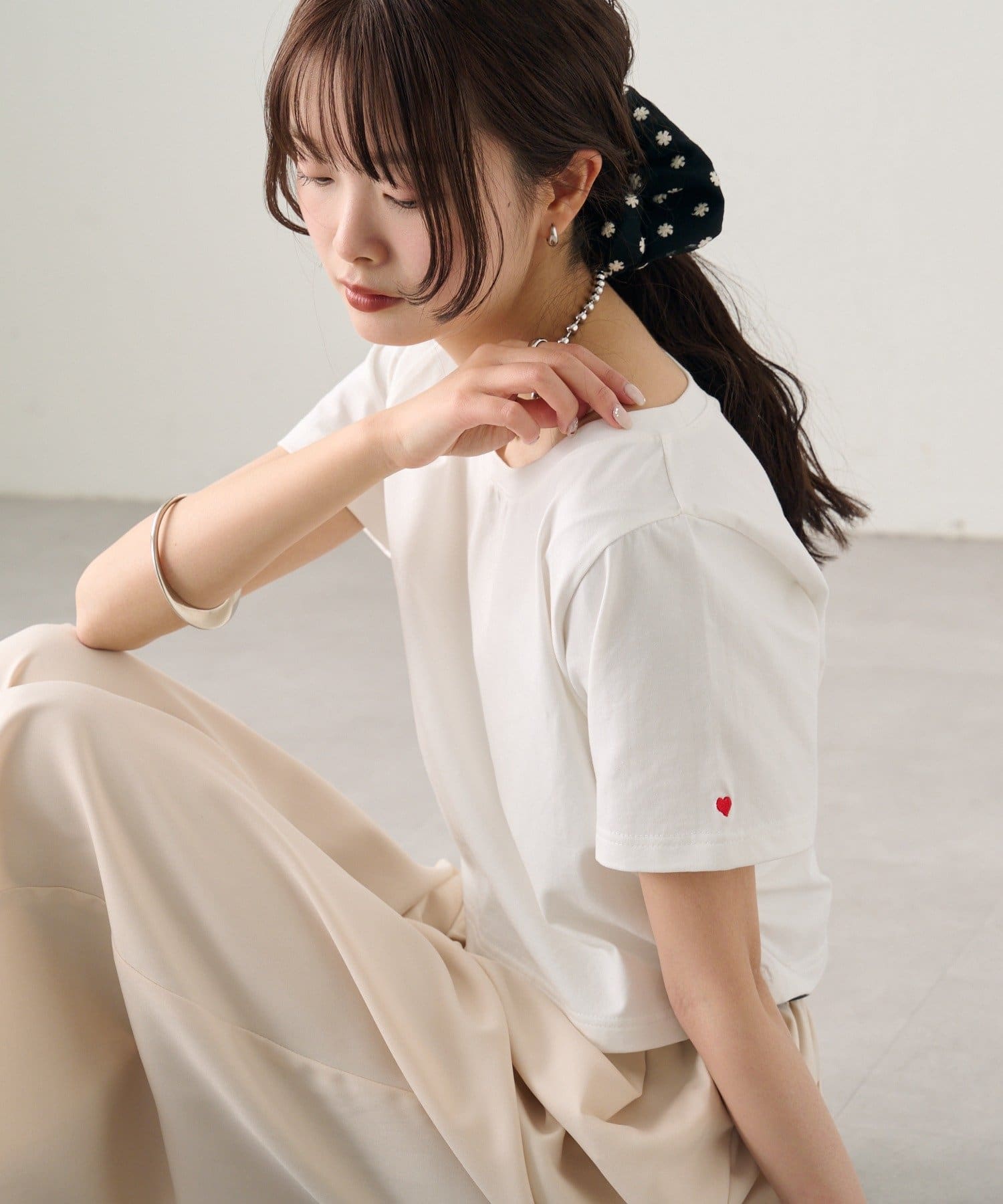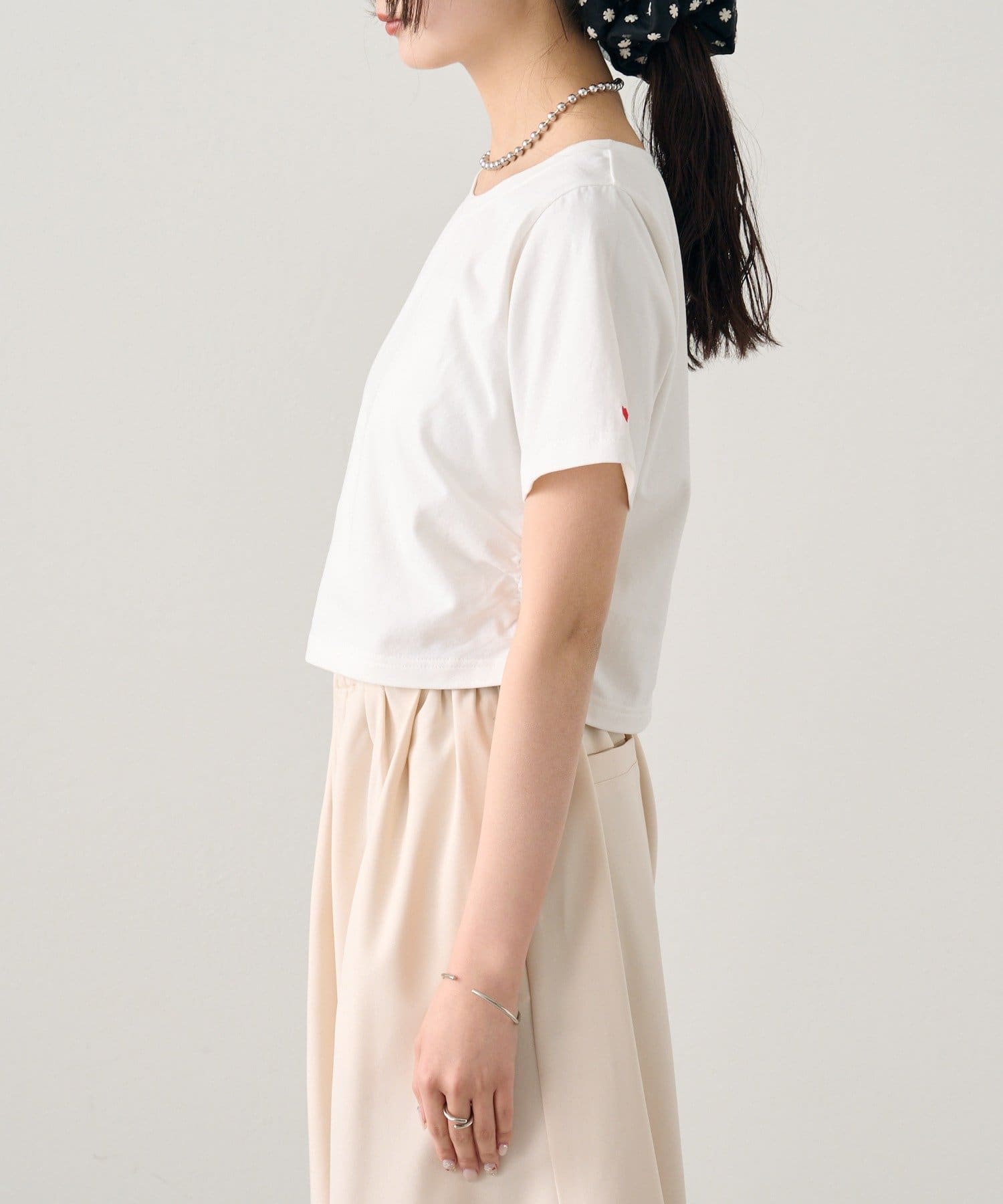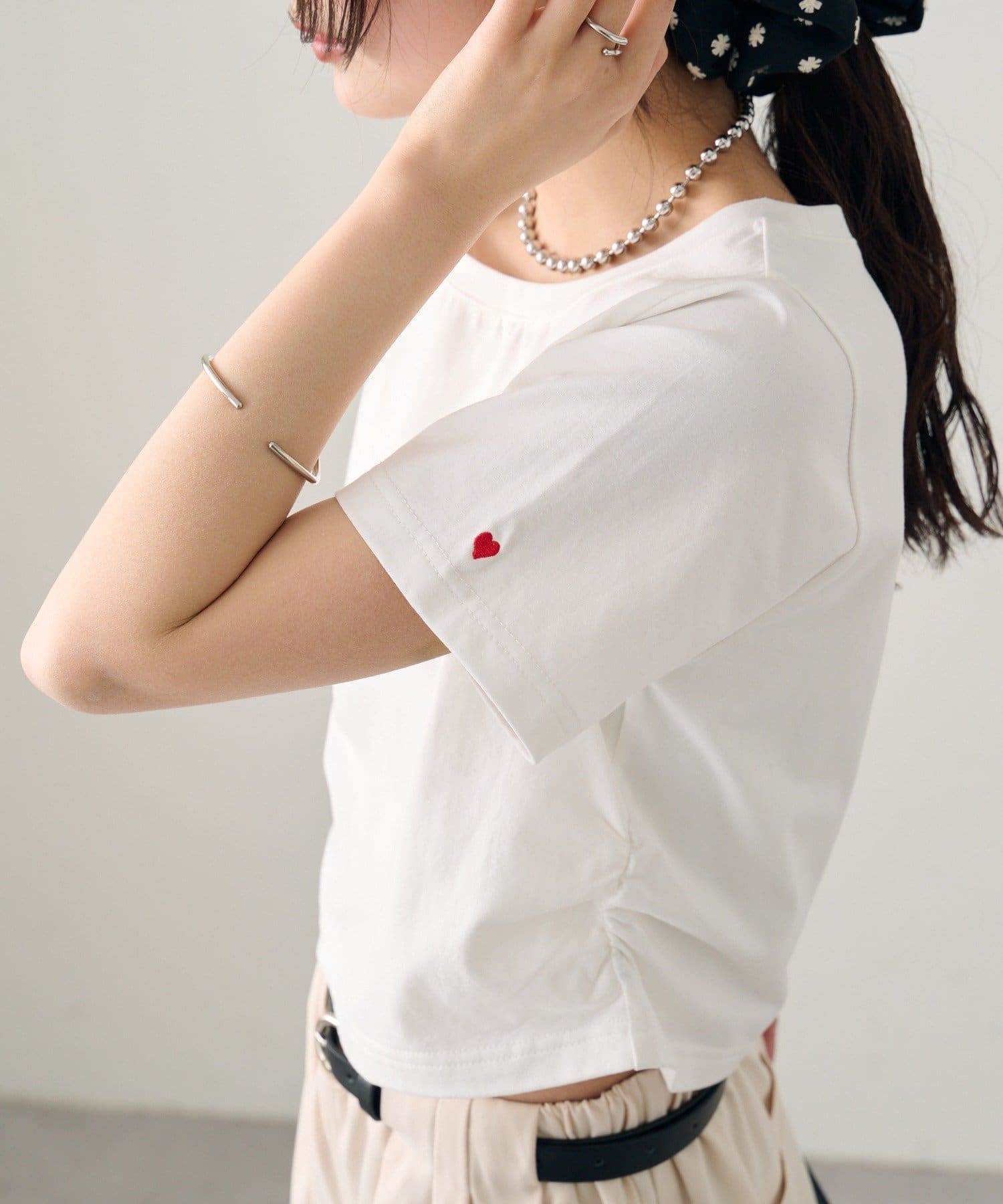 シンプルながらもバックロゴとハート刺繍が可愛いちびTシャツ