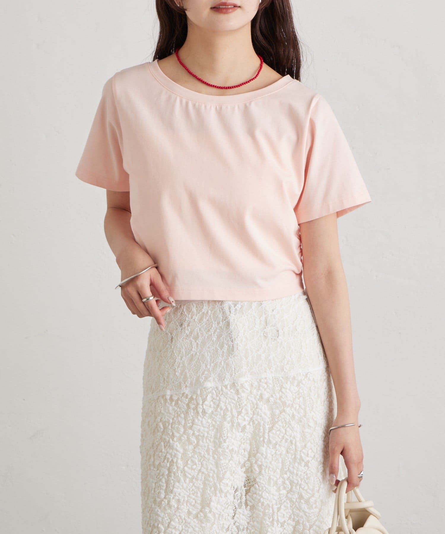 ・サイドのギャザーデザインが女性らしさをプラスしてくれます。
