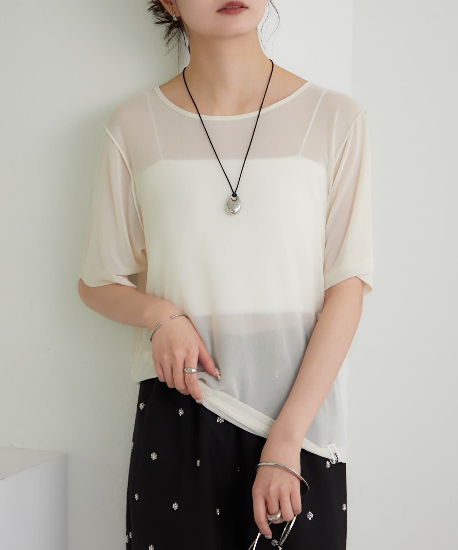 チュールシアーTシャツ