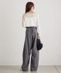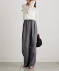 スラックスとも合わせやすく、きれいめなコーディネートが完成します。
