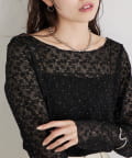 全体に散りばめられたラメと花柄が目を惹く、レースロングTシャツ。