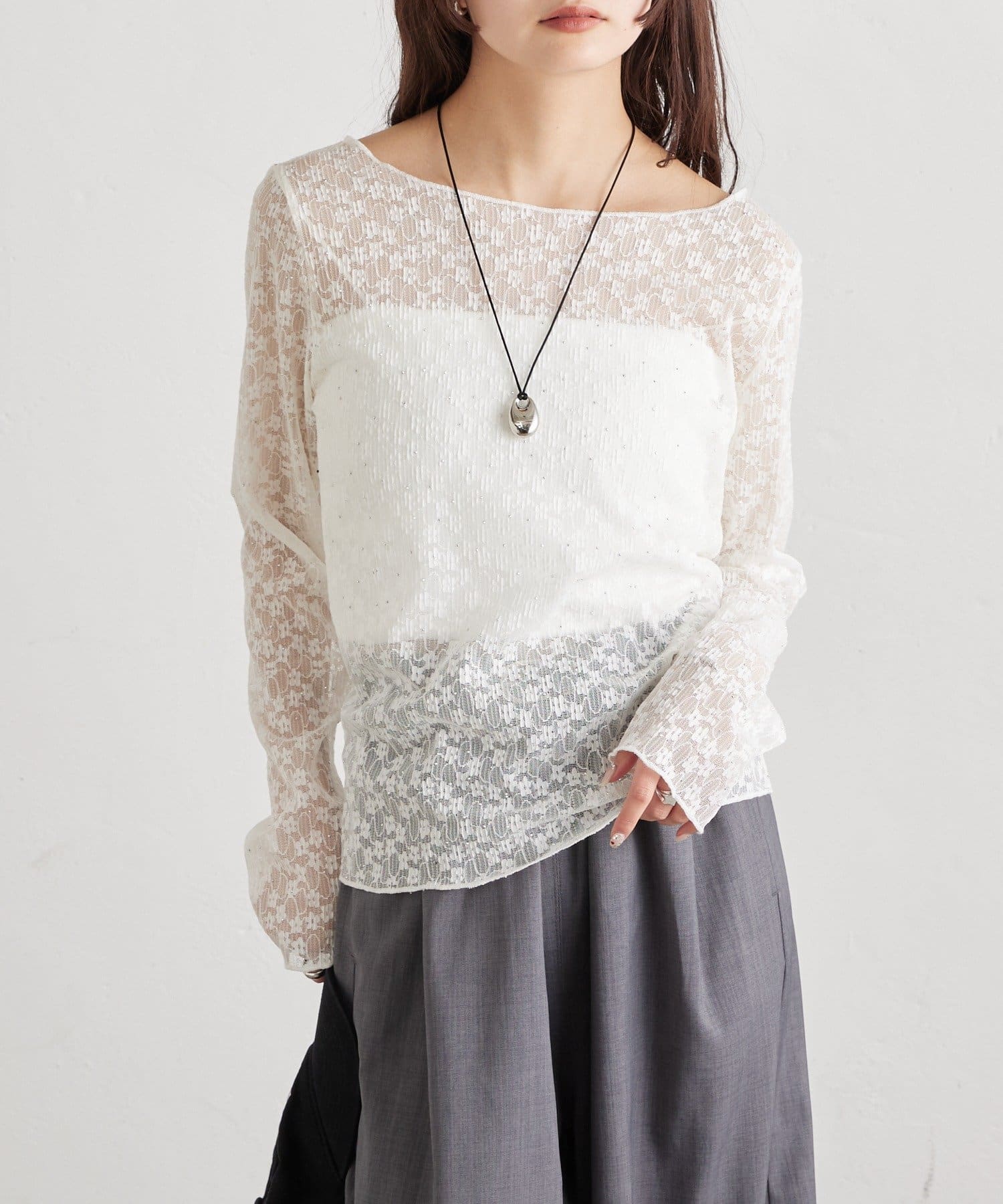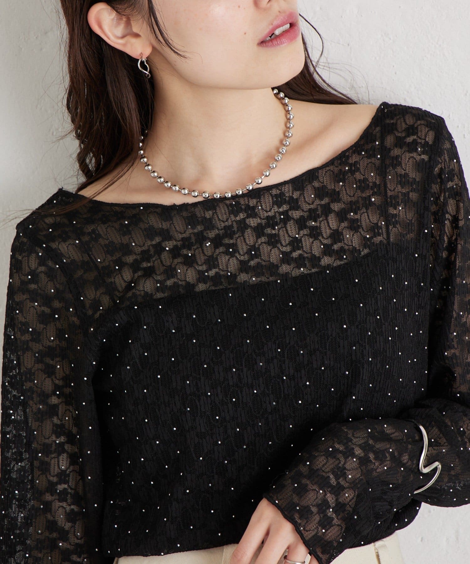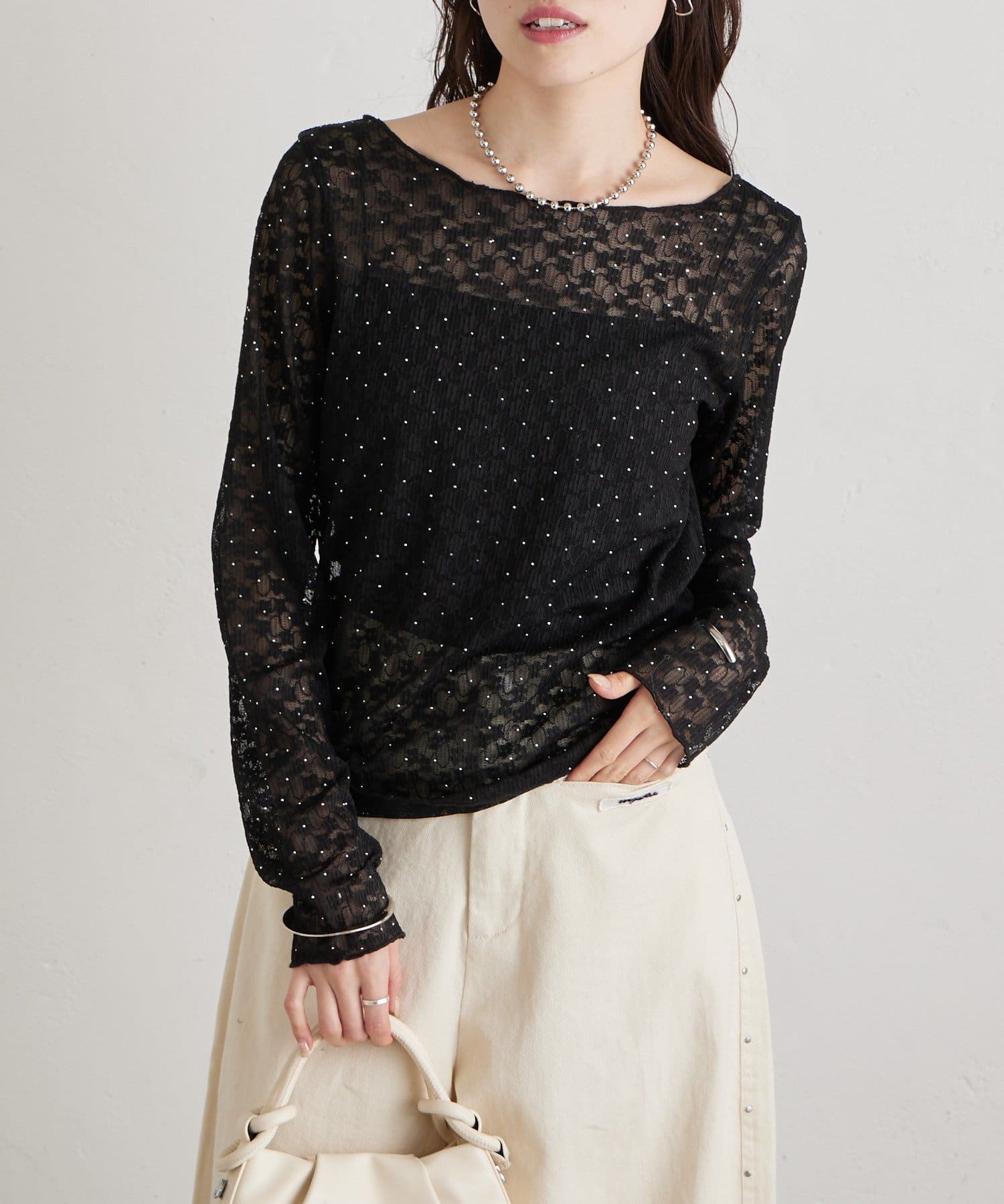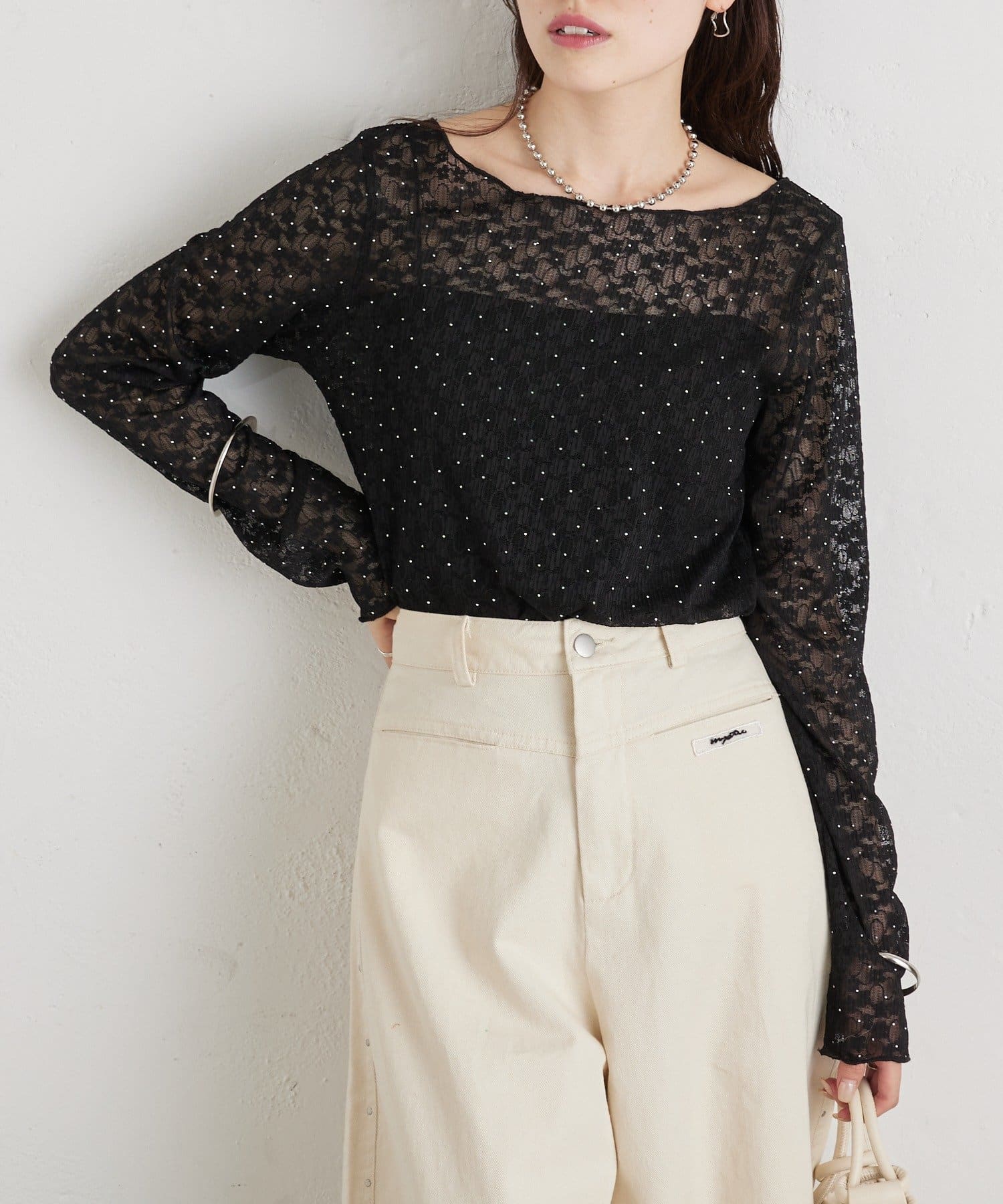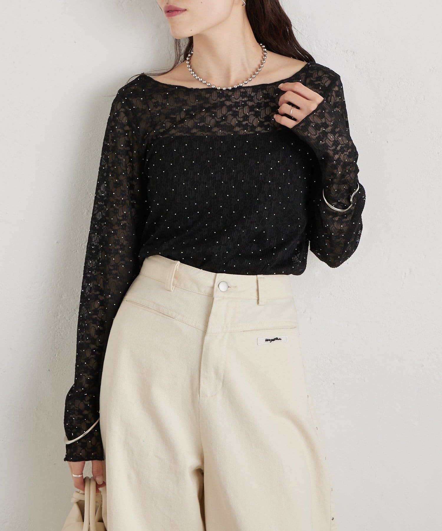 • mystic(ミスティック) シャイニーレースロングTシャツ