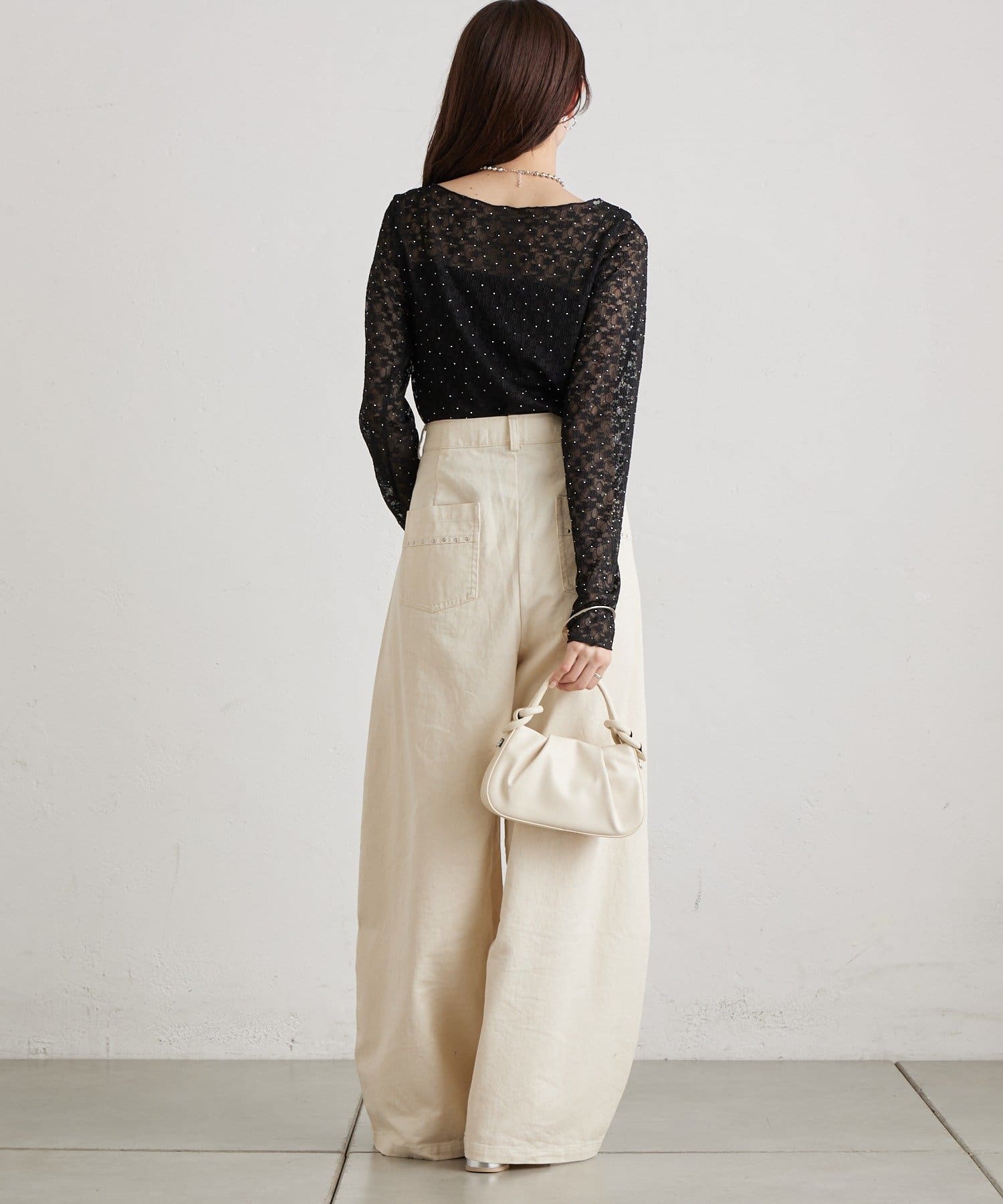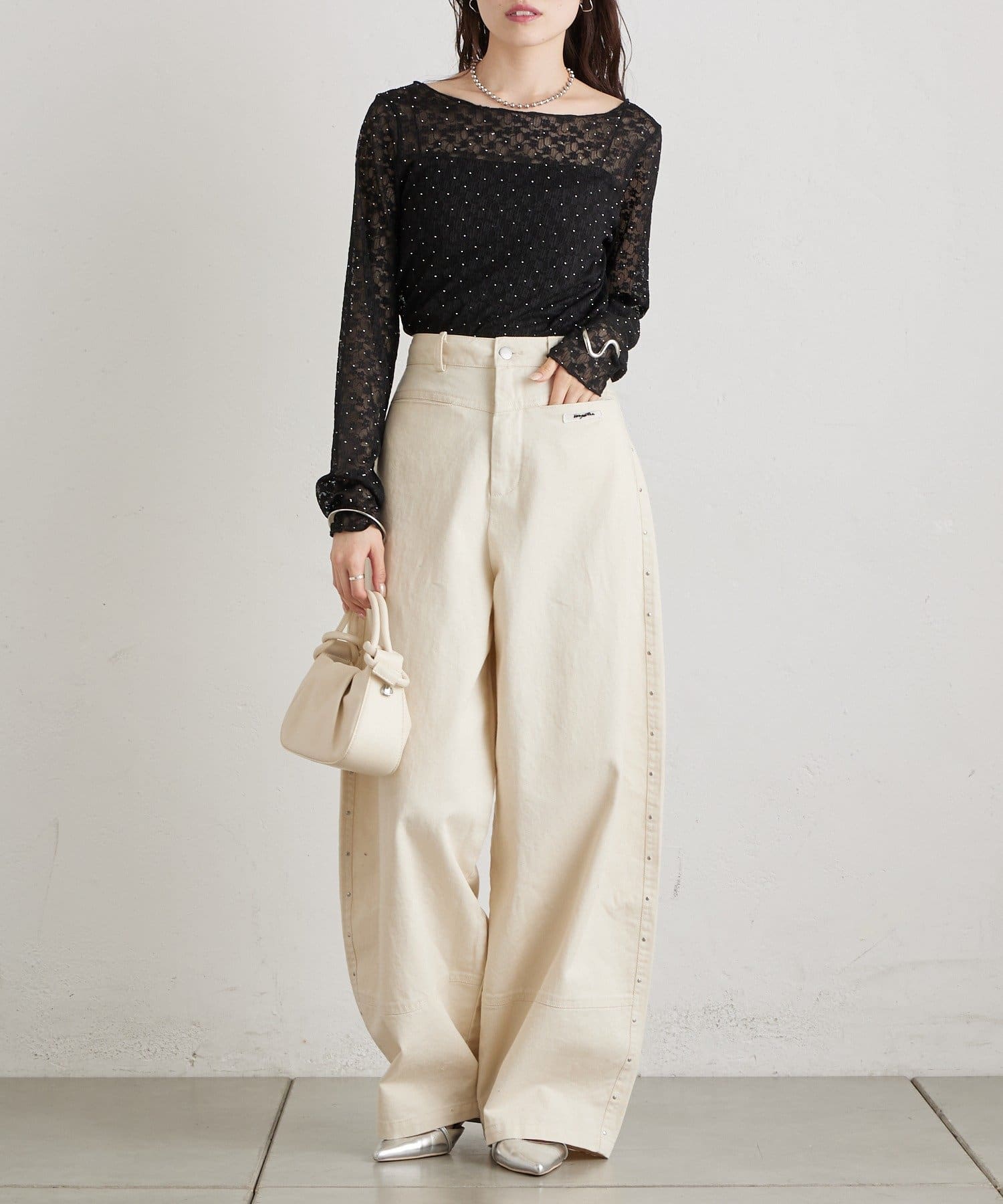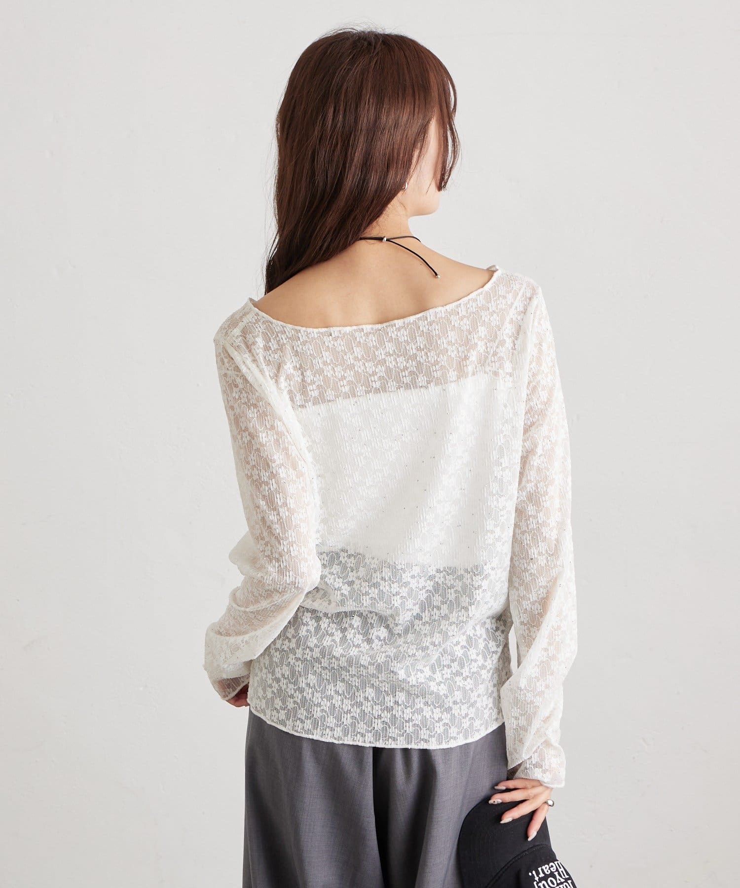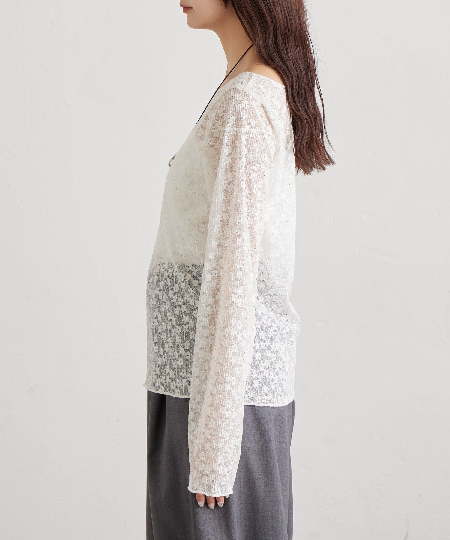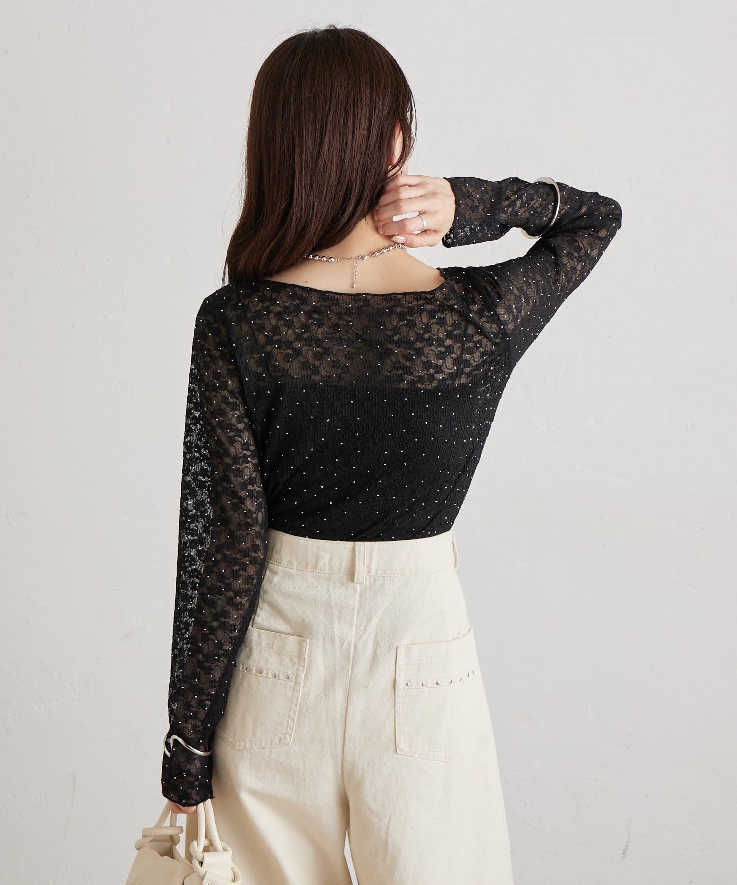 • mystic(ミスティック) シャイニーレースロングTシャツ