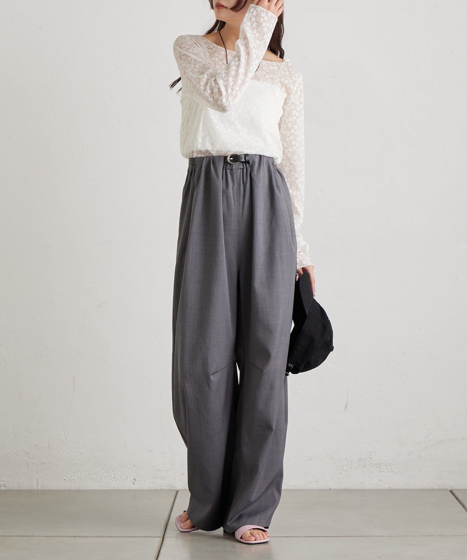 TOP > mystic > レディース > トップス > Tシャツ/カットソー > シャイニーレースロングTシャツ