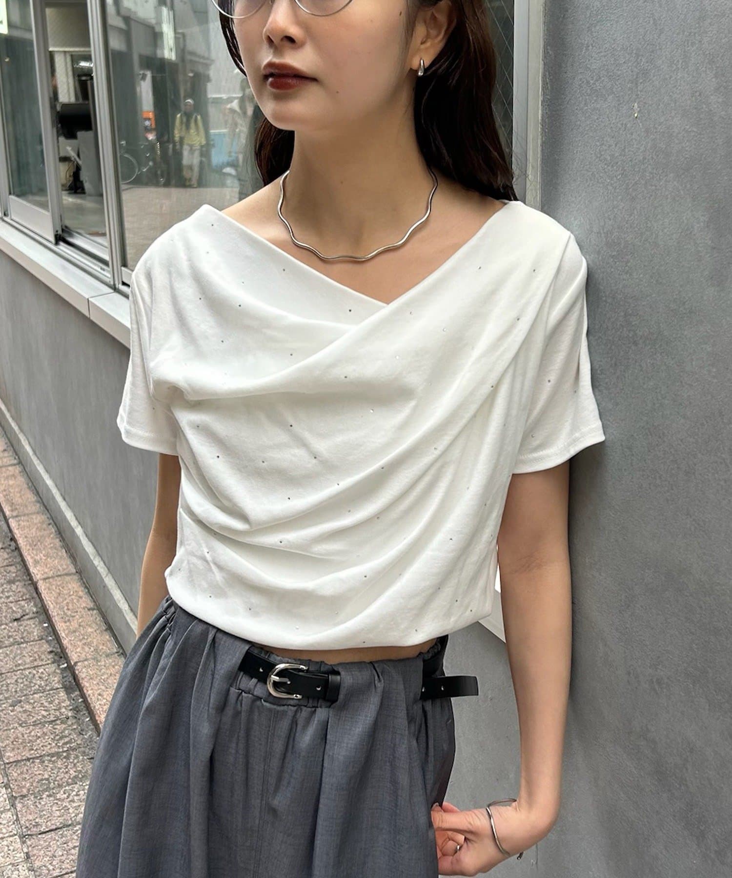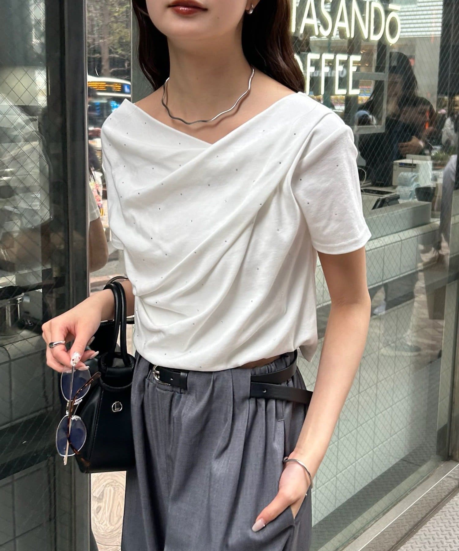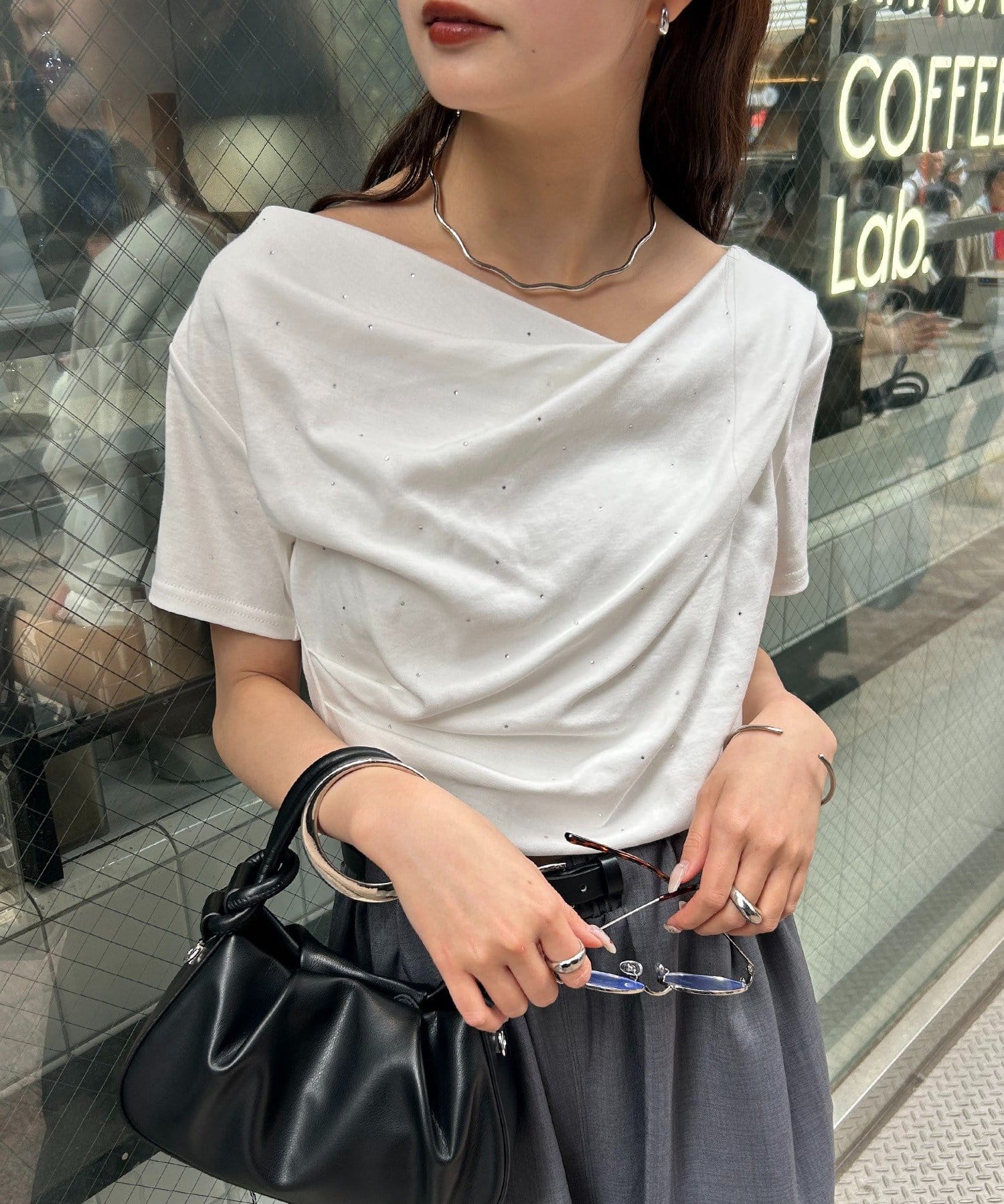 【WEB限定/REVIVAL/新色ラインストーンが登場!】26SSオフショルTシャツ