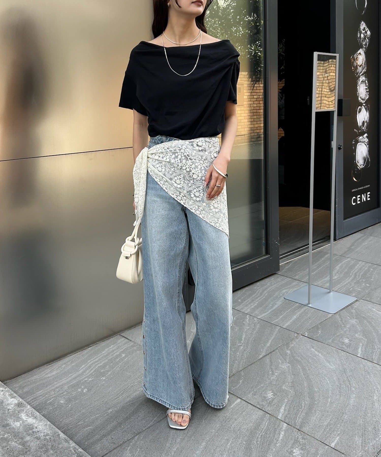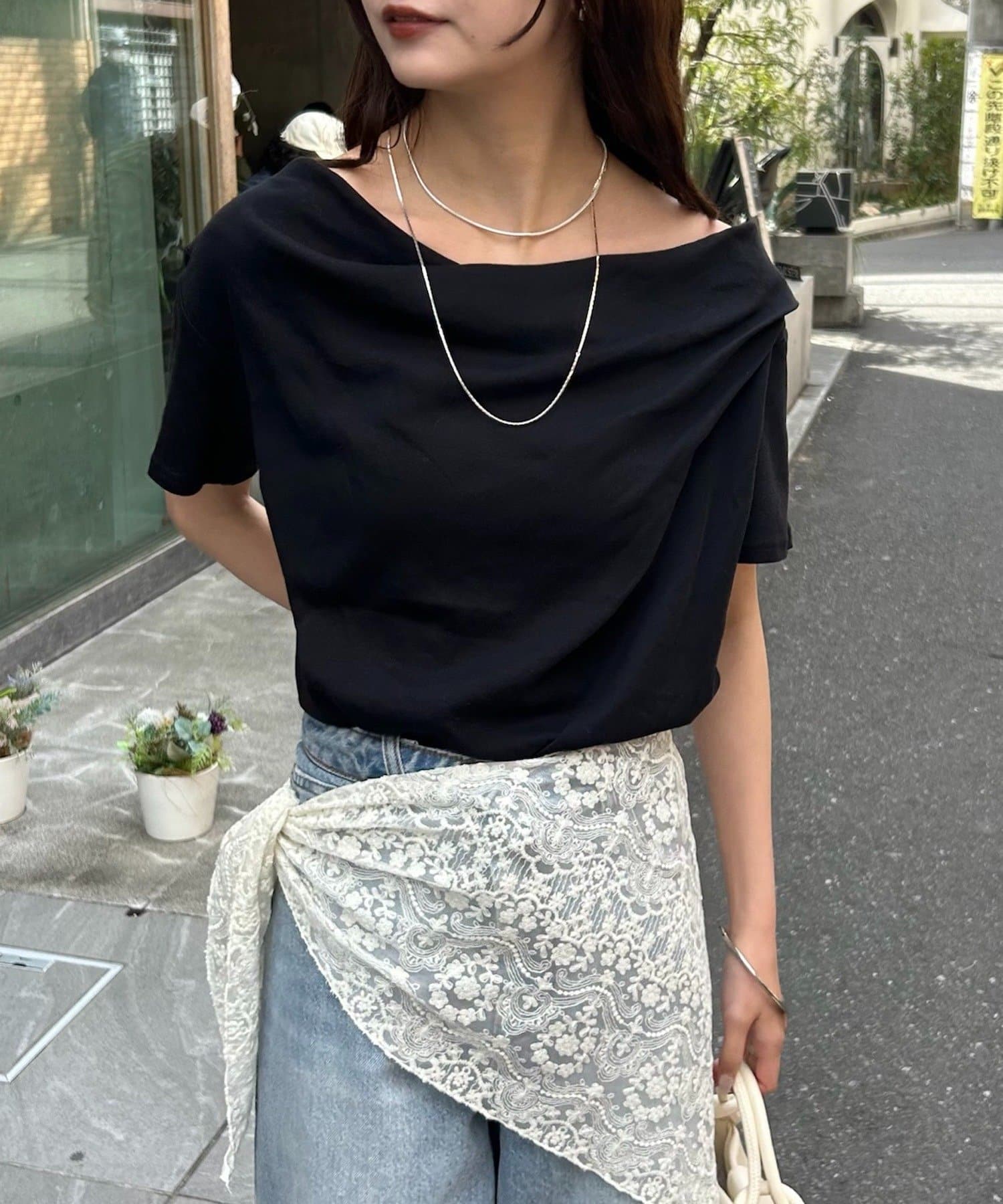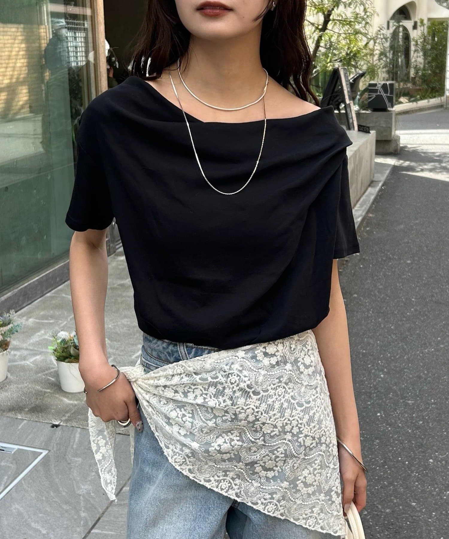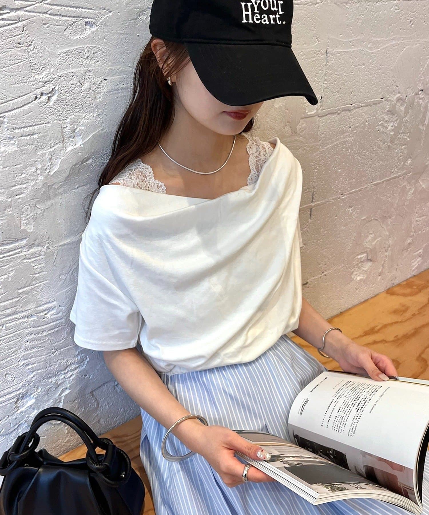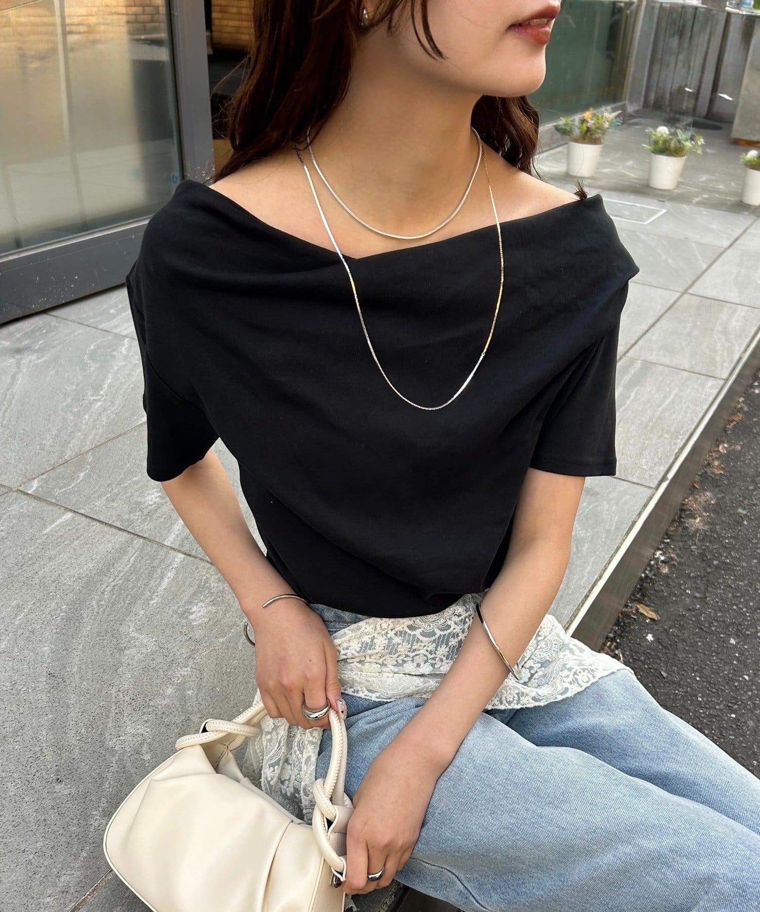 オフショルデザインで女性らしいシルエットを演出する、一枚でサマになるTシャツ