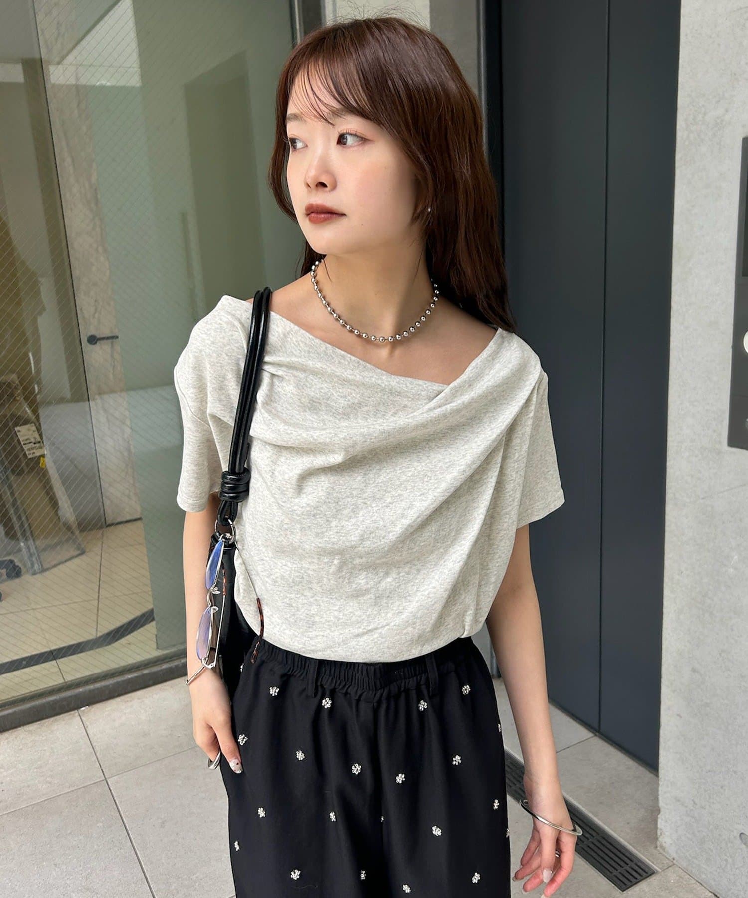 首元にゆとりあるデザインで、オフショルやワンショルとしても着ていただけるアイテム。