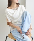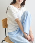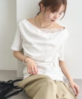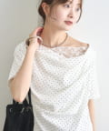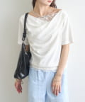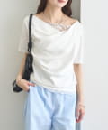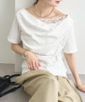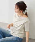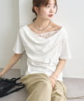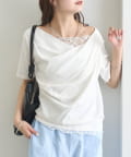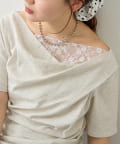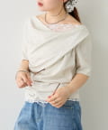 TOP > mystic > レディース > トップス > Tシャツ/カットソー > レースドッキングオフショル半袖Tシャツ