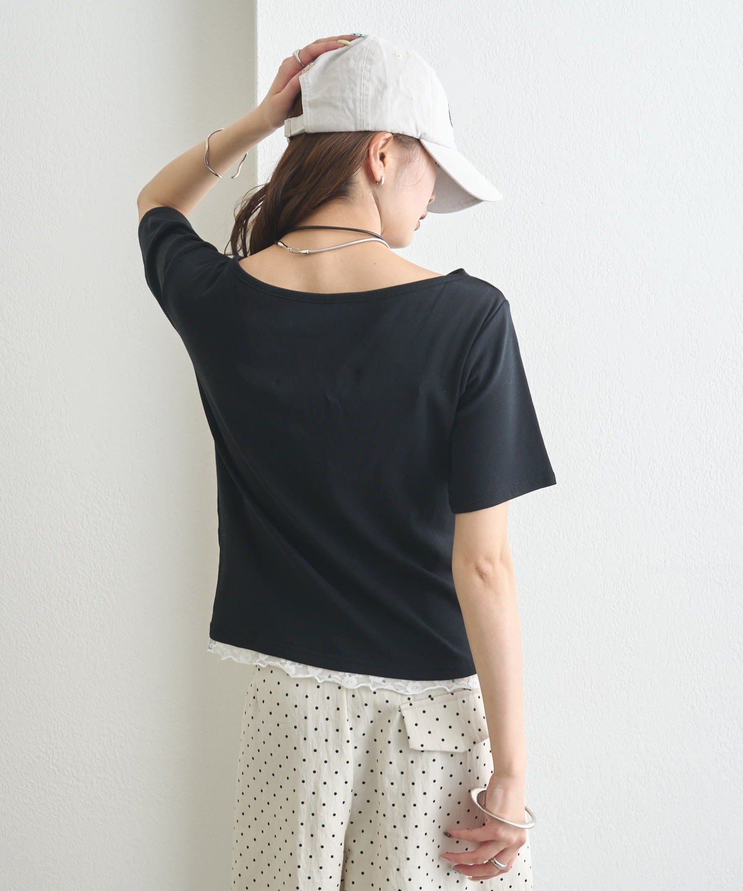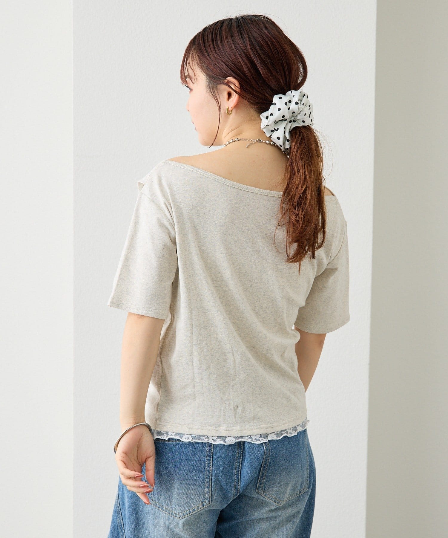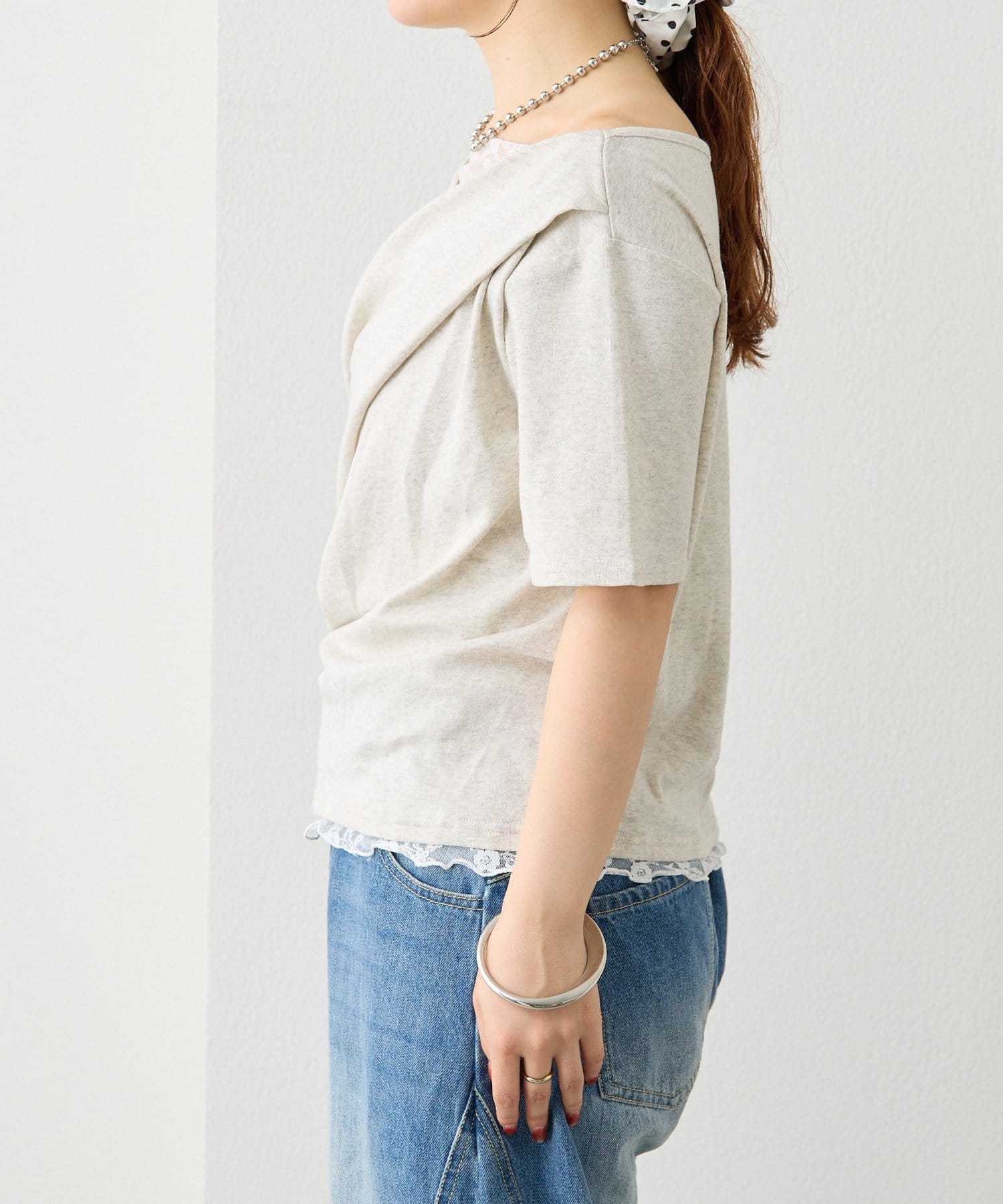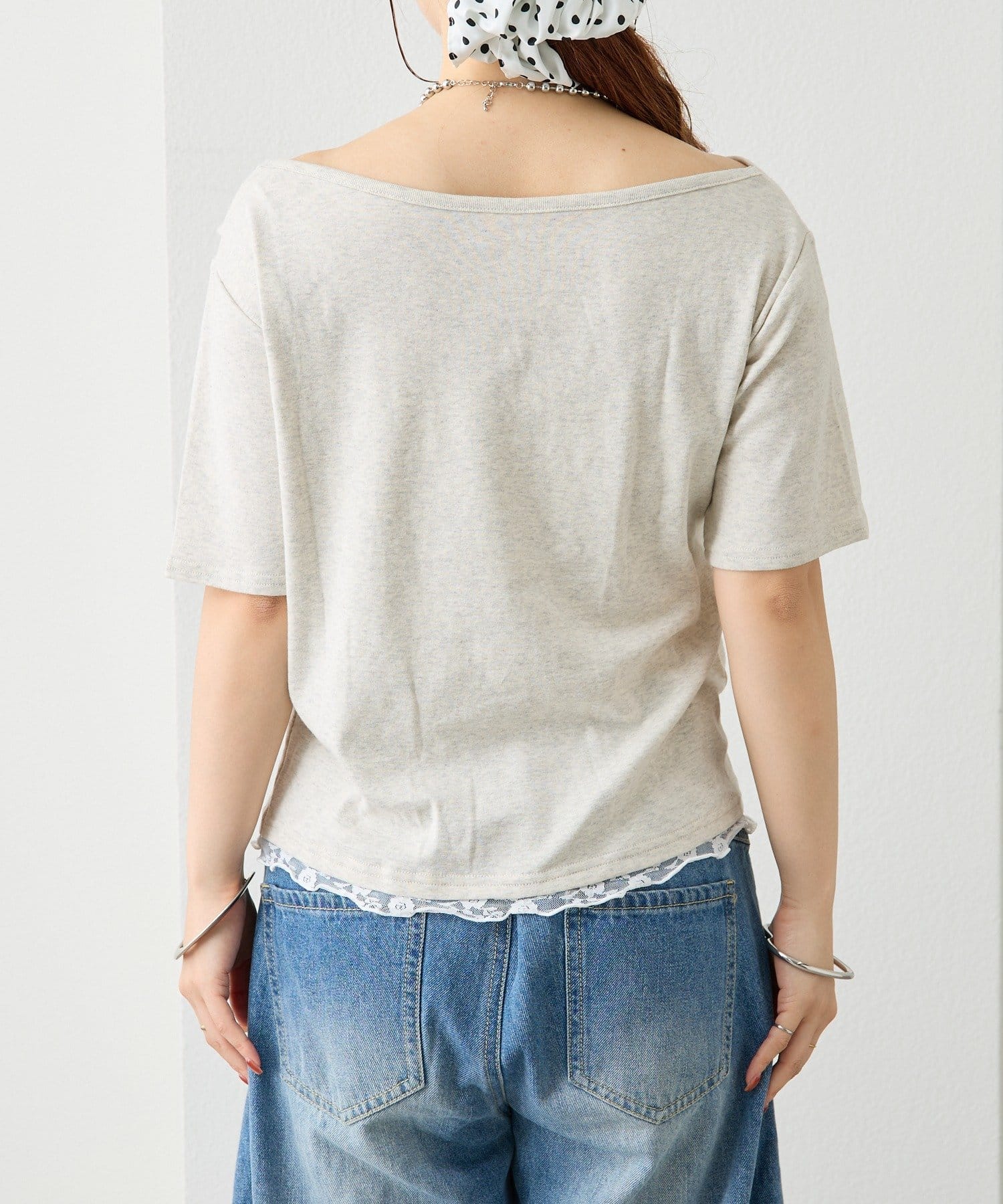 レースドッキングオフショル半袖Tシャツ