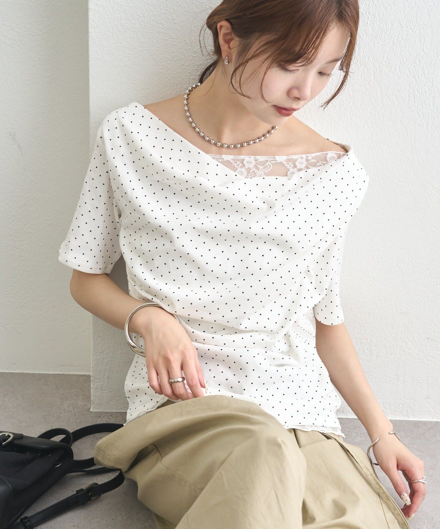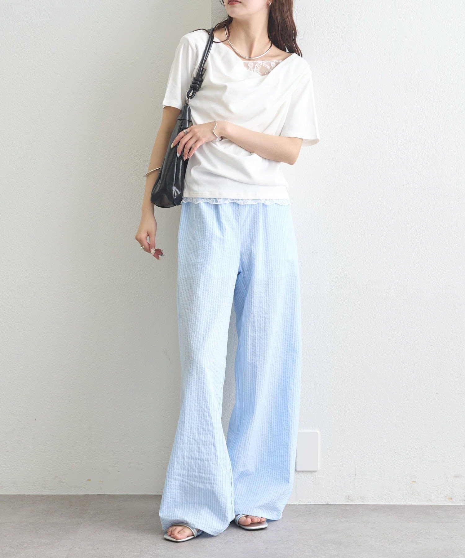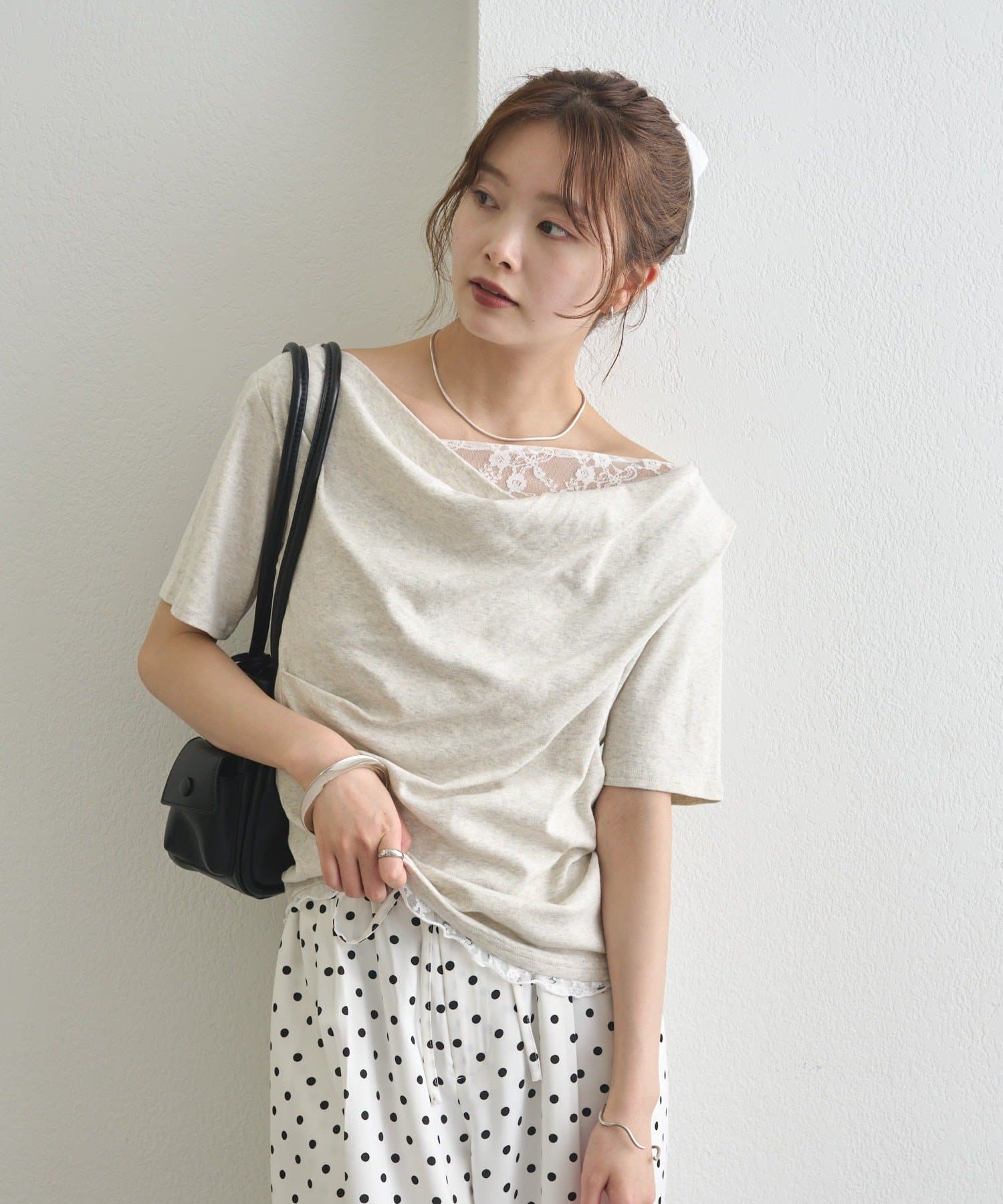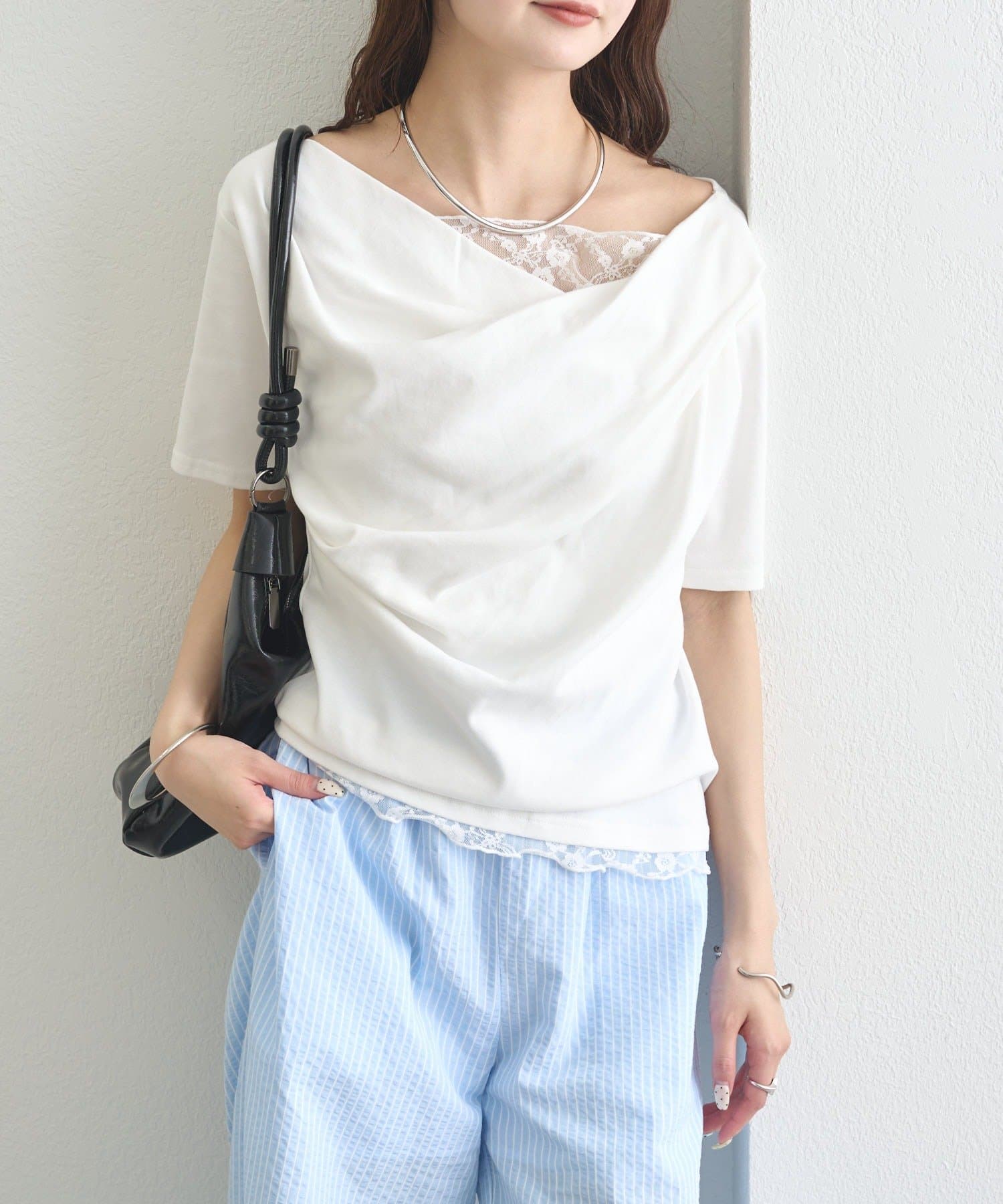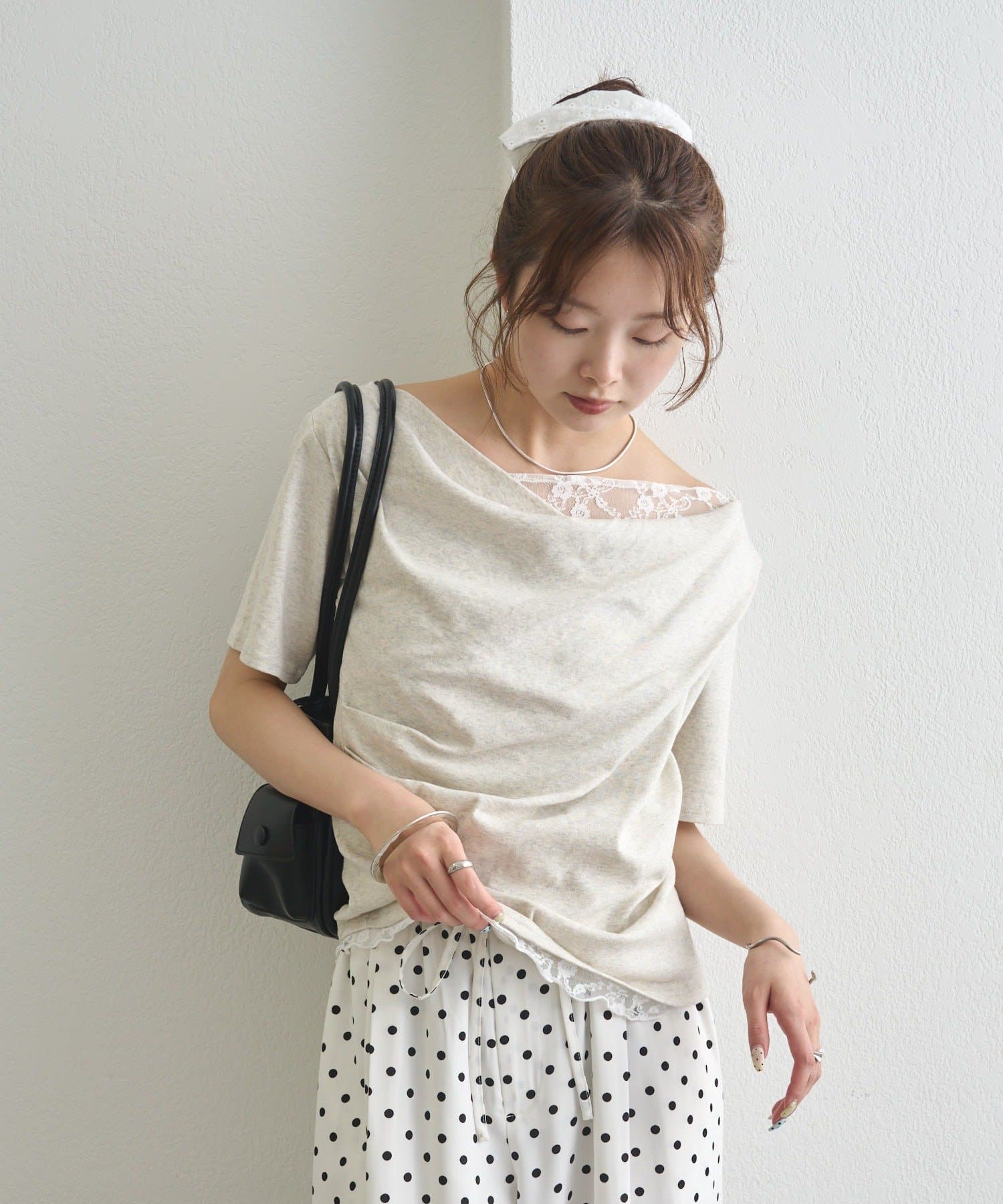 ・シンプルながらもレースがスタイリングに華やかさをプラスしてくれます。
