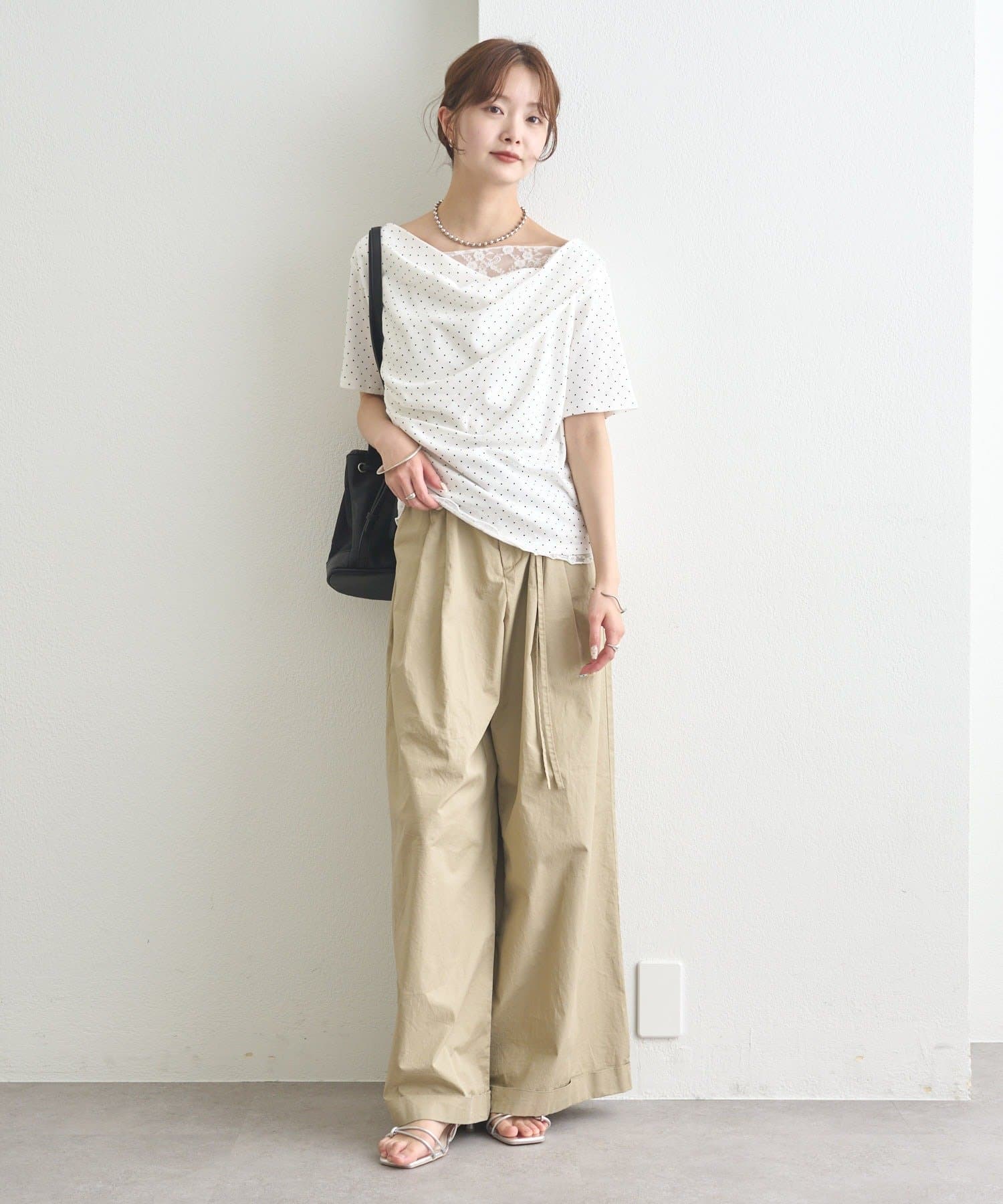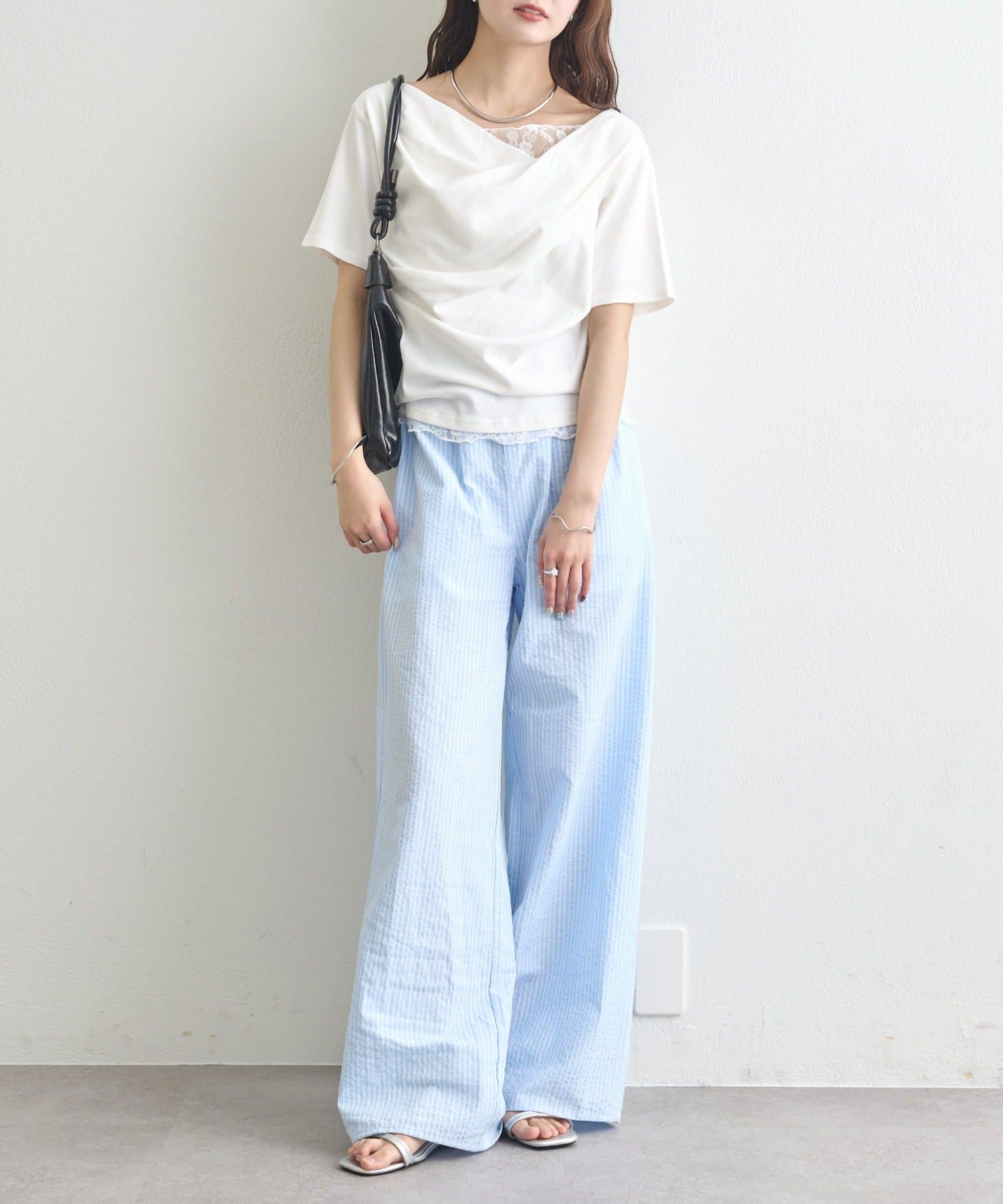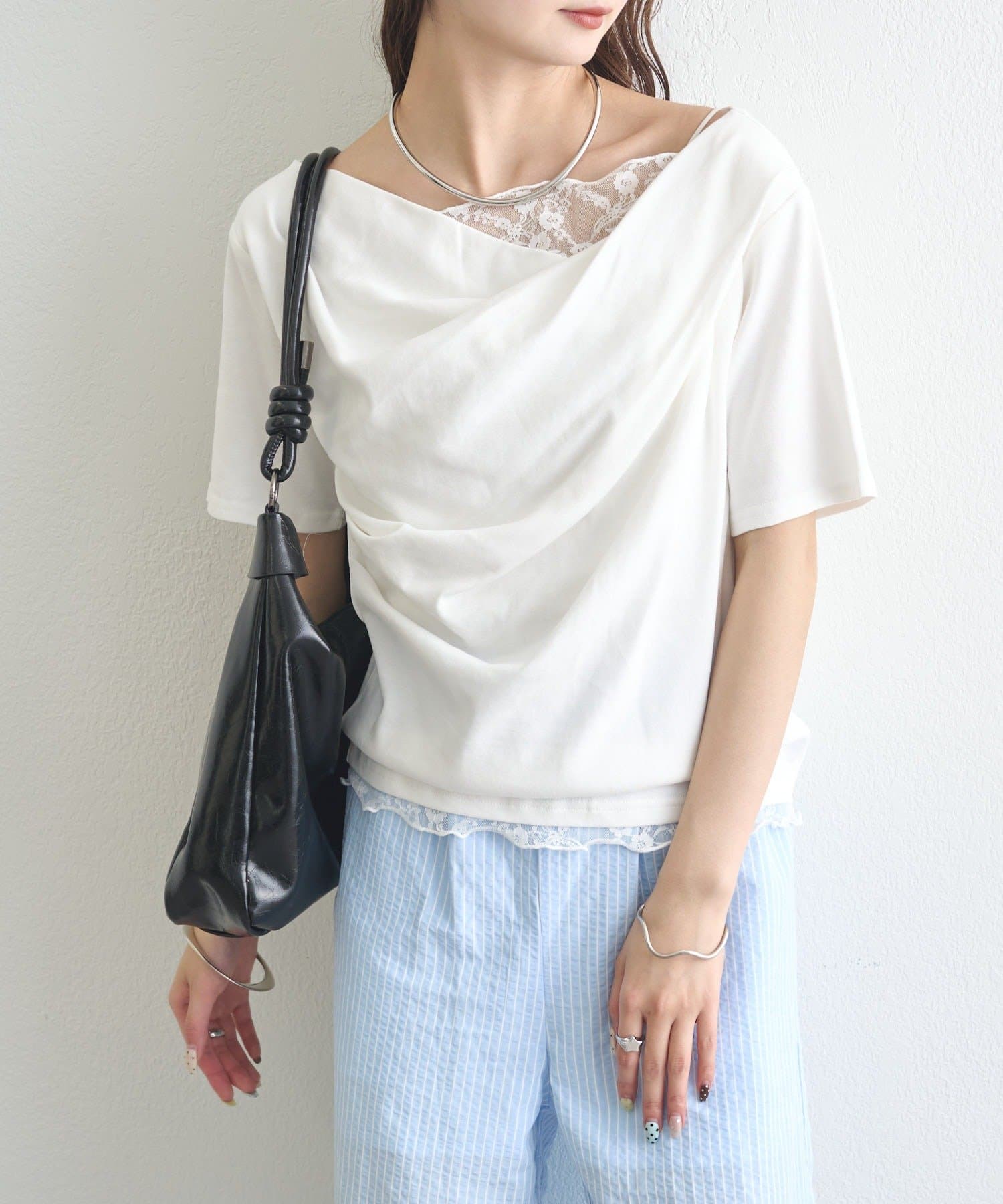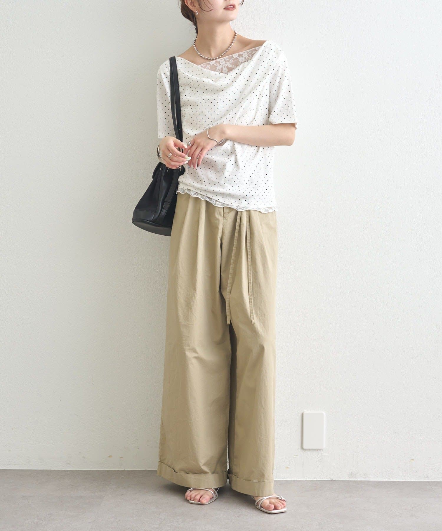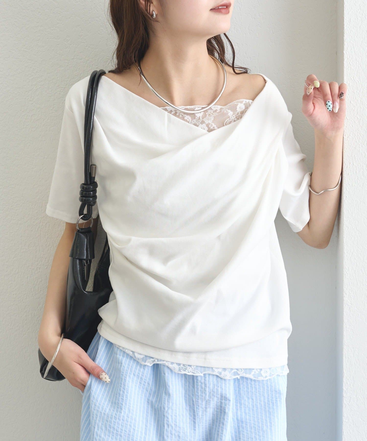 ・シンプルながらもレースがスタイリングに華やかさをプラスしてくれます。