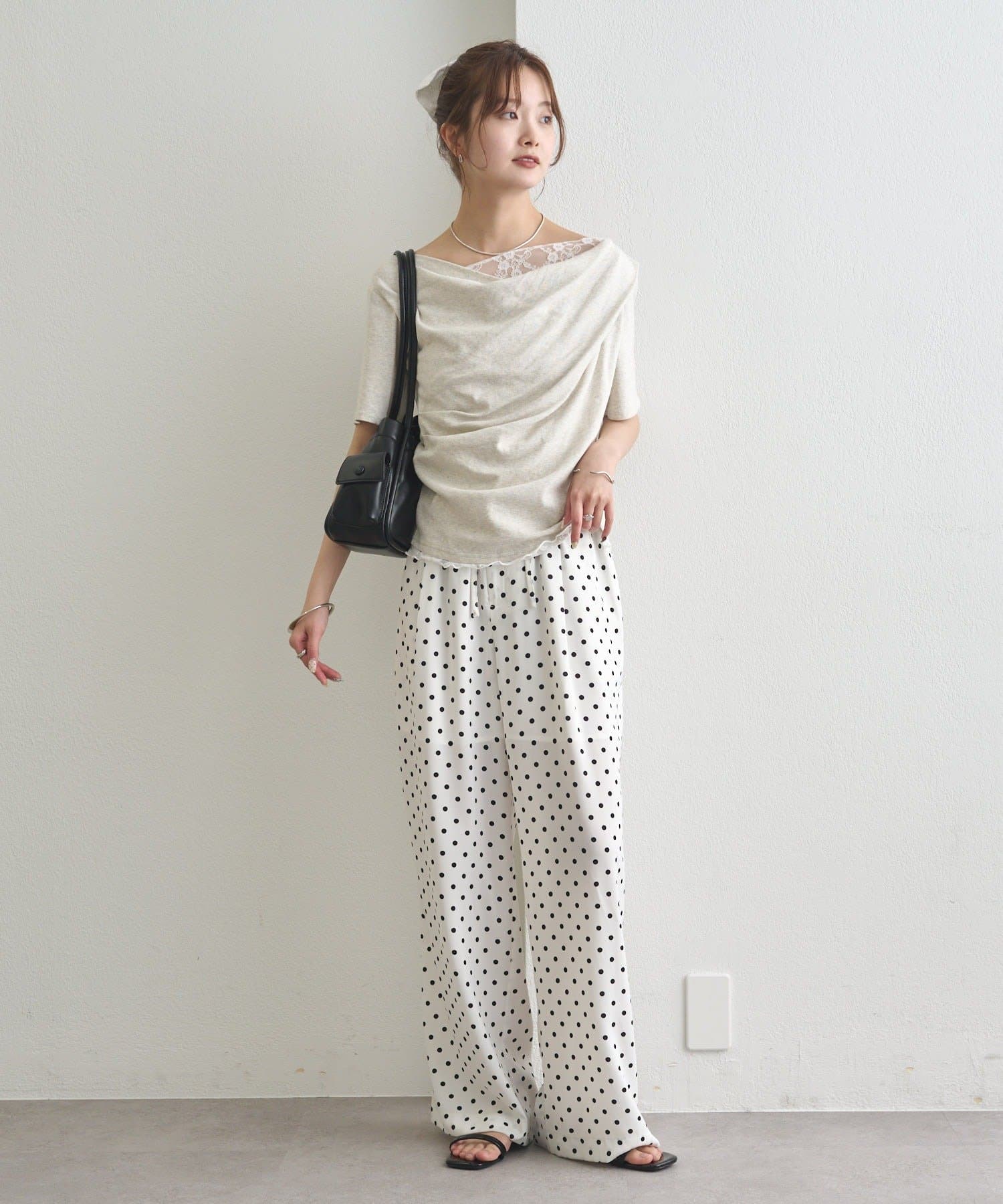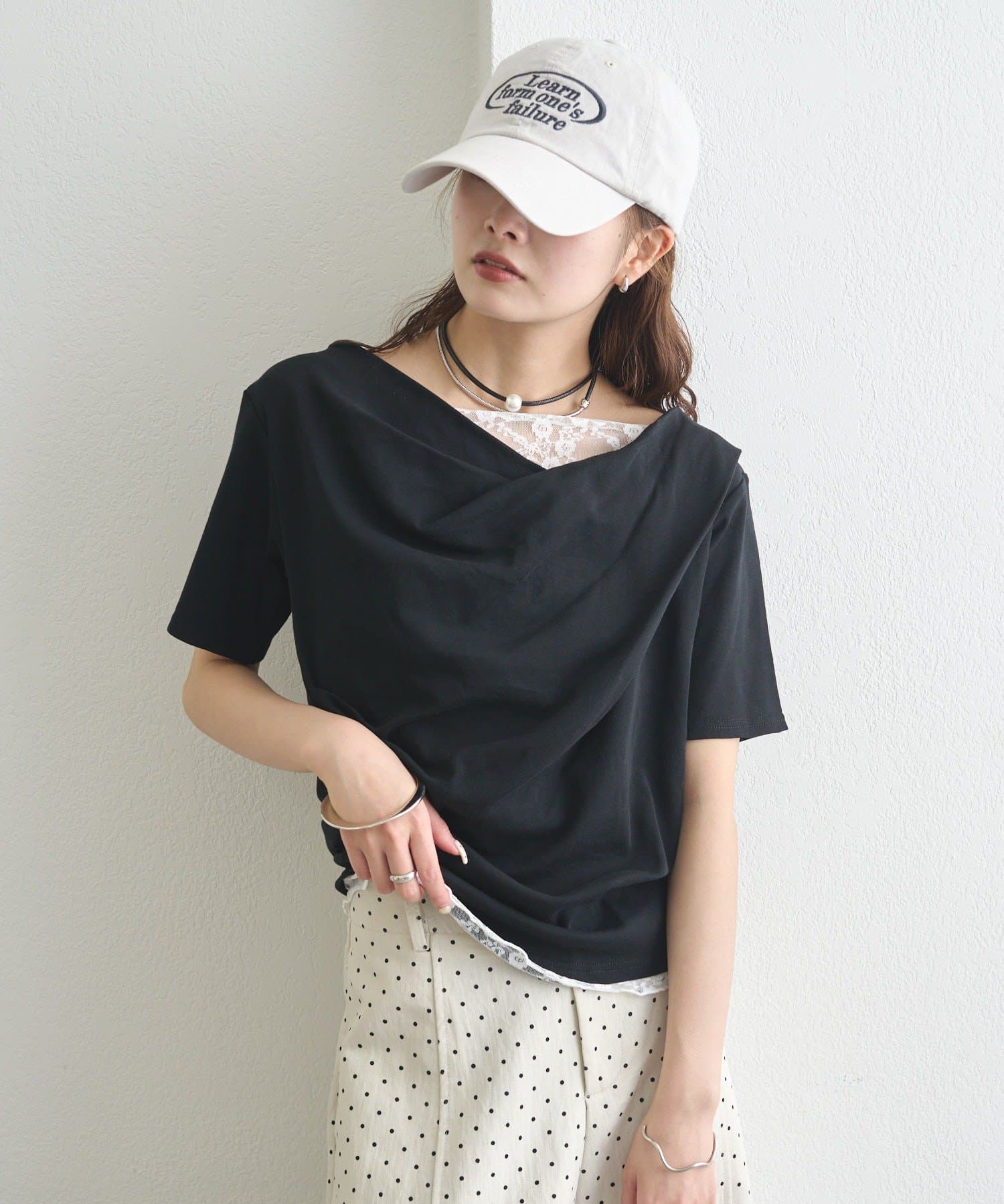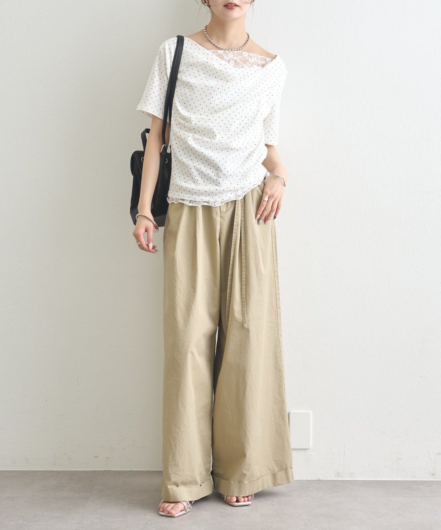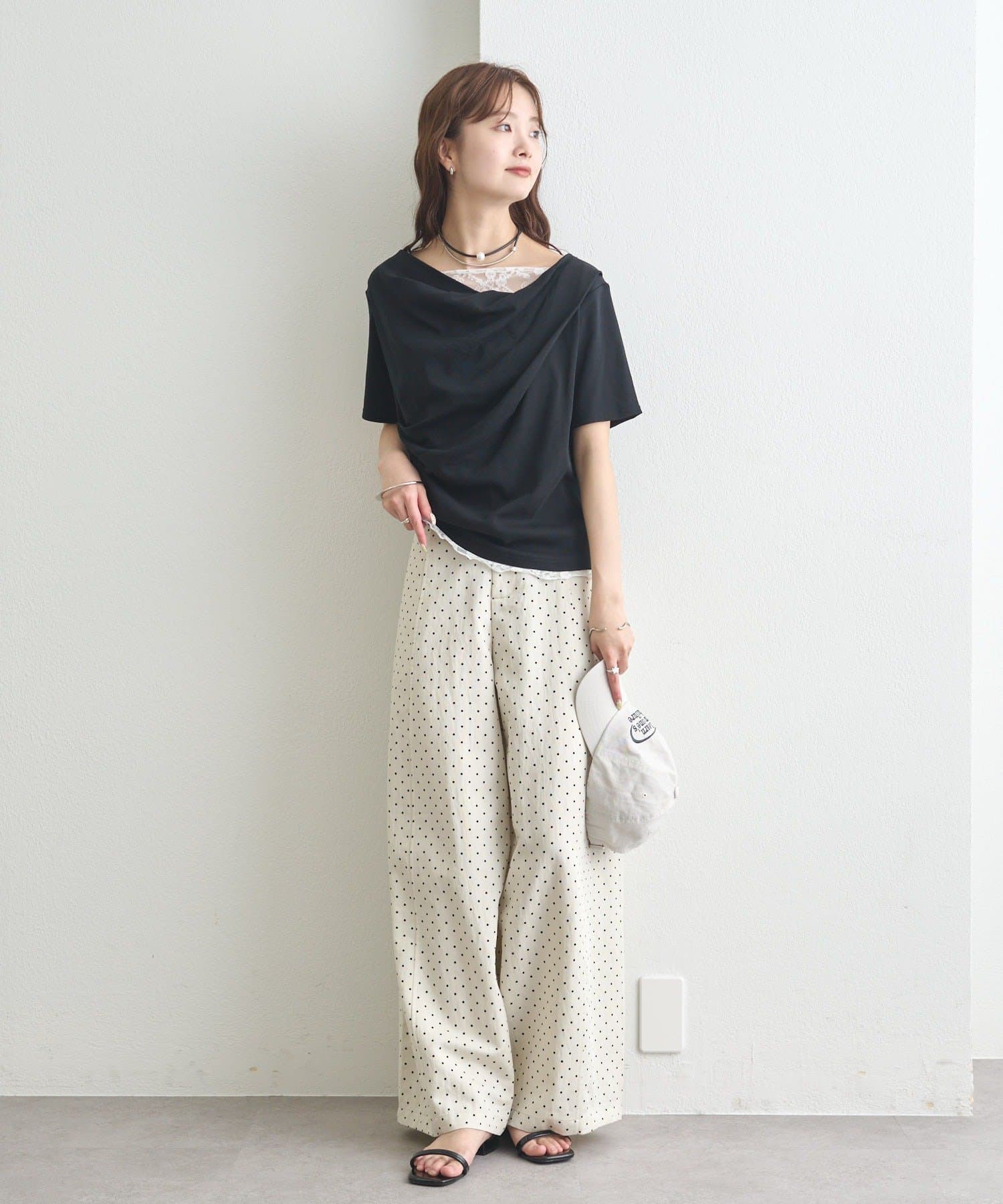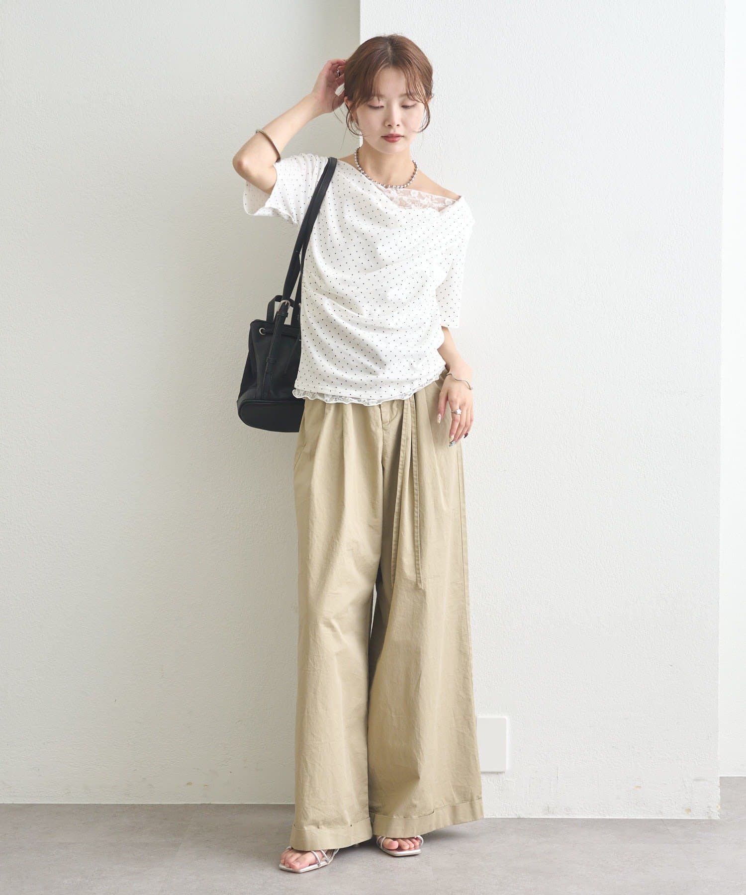 ・シンプルながらもレースがスタイリングに華やかさをプラスしてくれます。