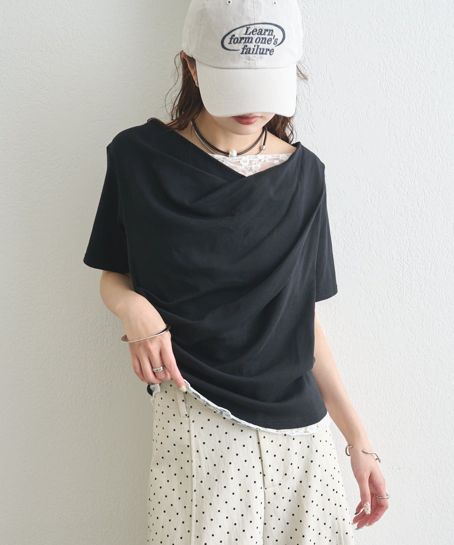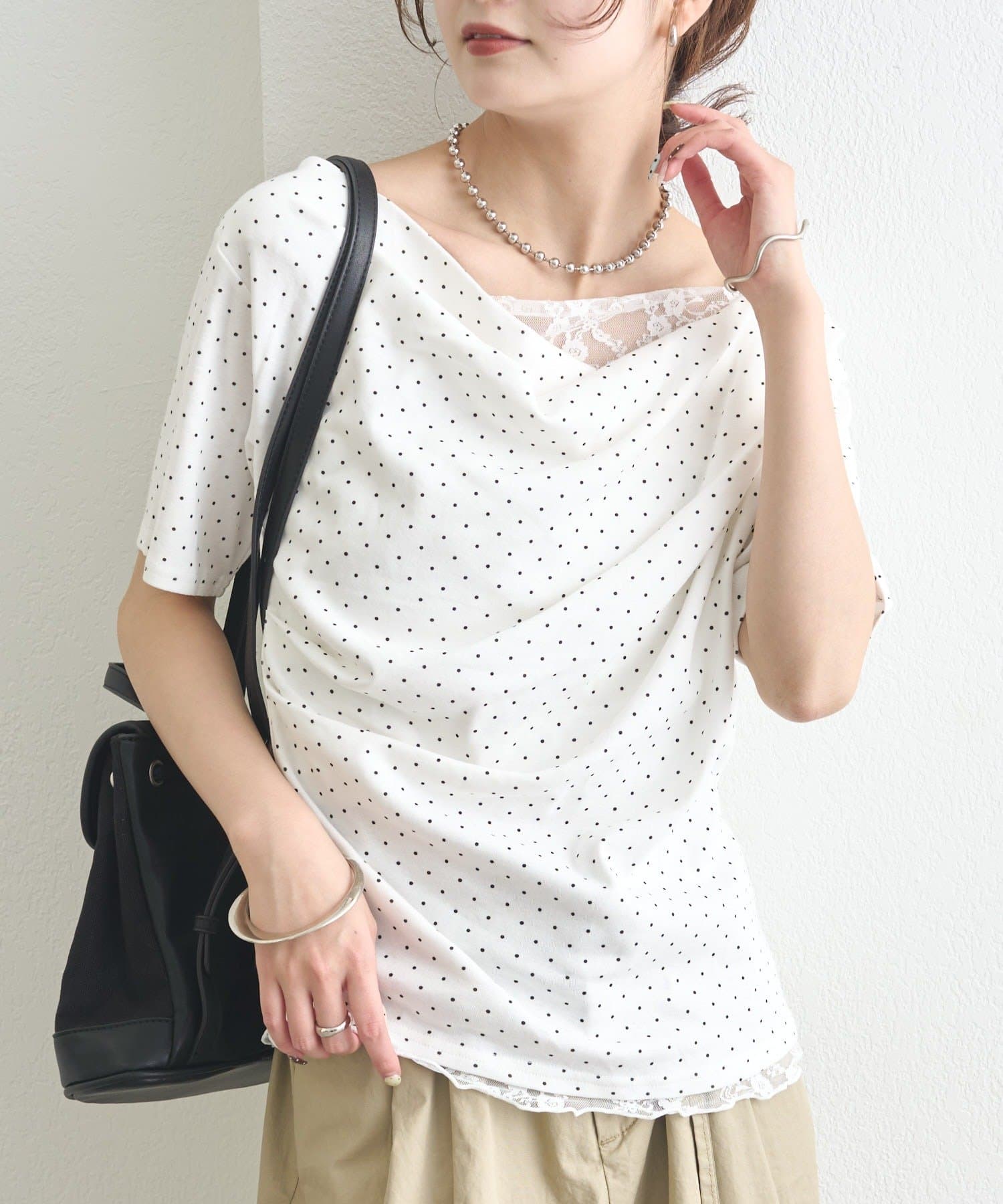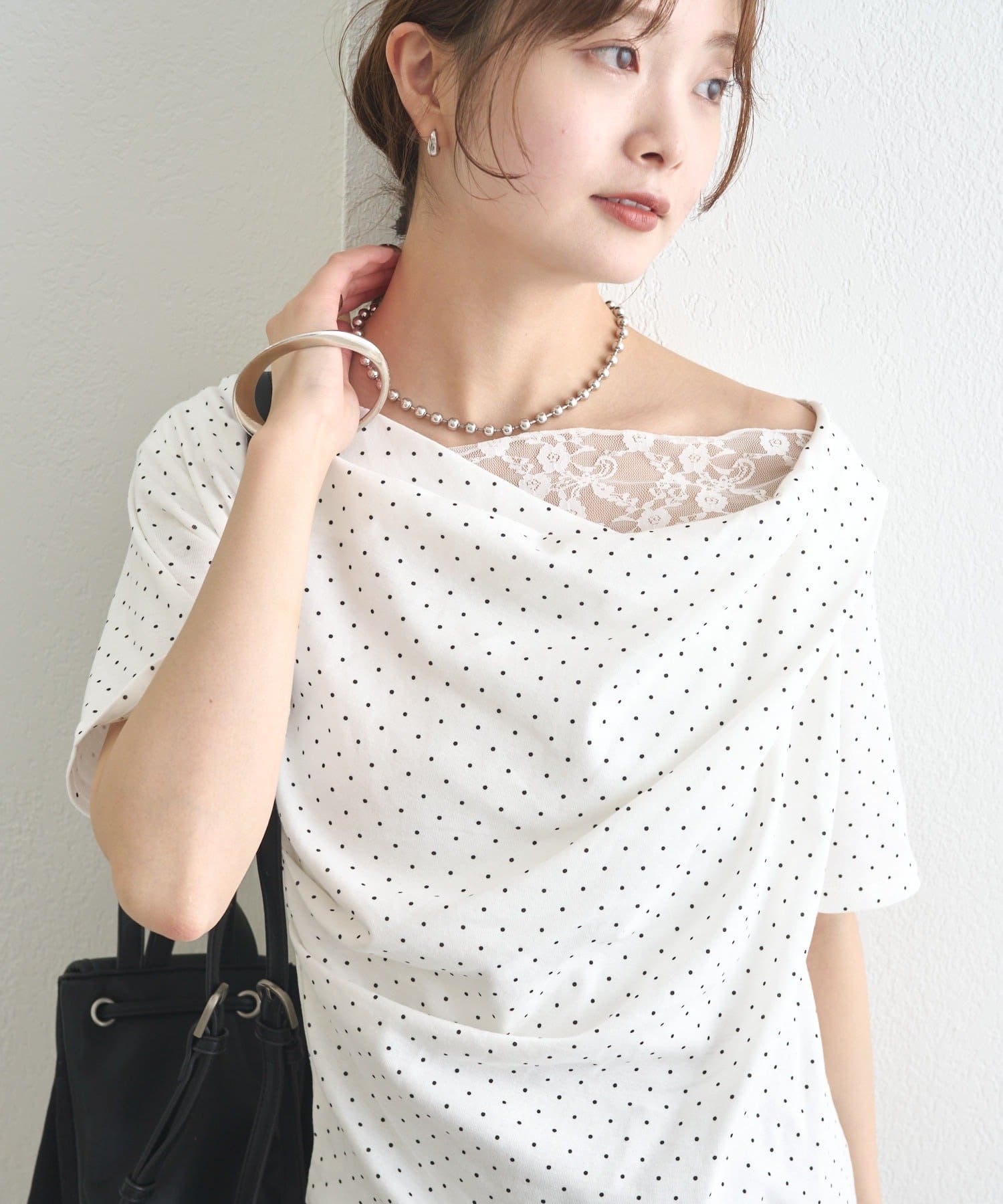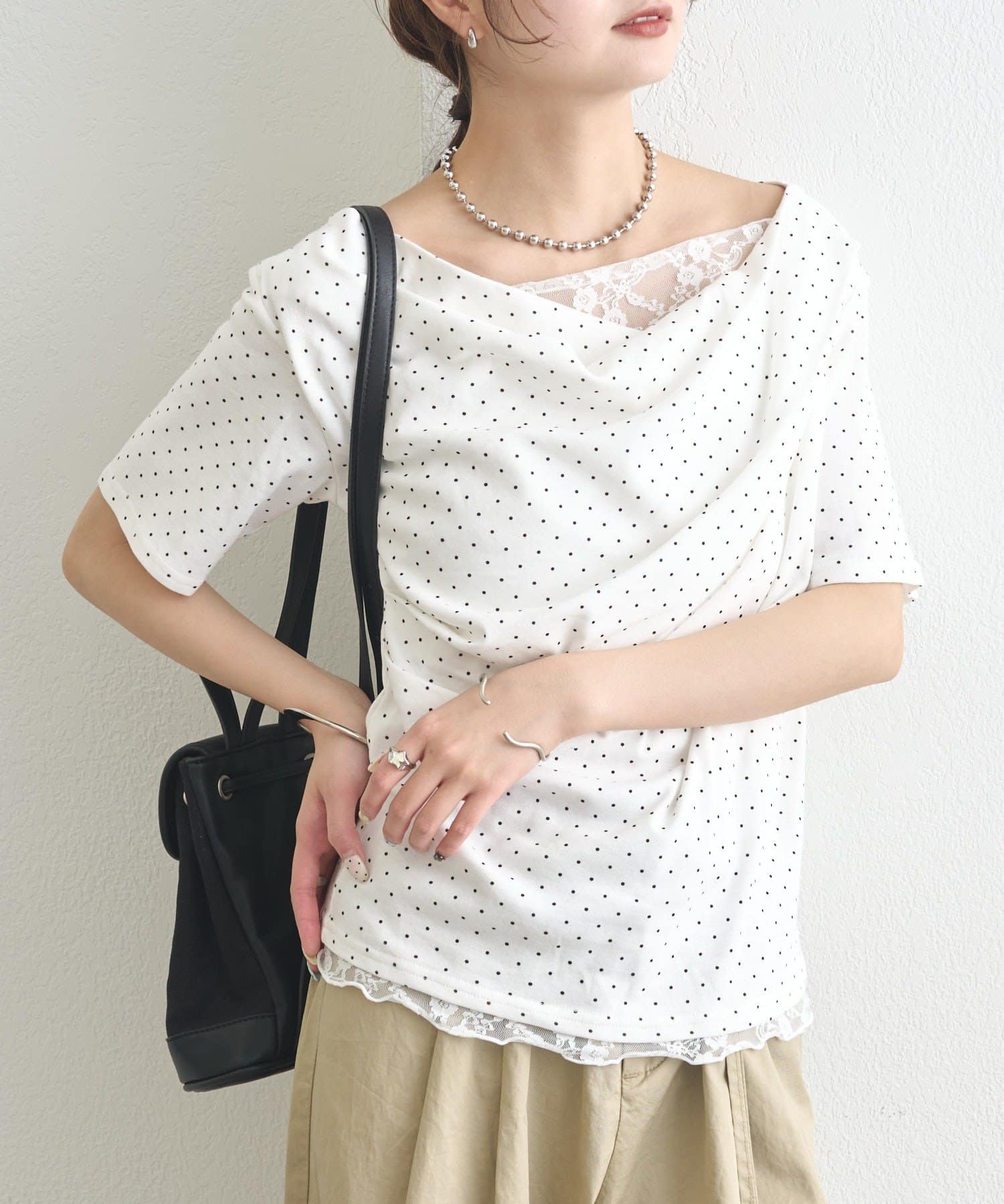 ・シンプルながらもレースがスタイリングに華やかさをプラスしてくれます。
