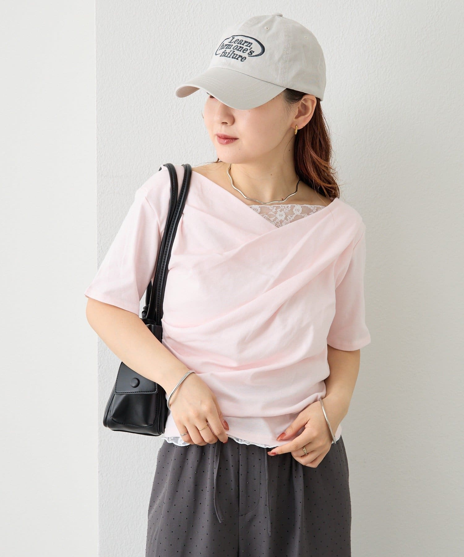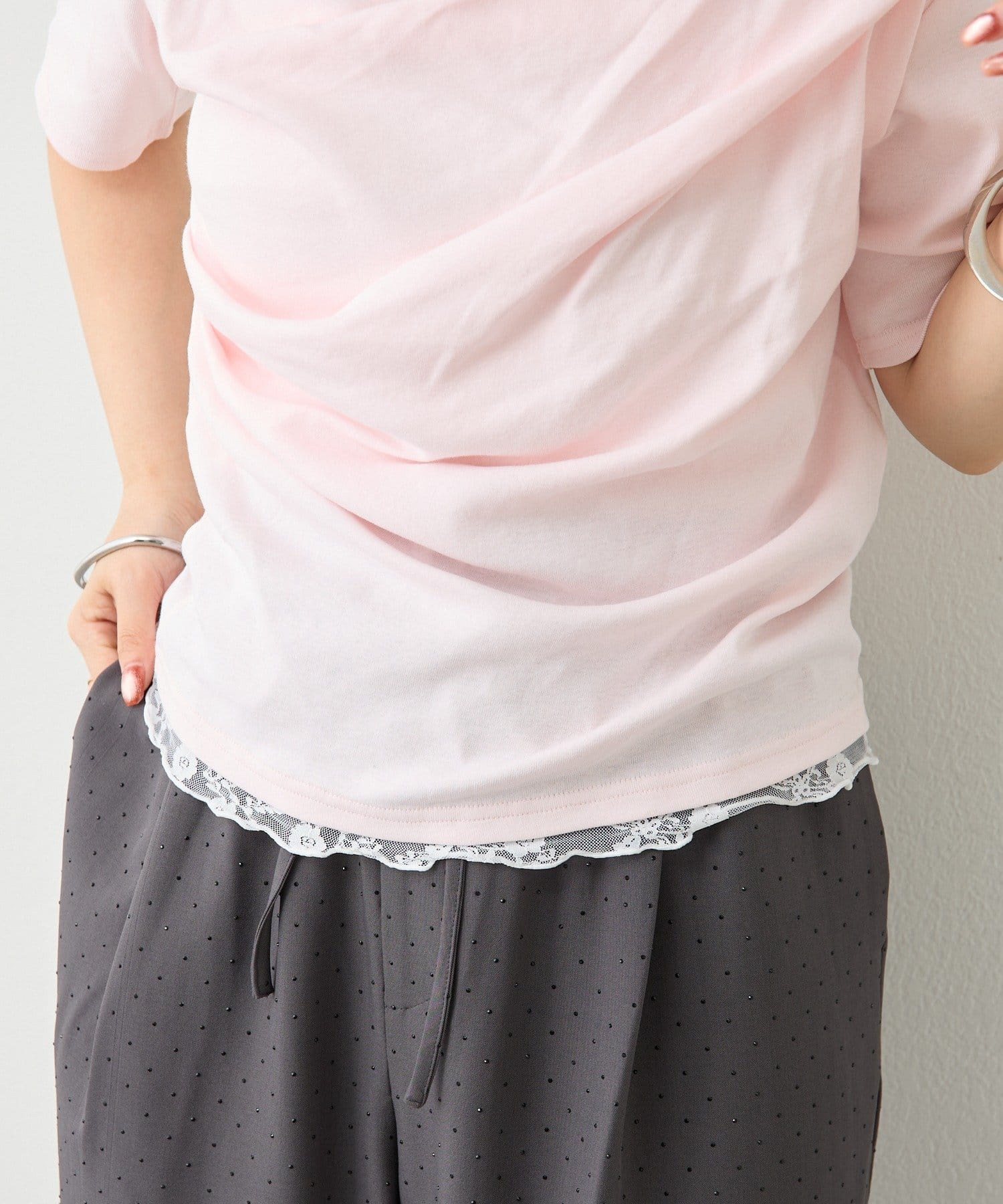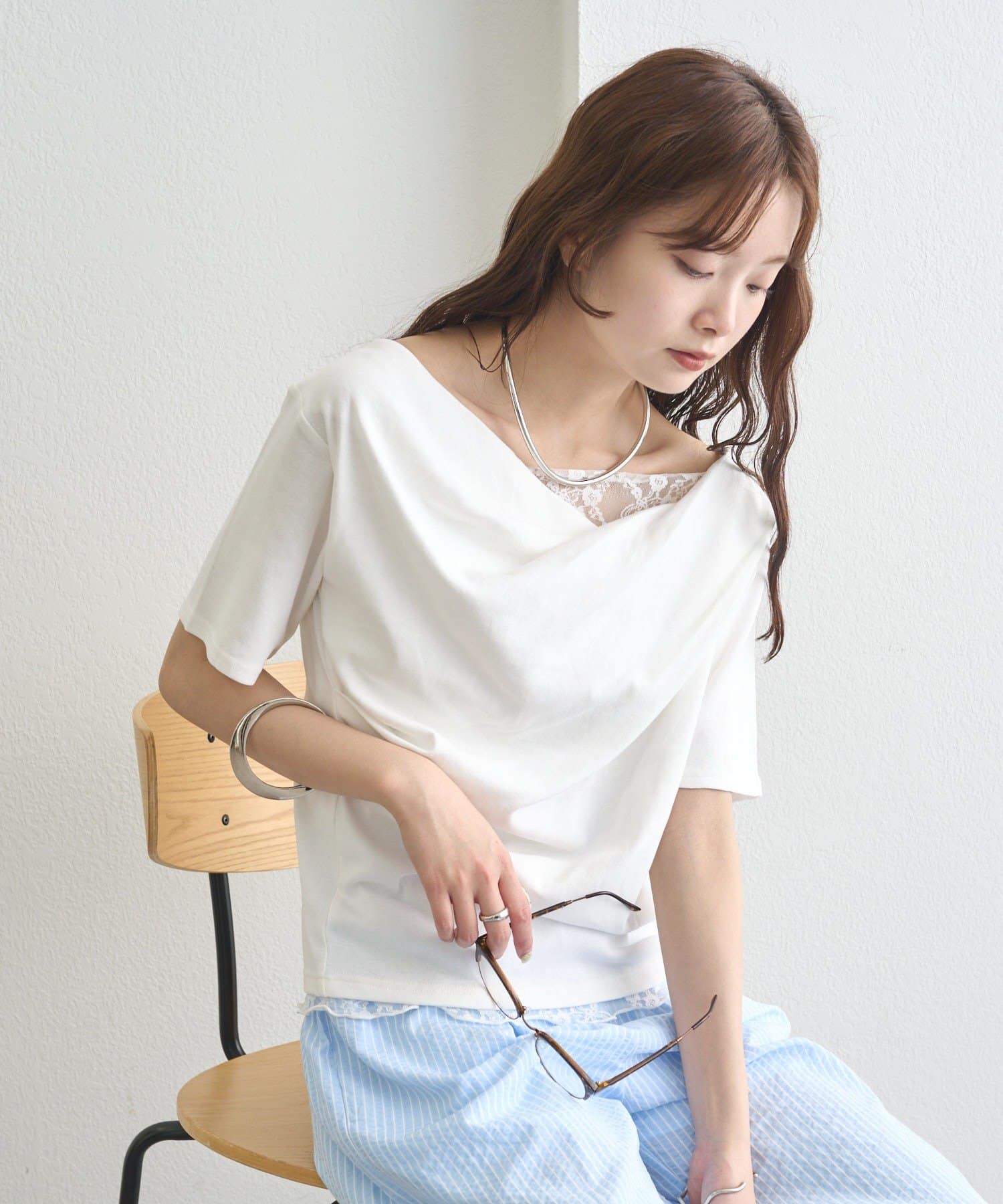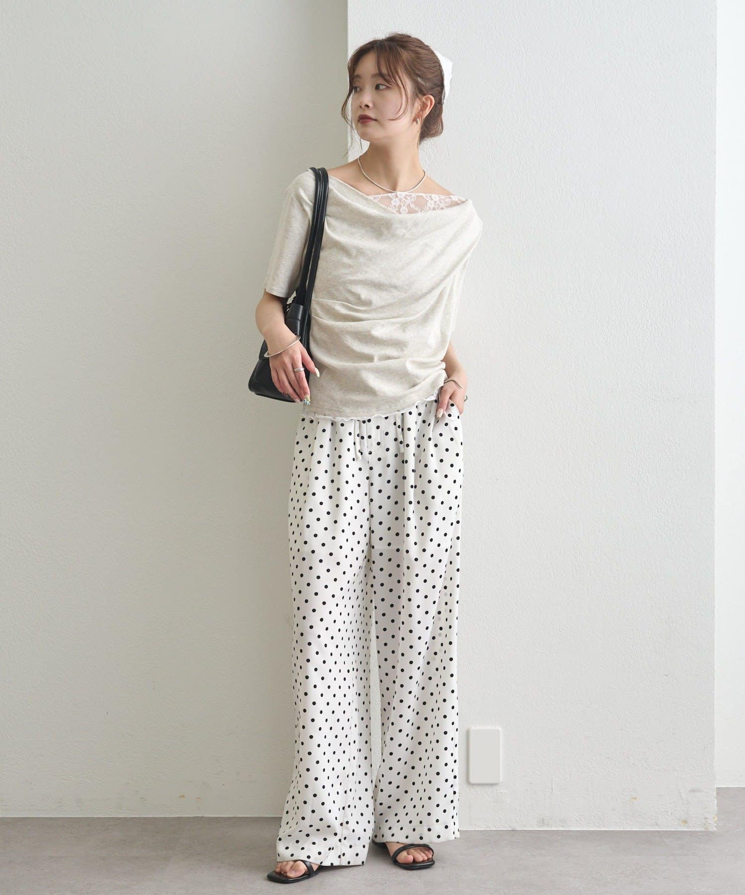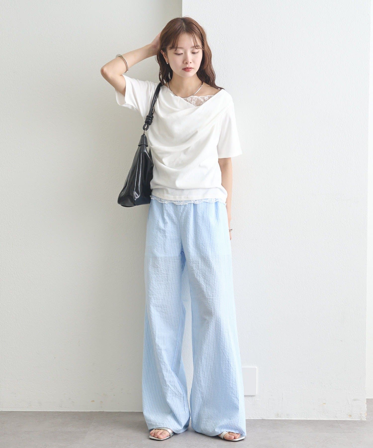 ・シンプルながらもレースがスタイリングに華やかさをプラスしてくれます。