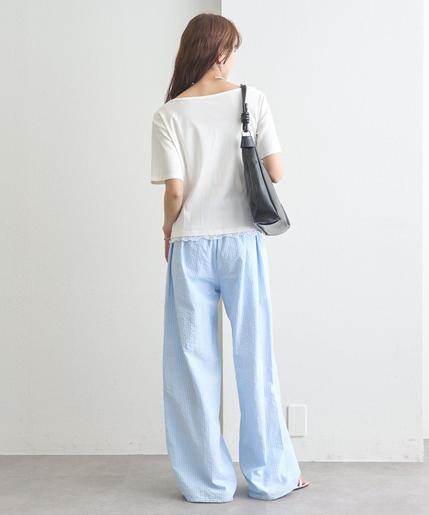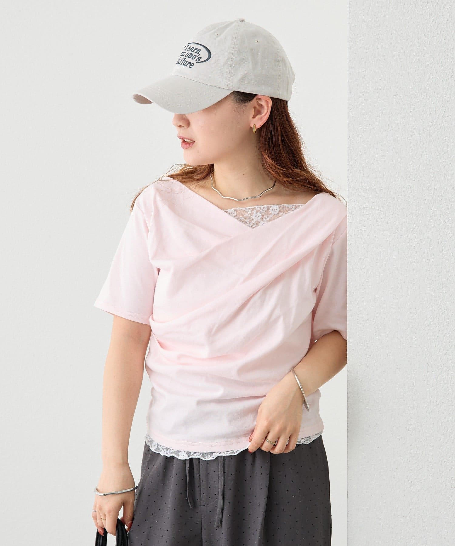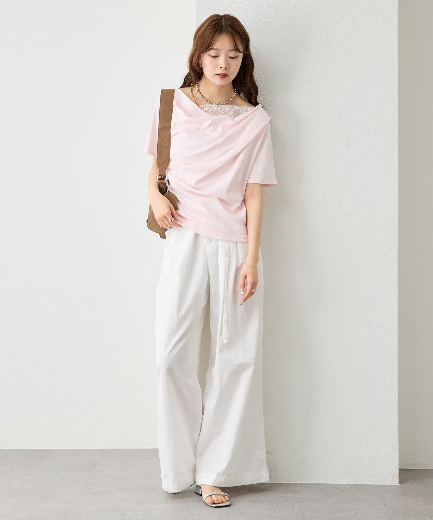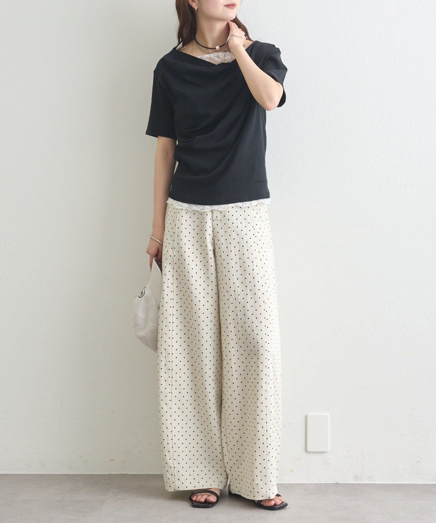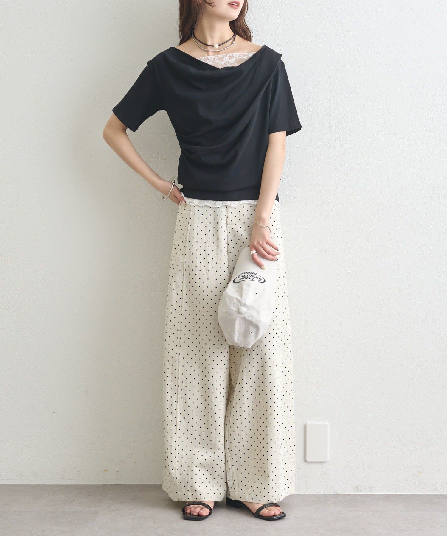 ・シンプルながらもレースがスタイリングに華やかさをプラスしてくれます。
