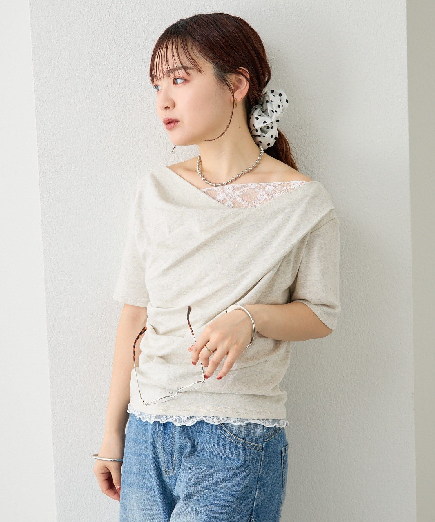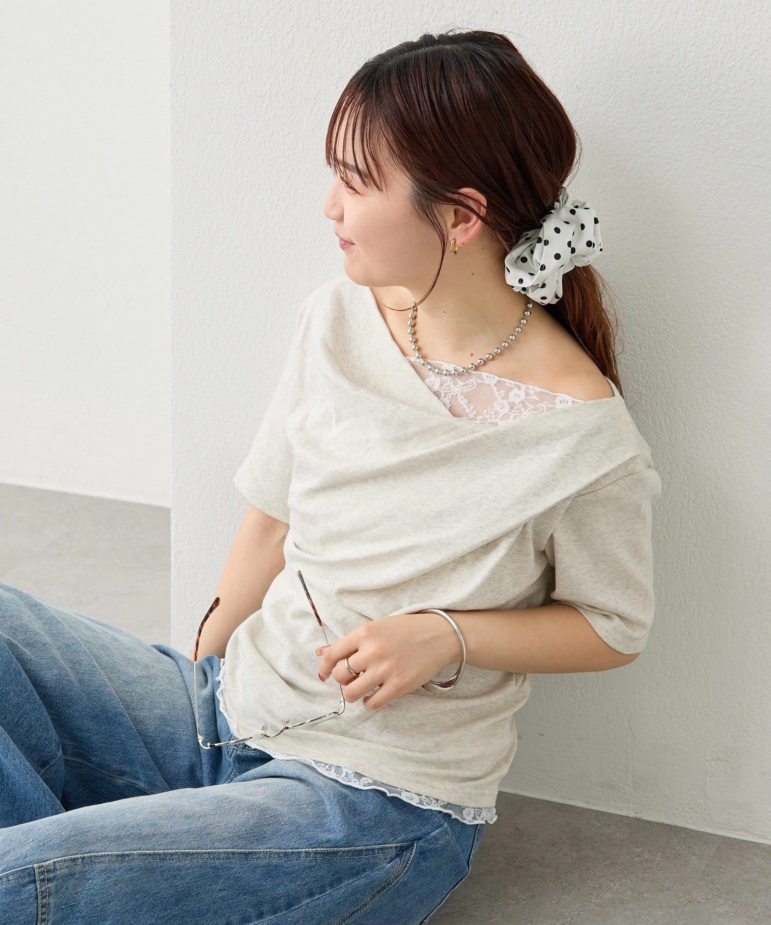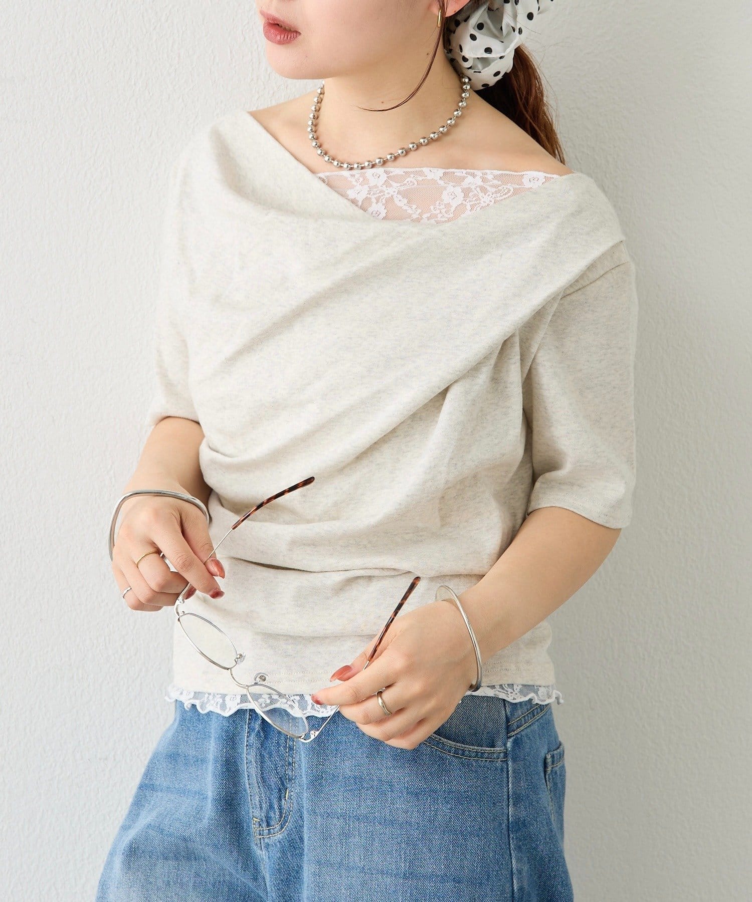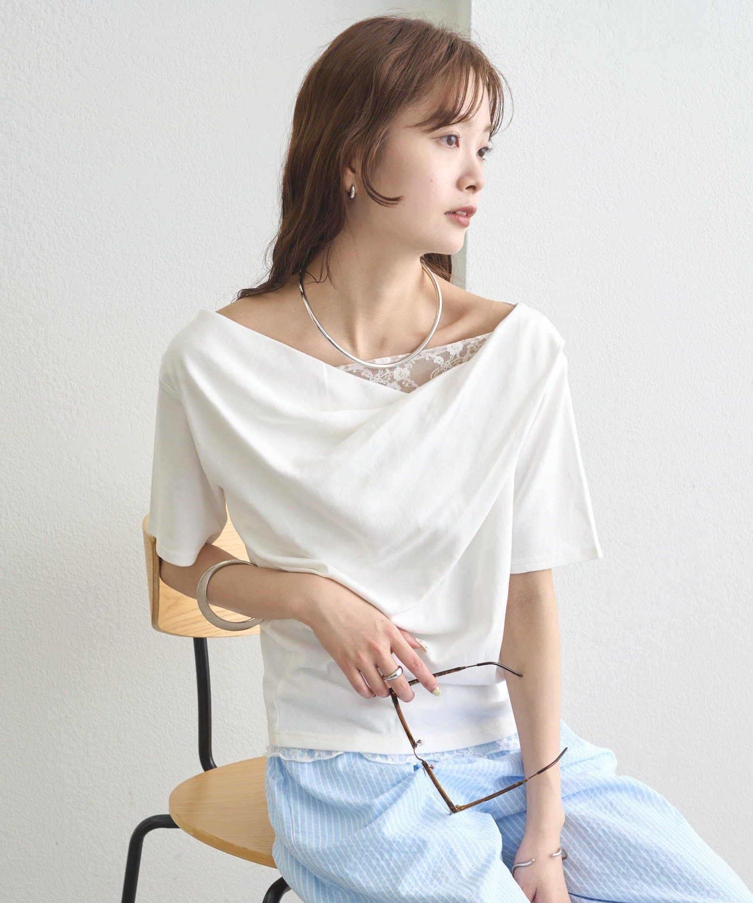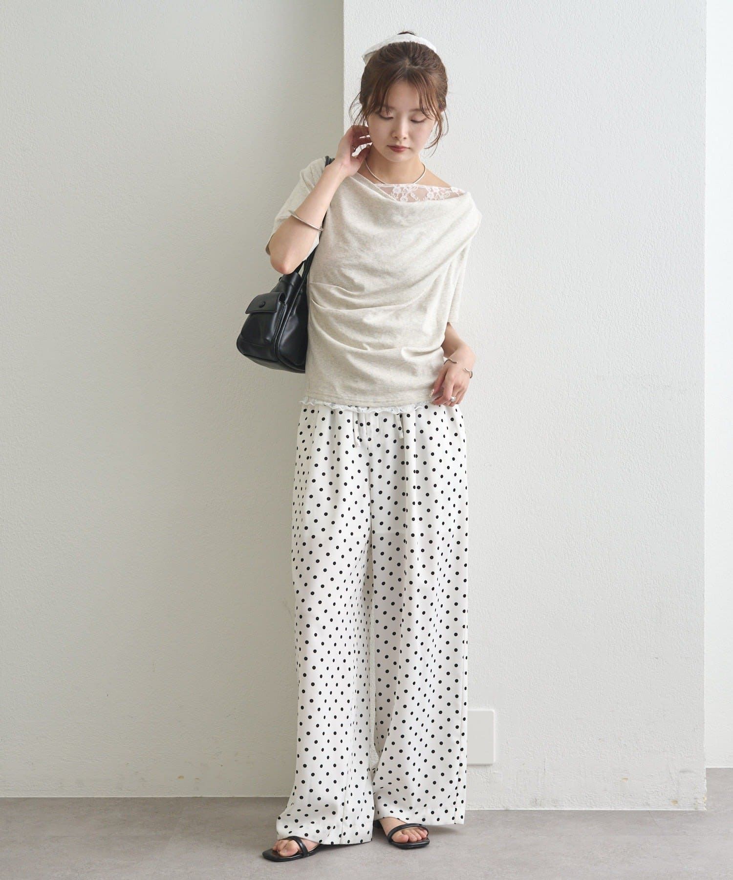 ・シンプルながらもレースがスタイリングに華やかさをプラスしてくれます。