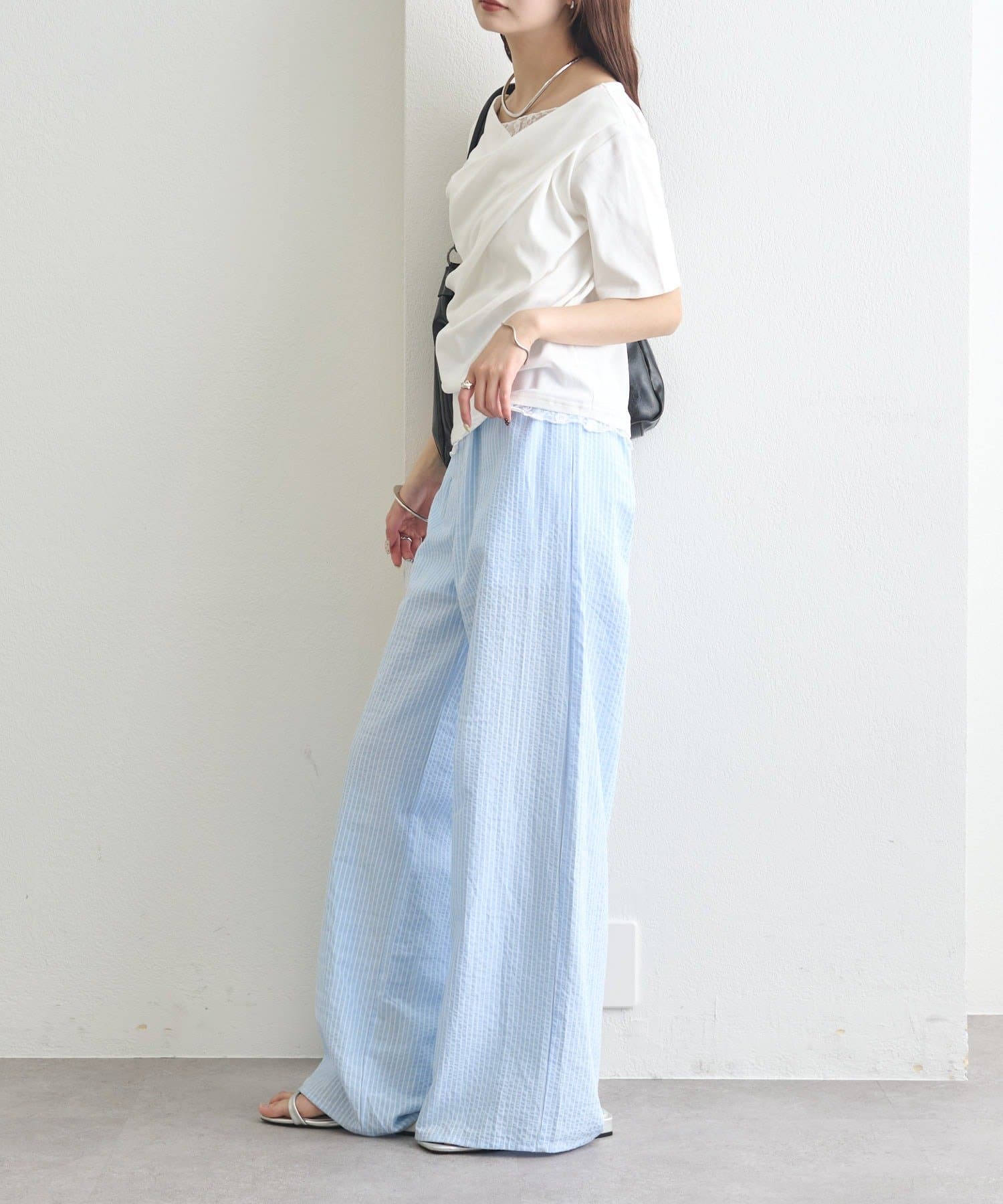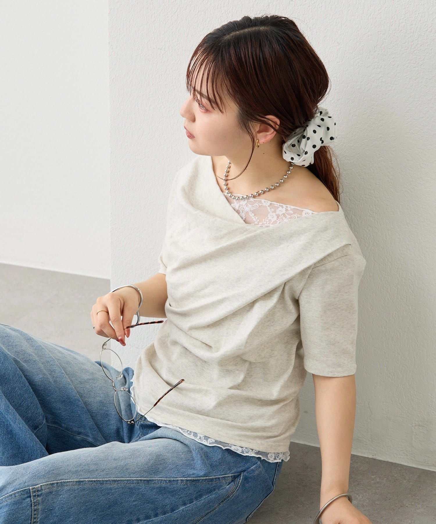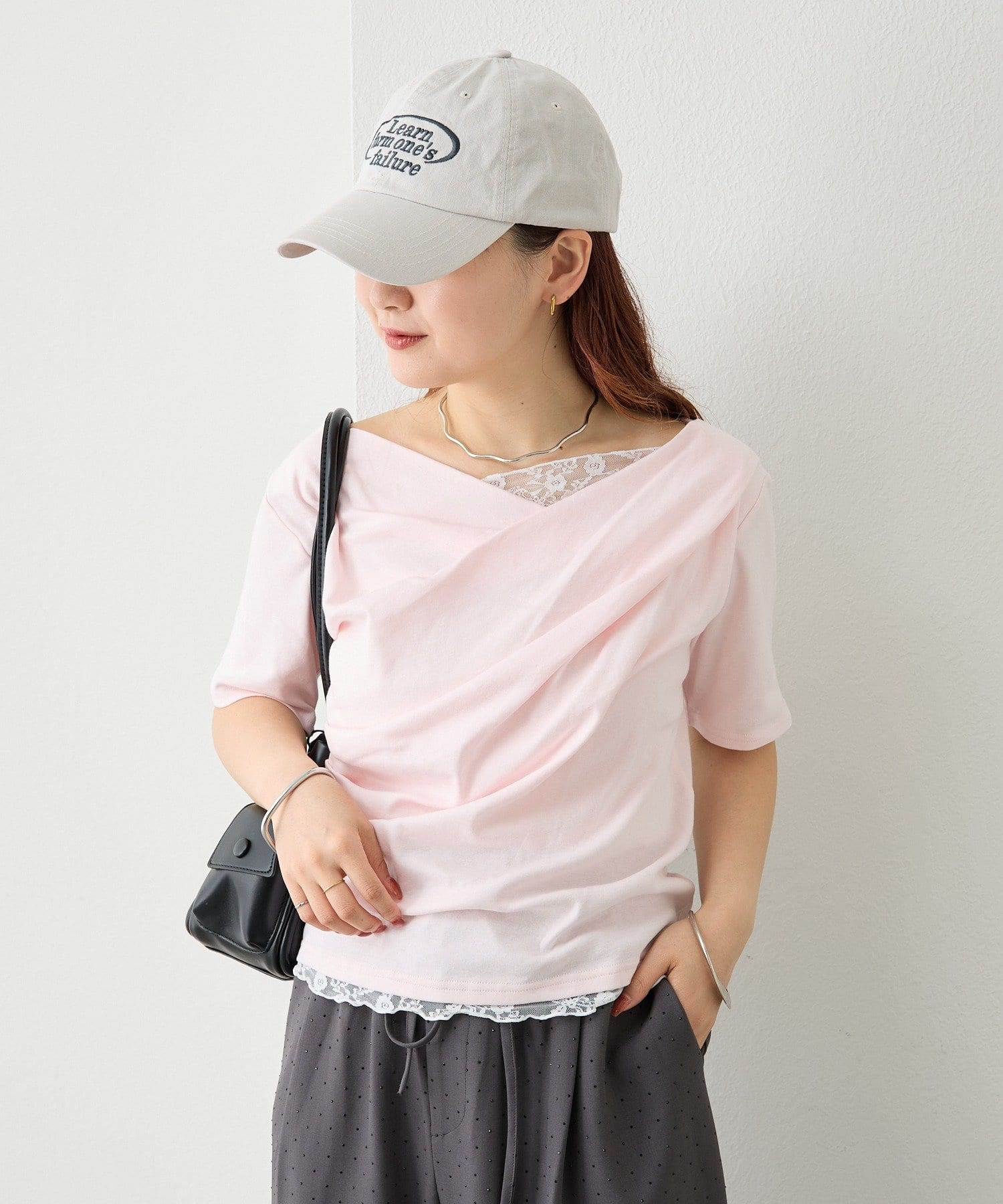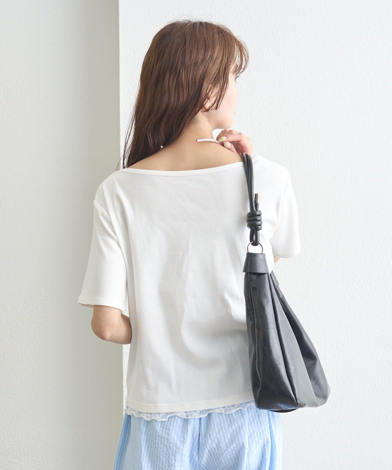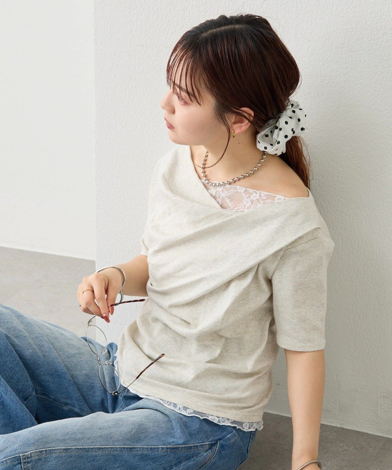 ・シンプルながらもレースがスタイリングに華やかさをプラスしてくれます。