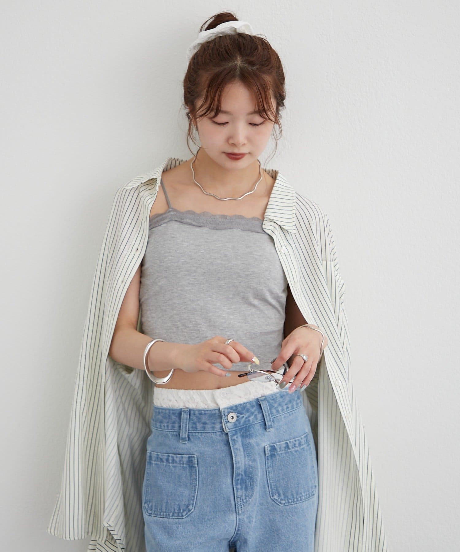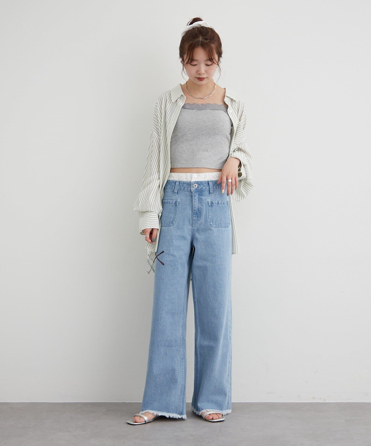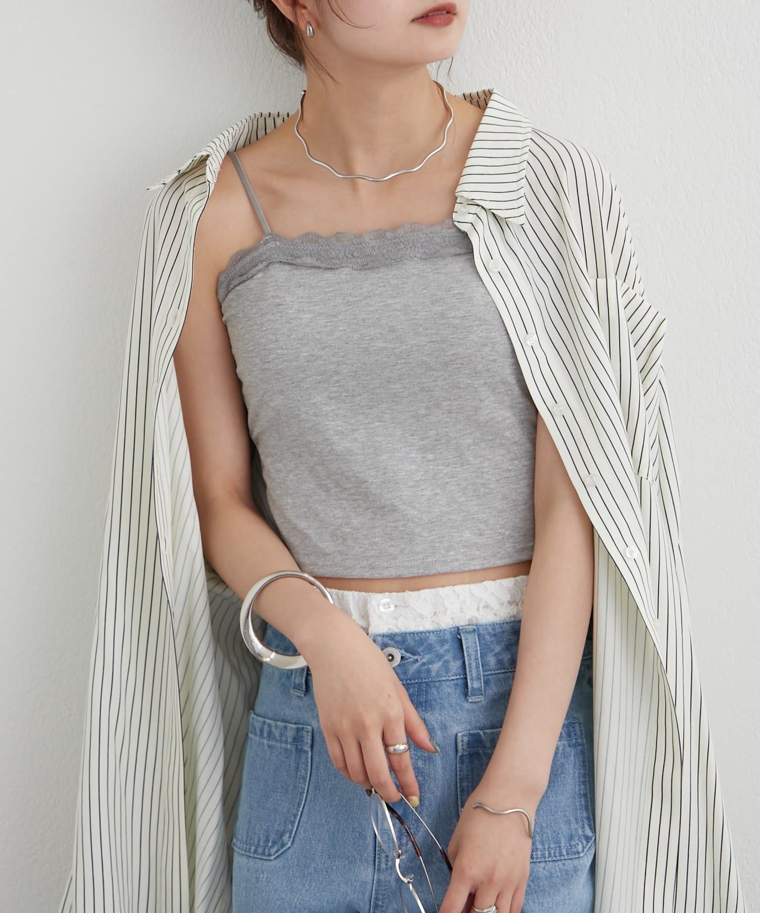 ・シアートップスやシャツを上に重ねるだけで、トレンド感のあるレイヤードスタイルが完成します。