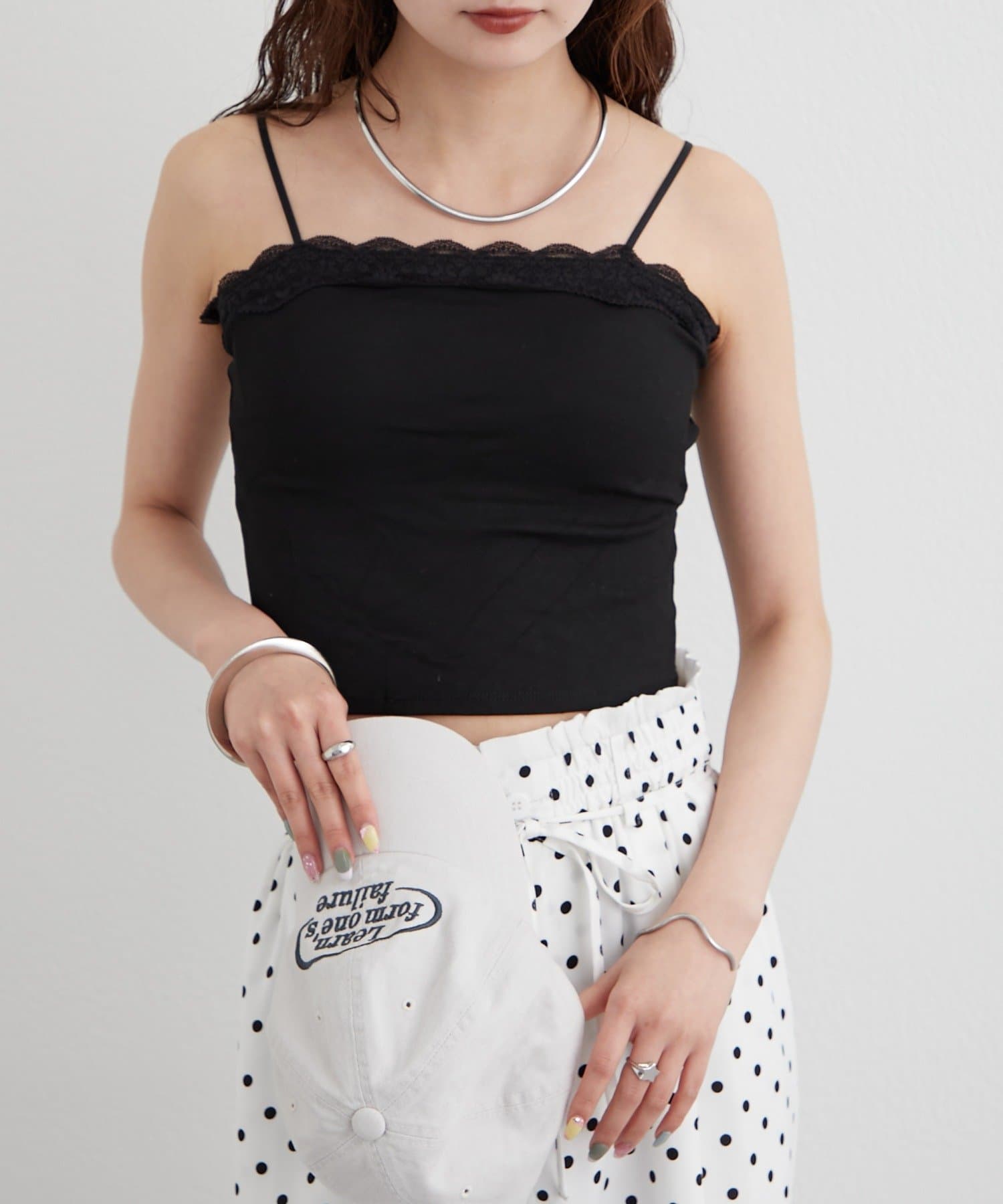TOP > mystic > レディース > トップス > タンクトップ > パット付きフリルレースショートキャミソール