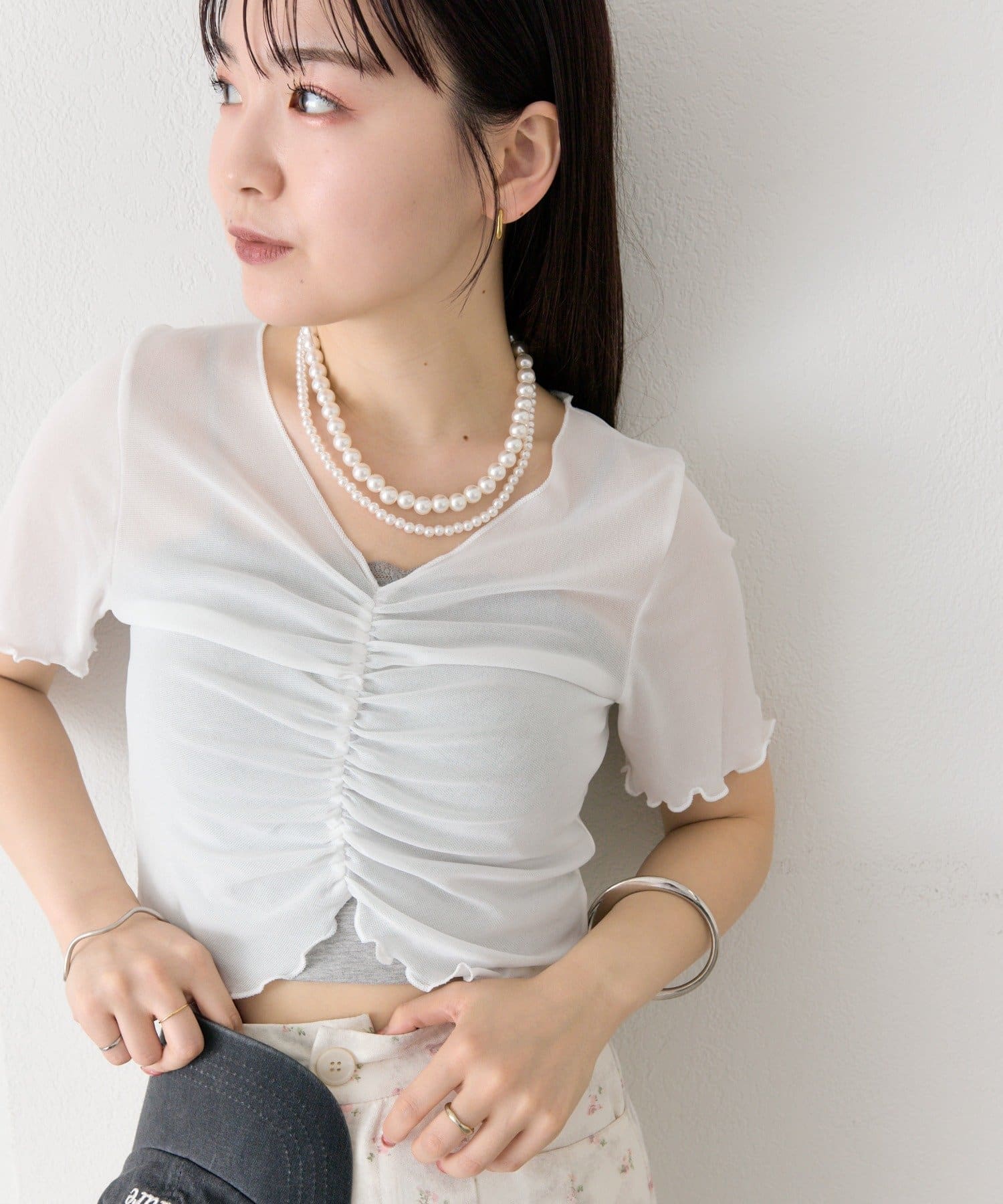 TOP > mystic > レディース > トップス > Tシャツ/カットソー > シャーリングチュールT