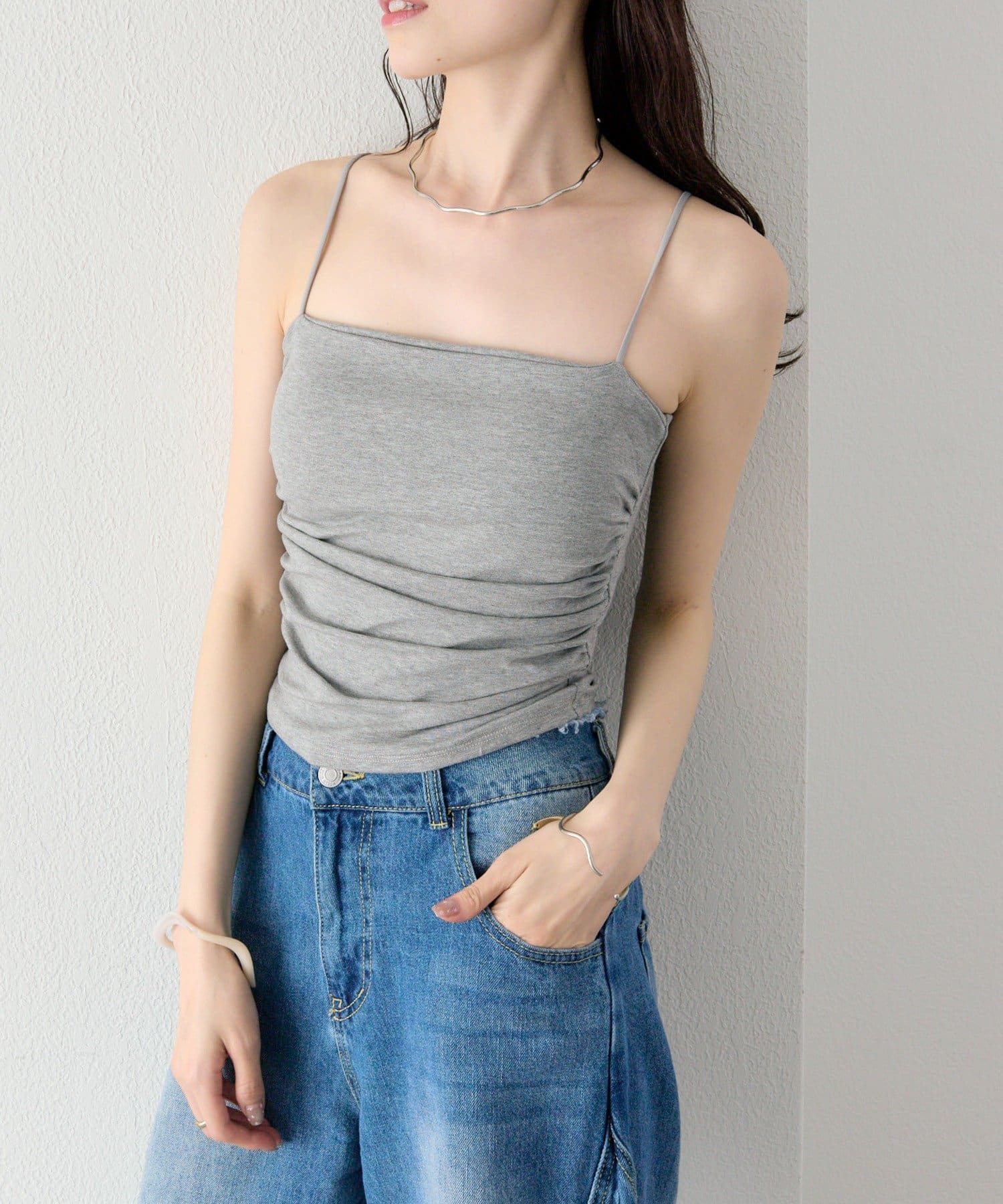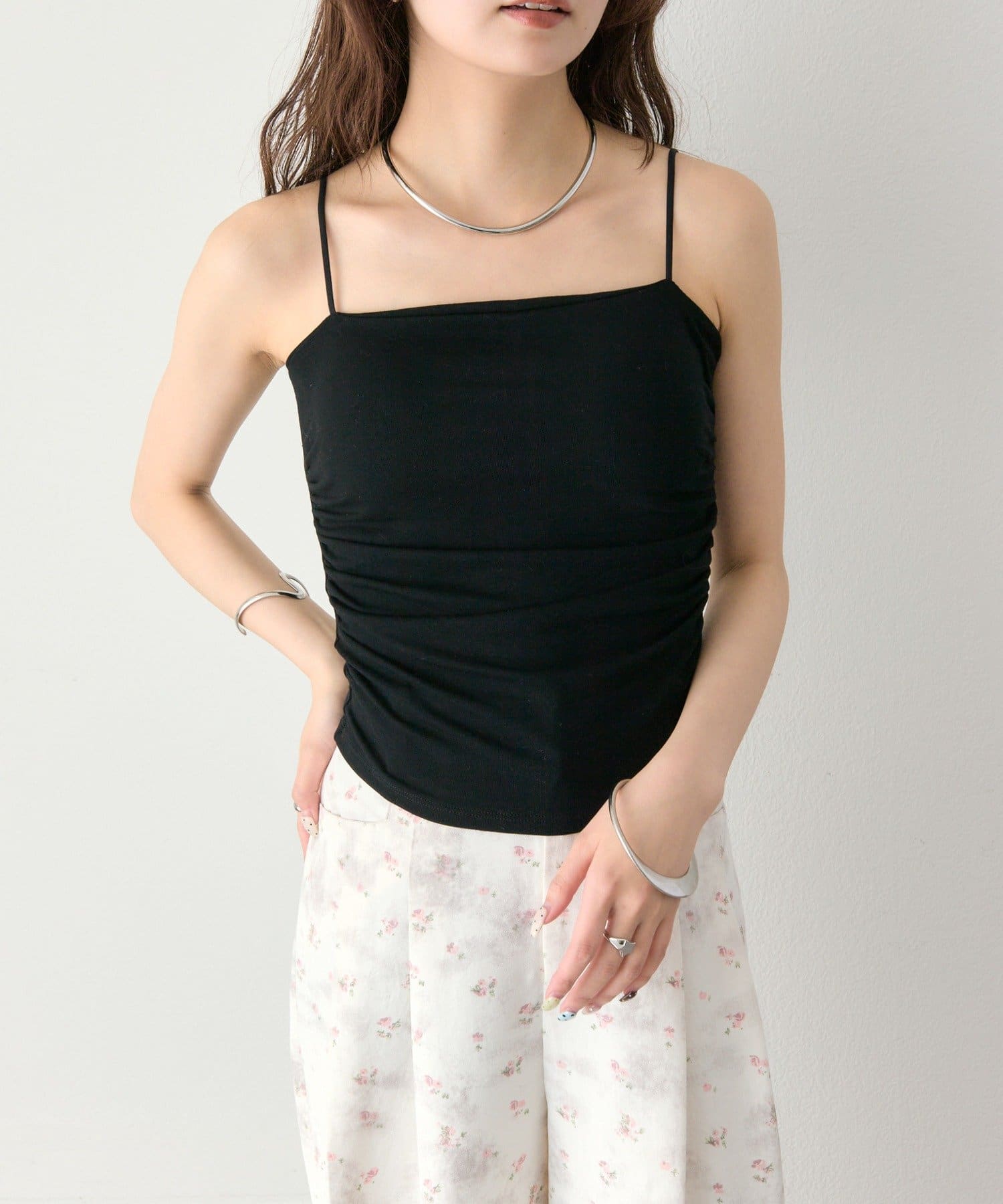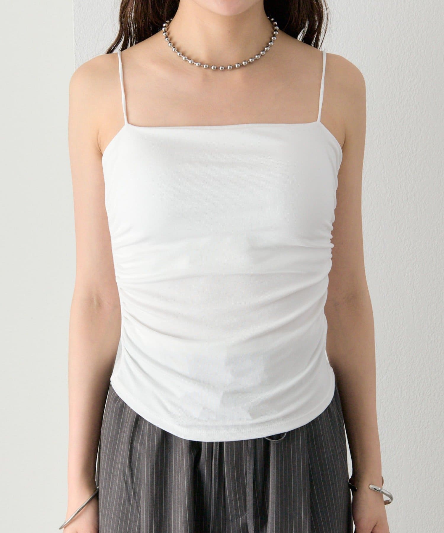 パット付きサイドギャザーキャミソール