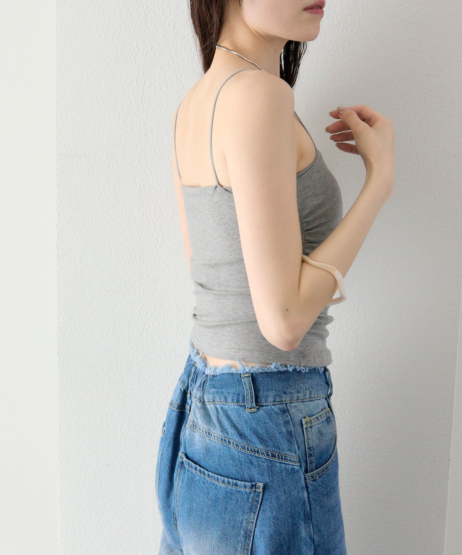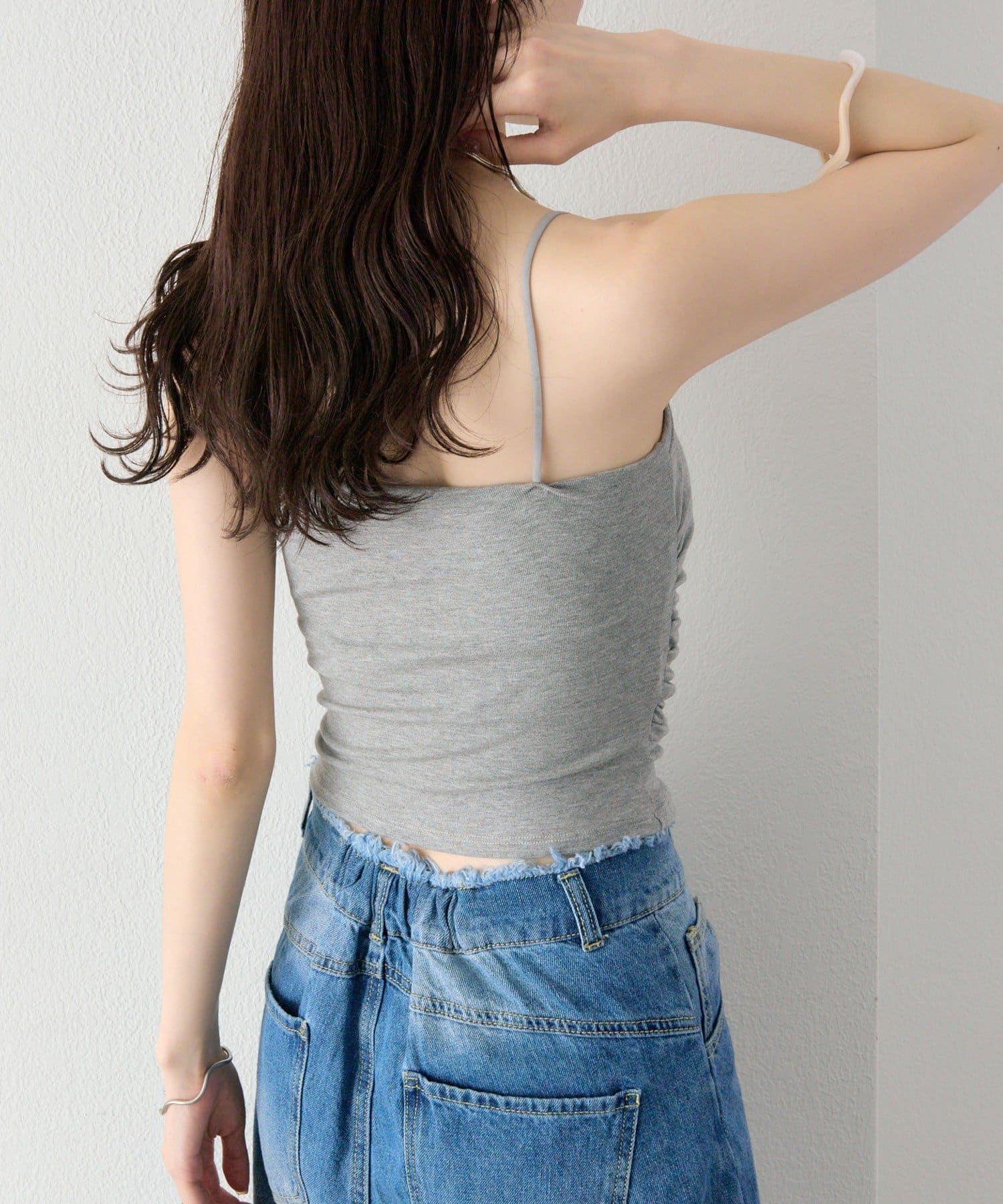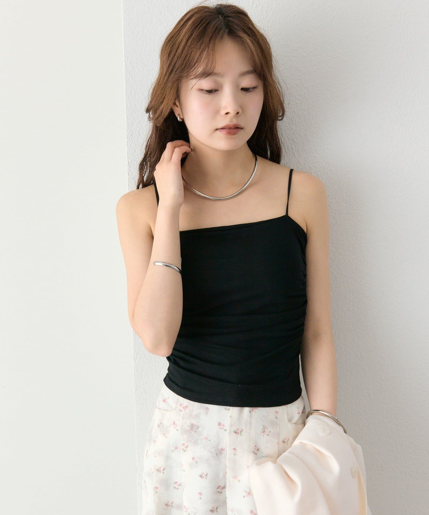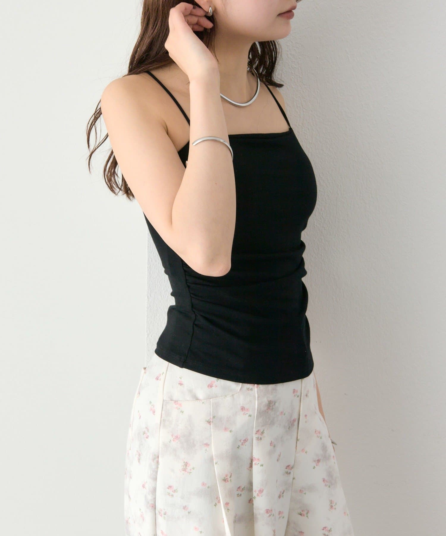 パット付きサイドギャザーキャミソール