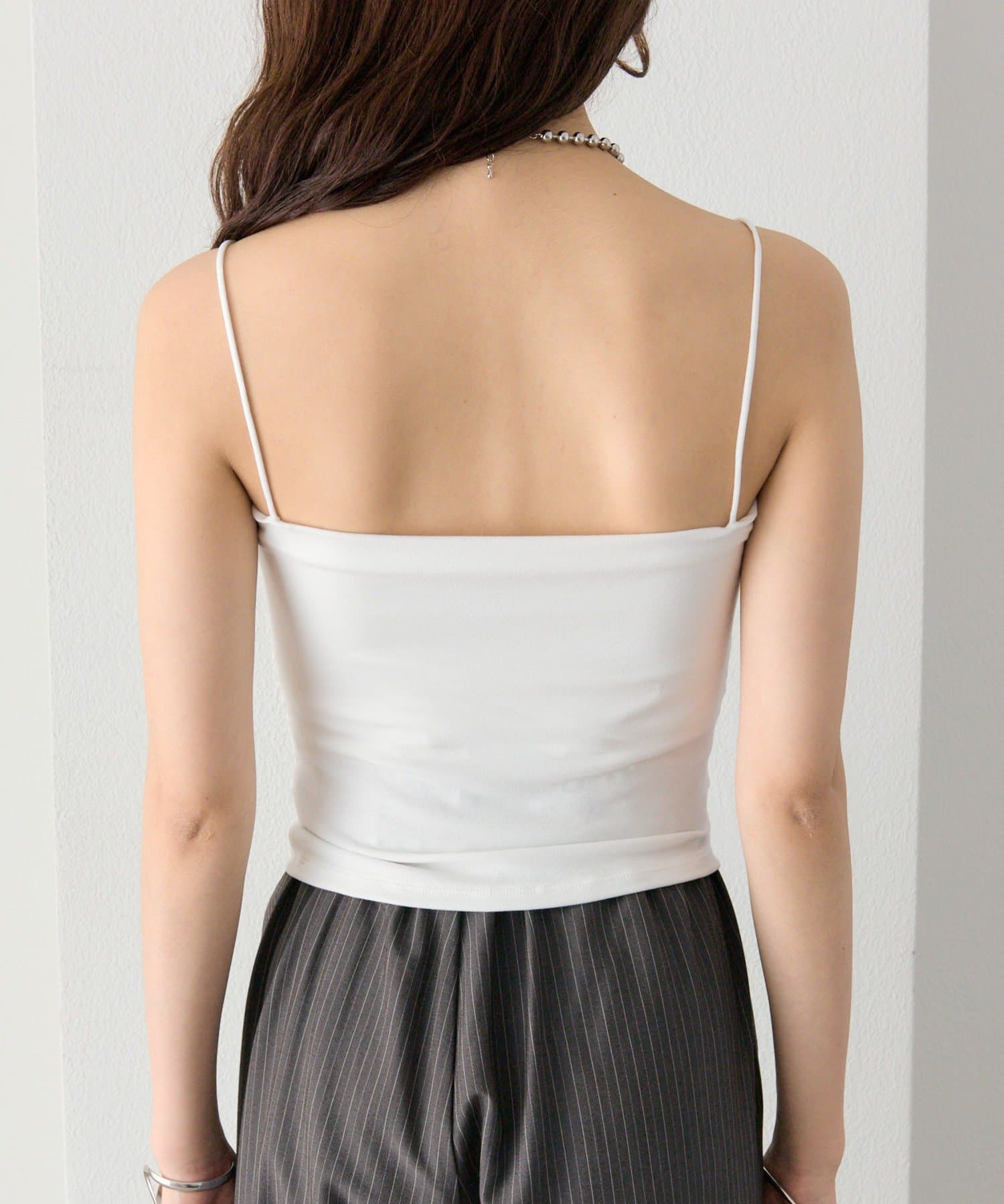 ギャザーデザインがスタイルよく見せてくれるパット付きキャミソール