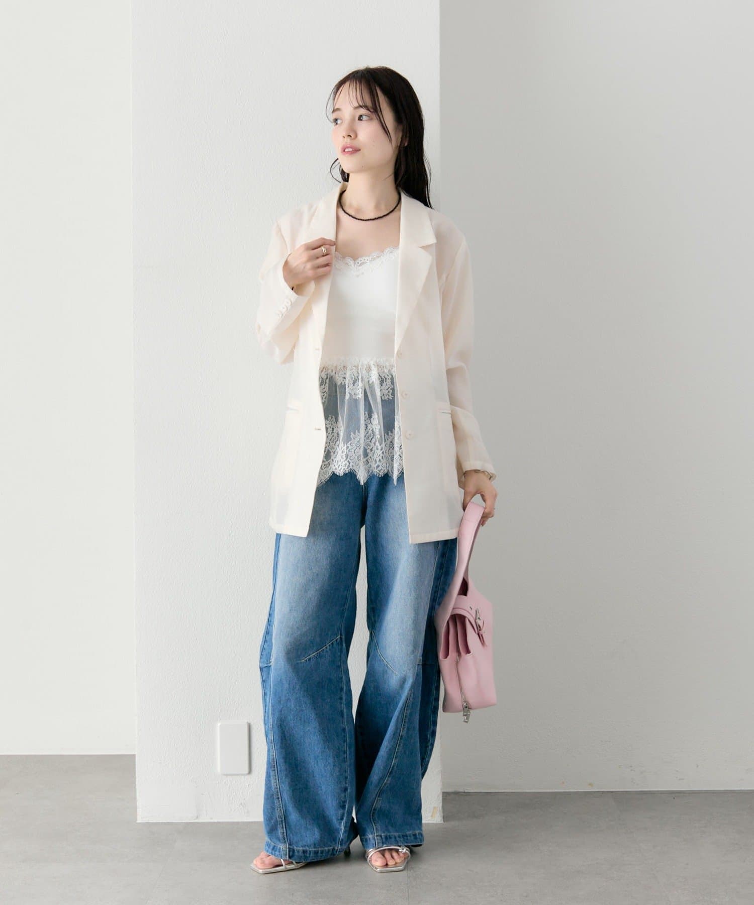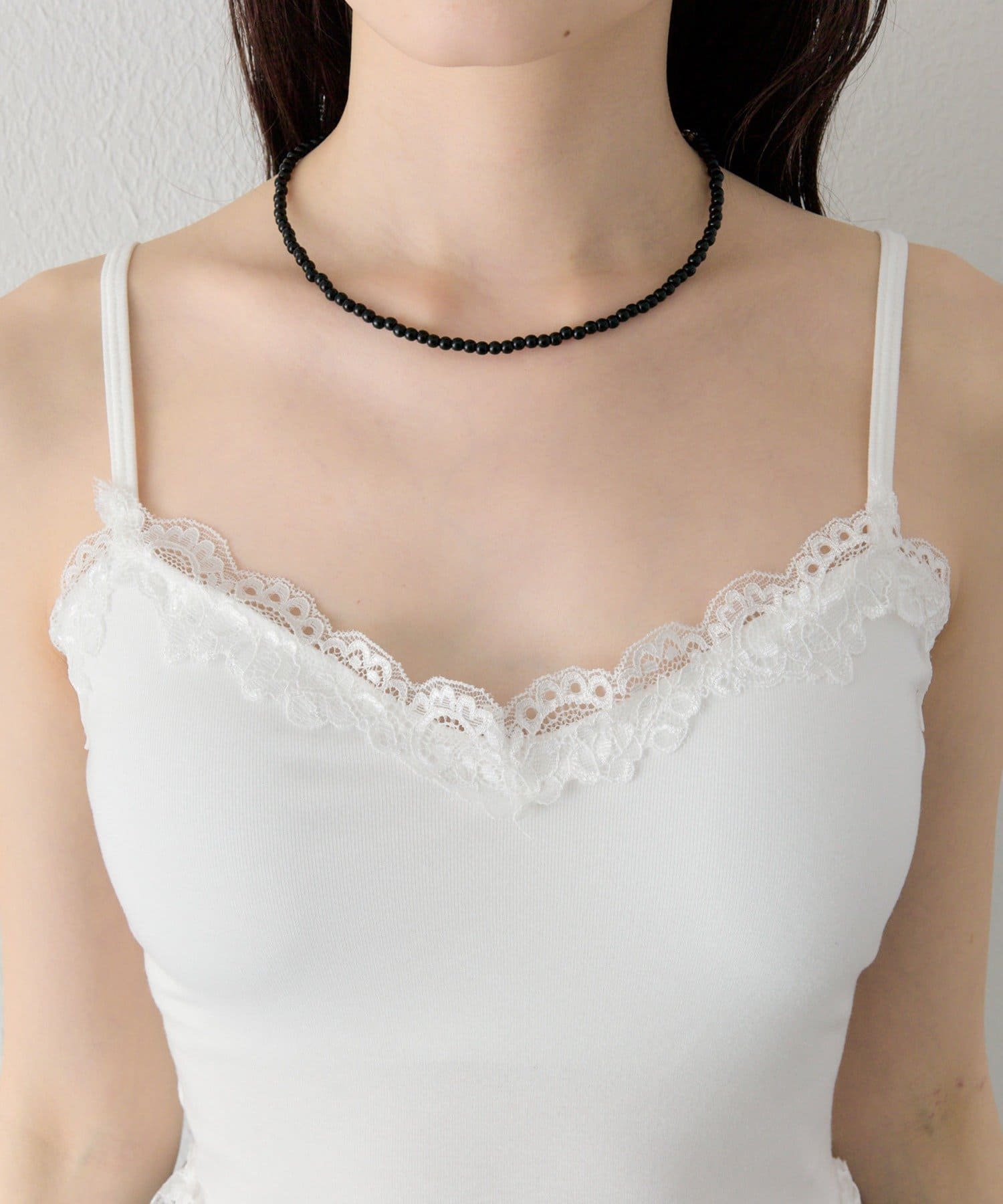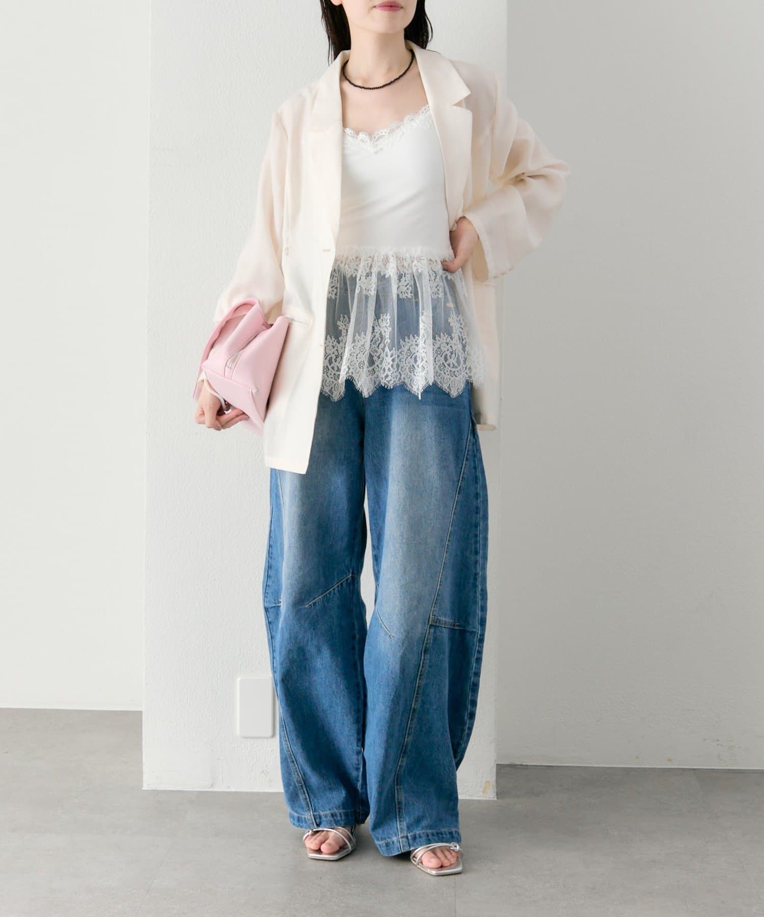 ・繊細なレースが女性らしさを引き立てつつ、甘くなりすぎないバランスに。