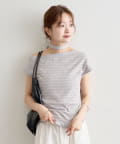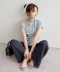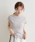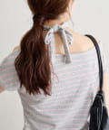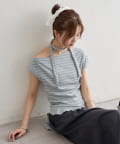 トレンドのオフショルダーデザインで、程よい肌見せが叶うトップス。