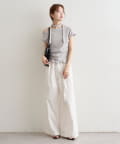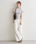 デザインのあるトップスなのでシンプルボトムでも決まります。