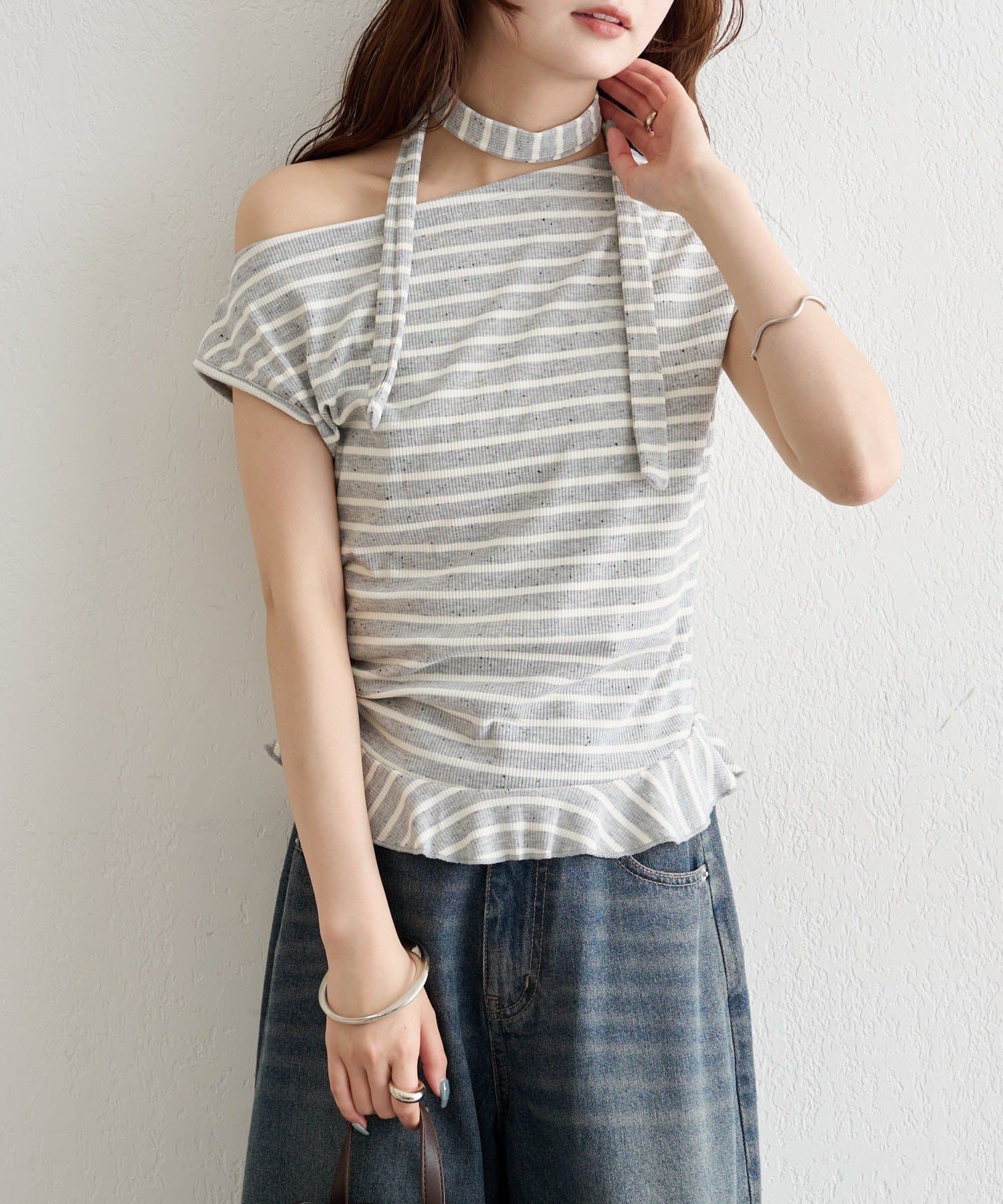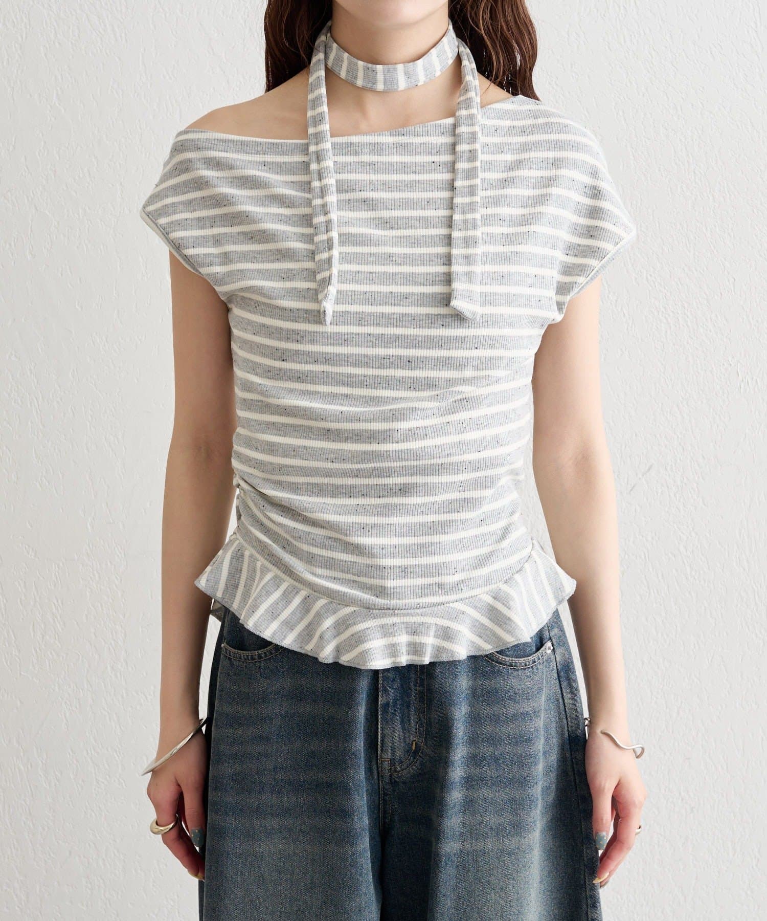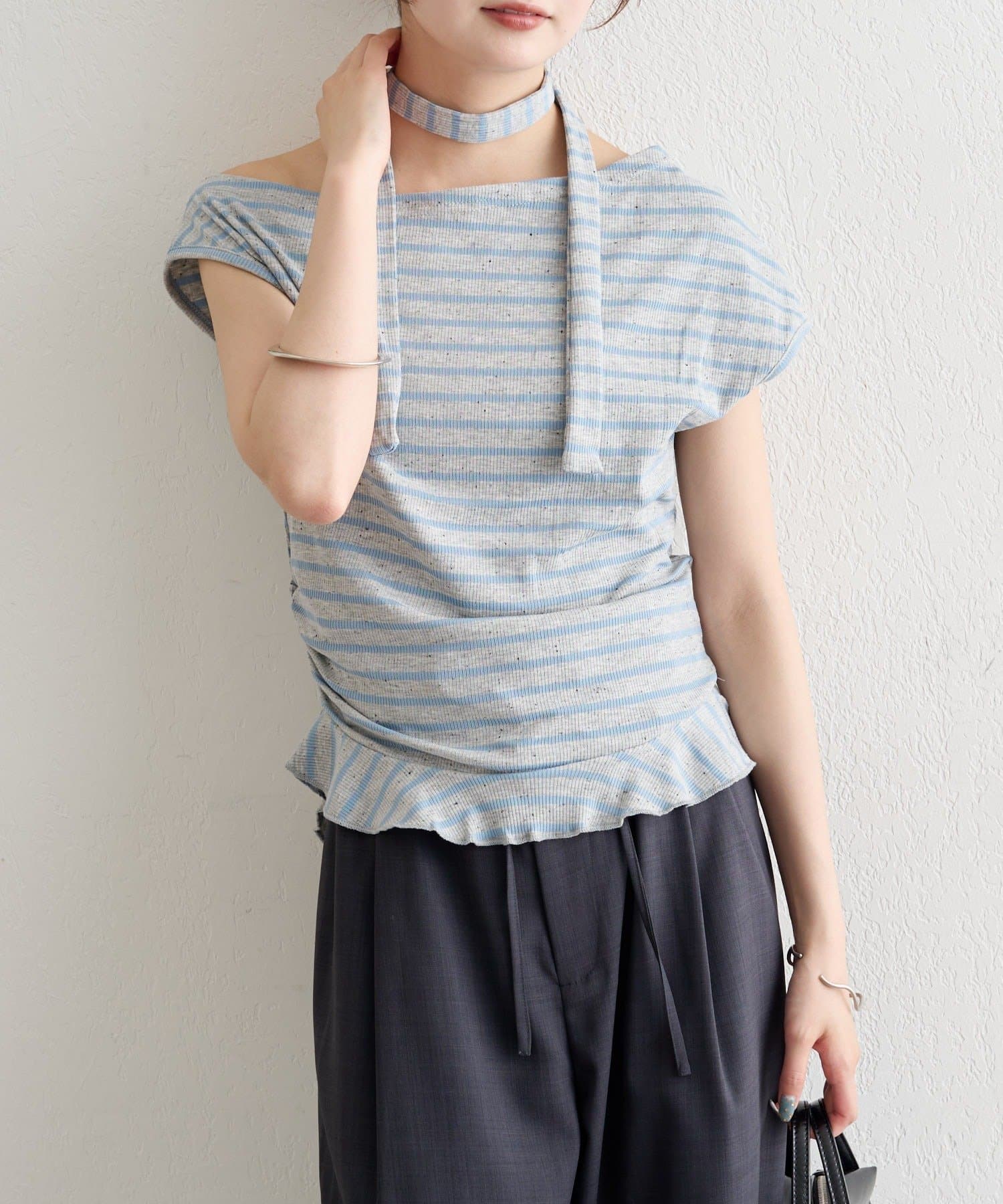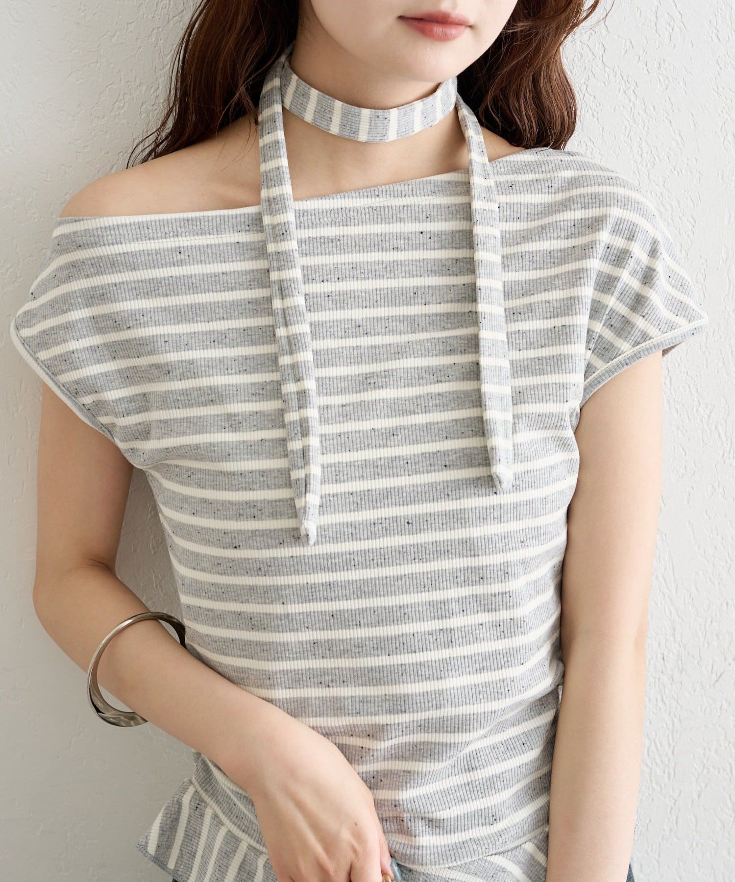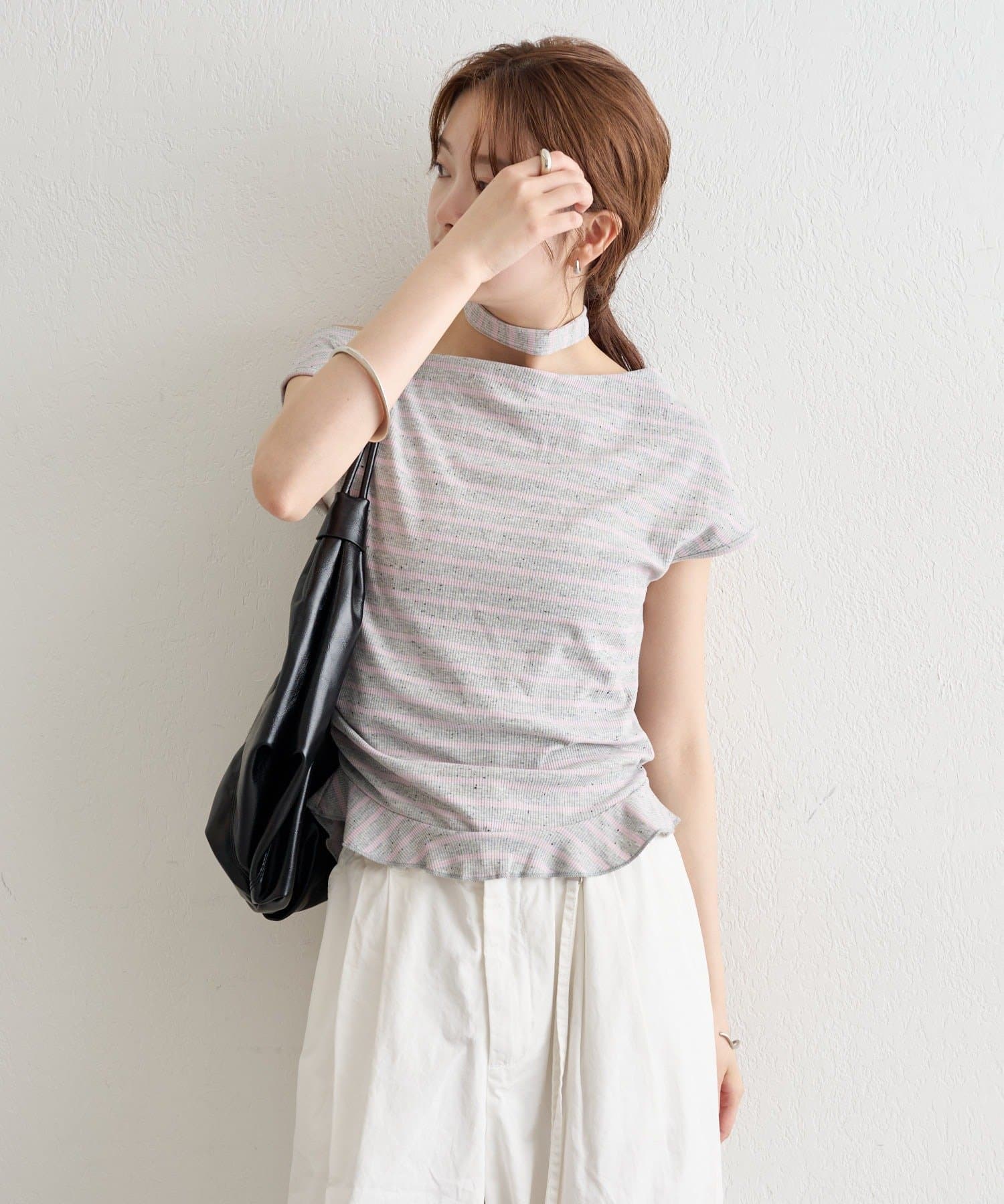 チョーカー付きでトレンド感アップ!ワンショルカットソー