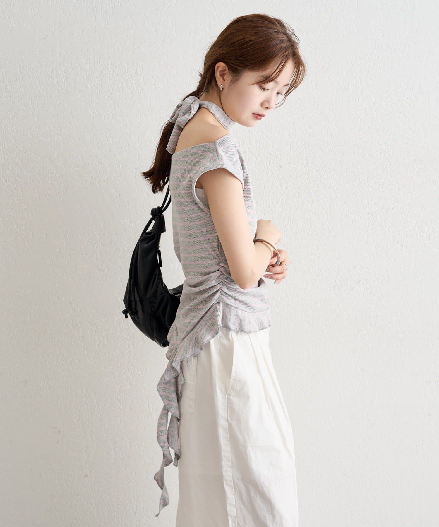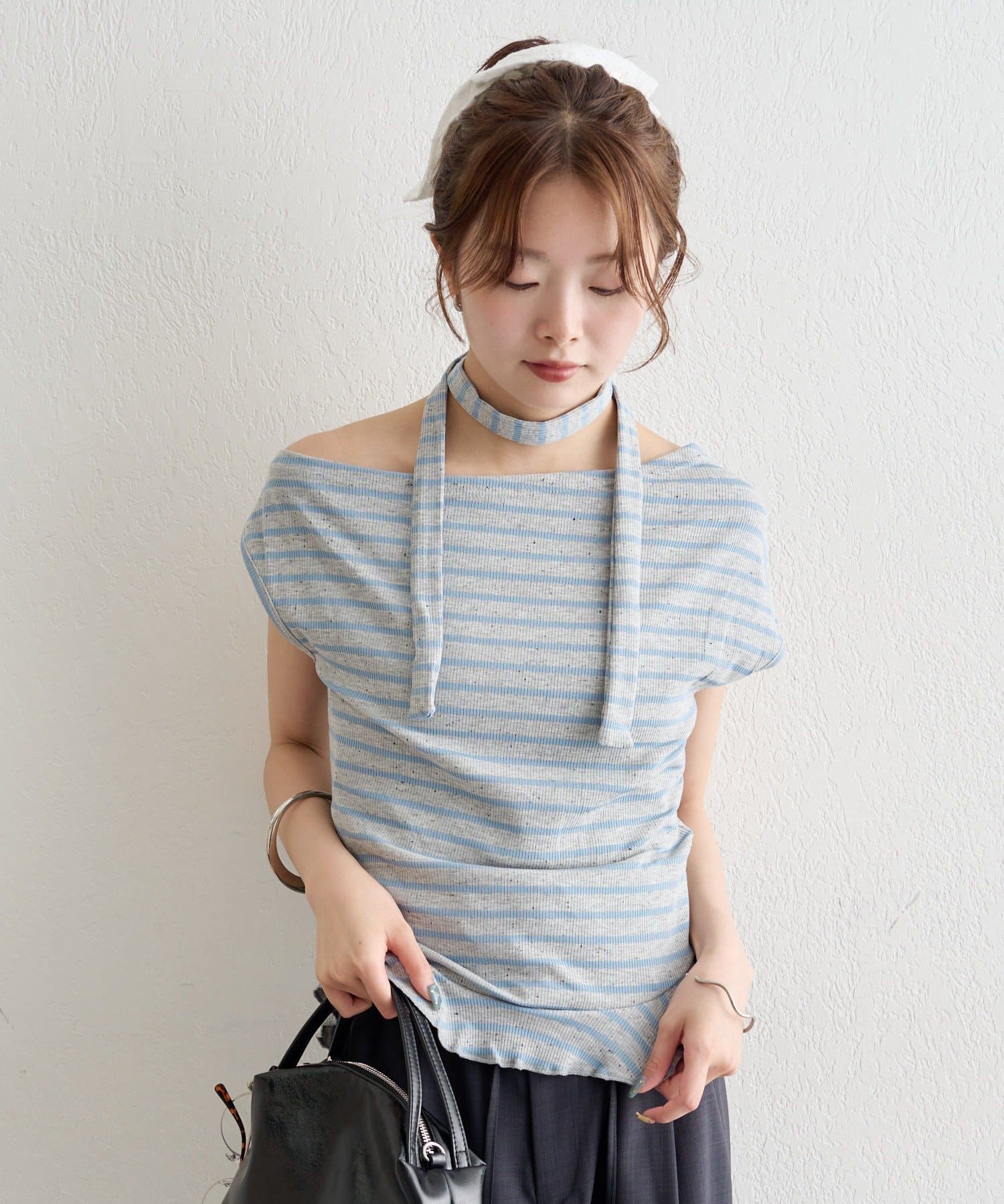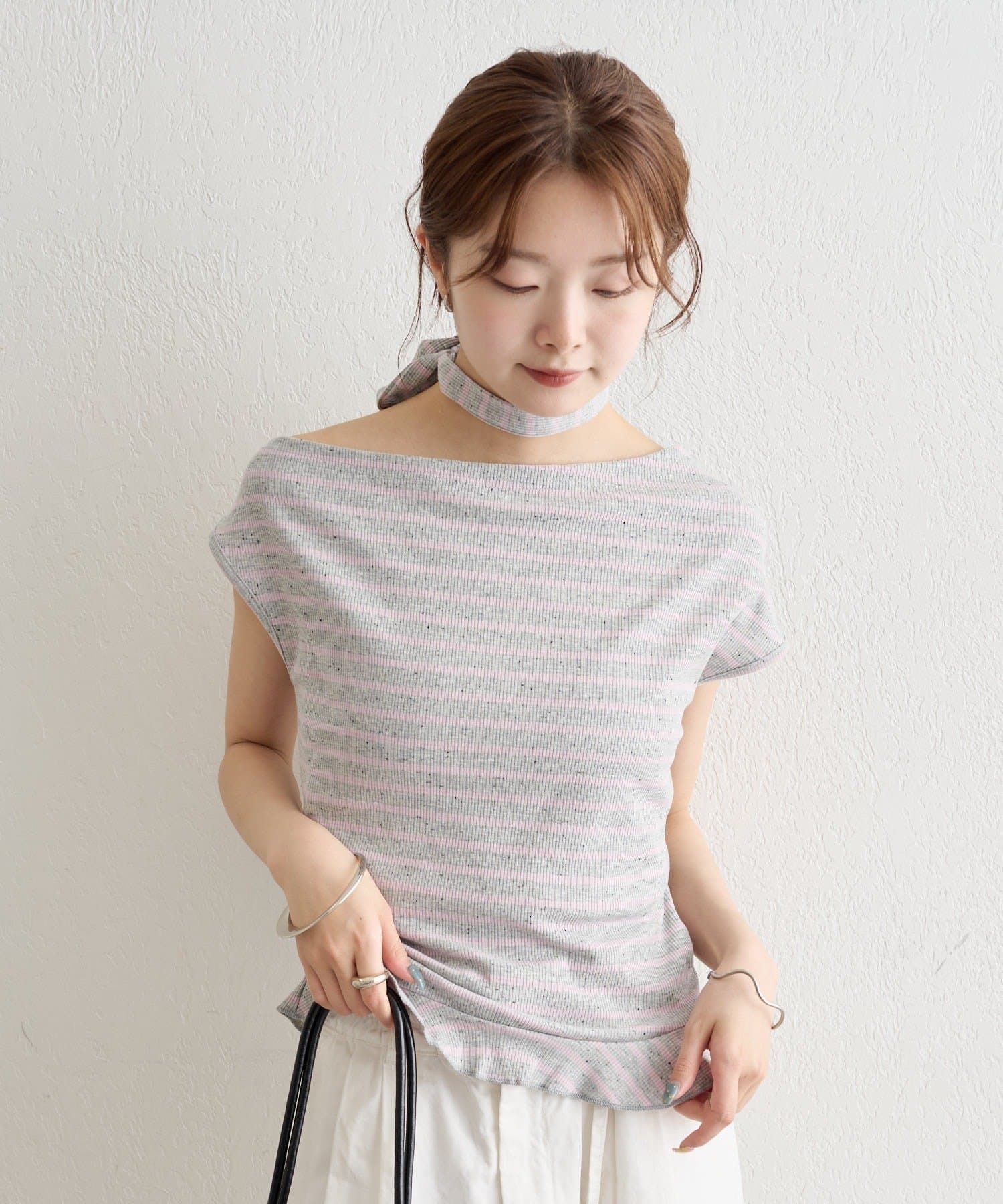 取り外し可能なチョーカー付きで、気分に合わせて2WAYの着こなしが楽しめます。