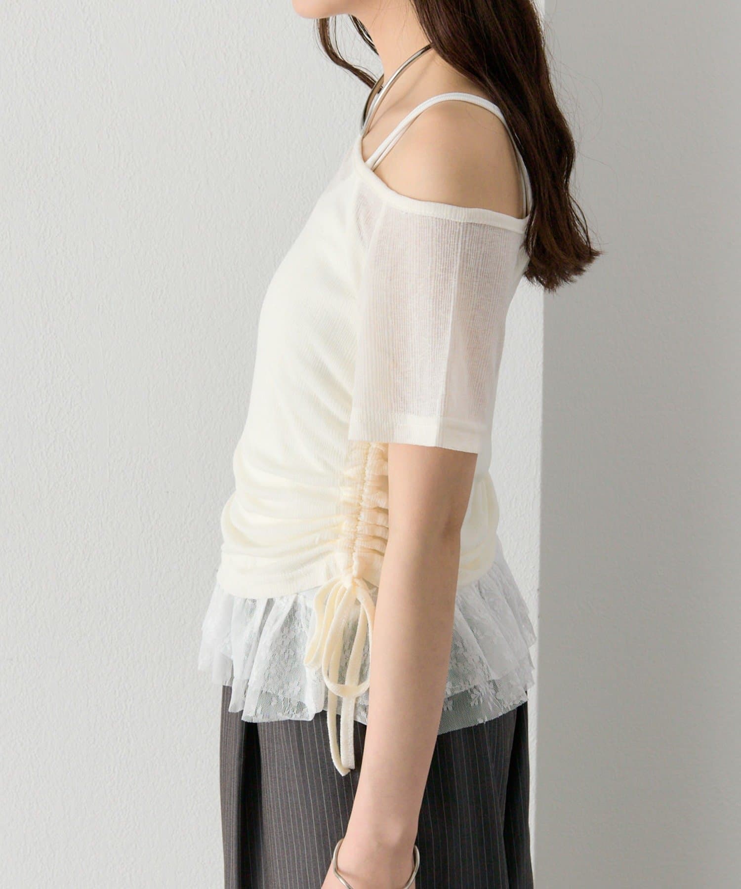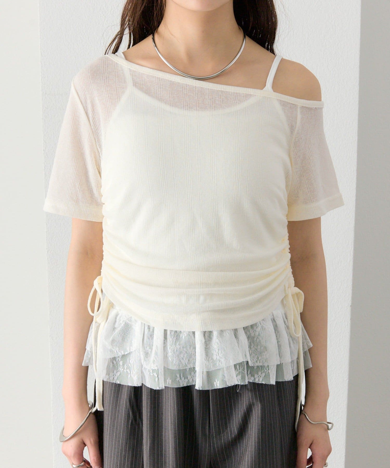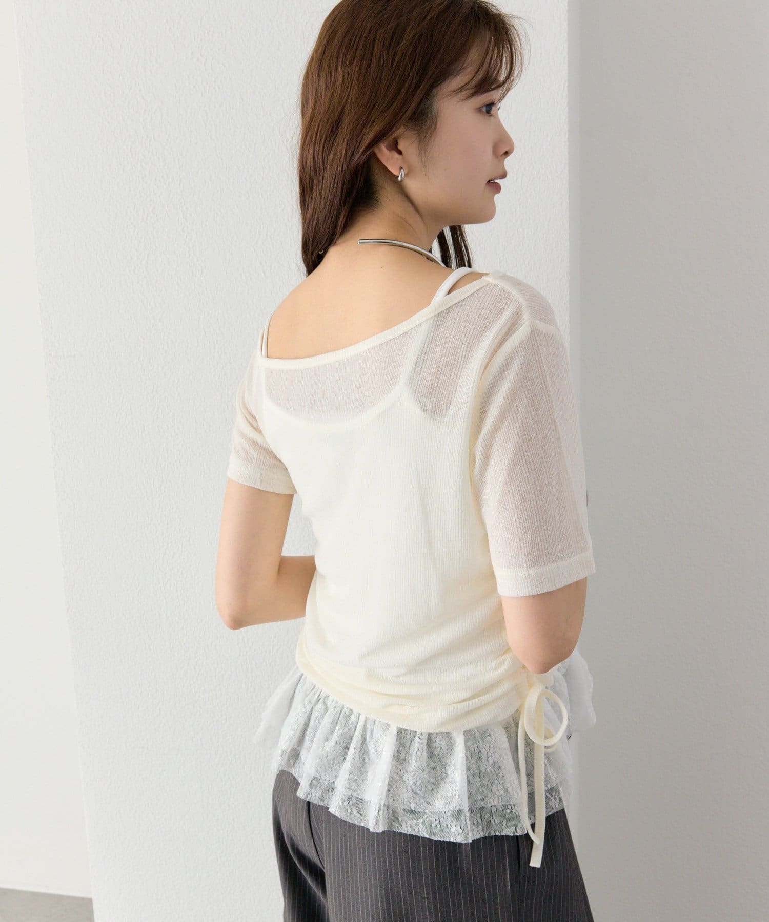 トップスとレースキャミは、それぞれ単品でも着用できる仕様なので、着回し力抜群の1着です。