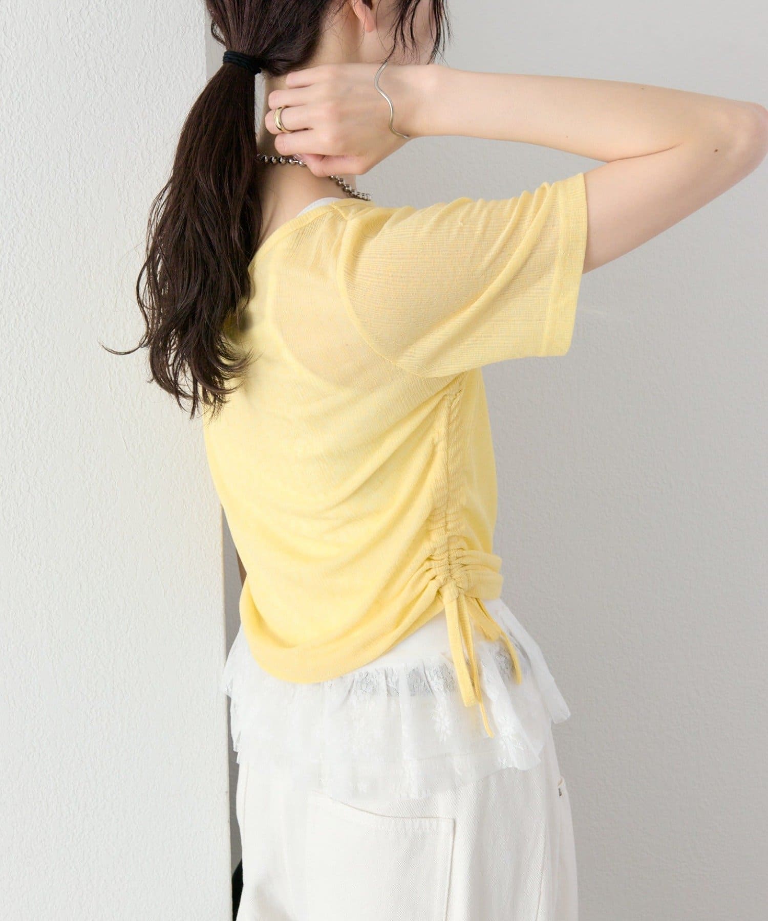 サイドのドロストデザインでシルエットの変化を楽しめます。