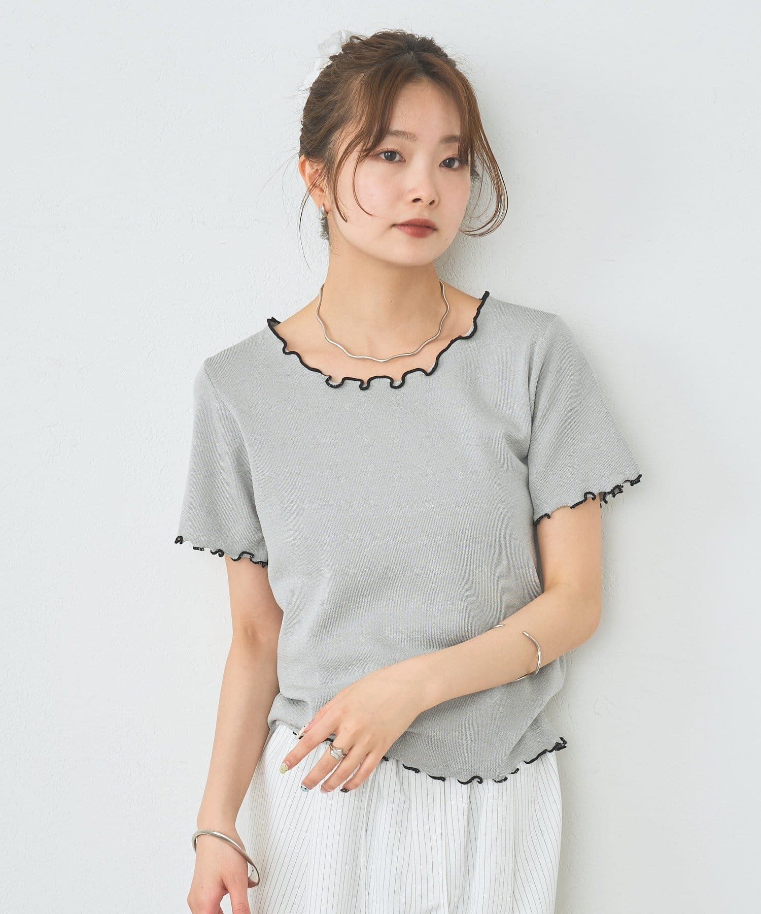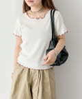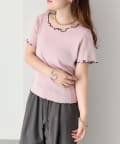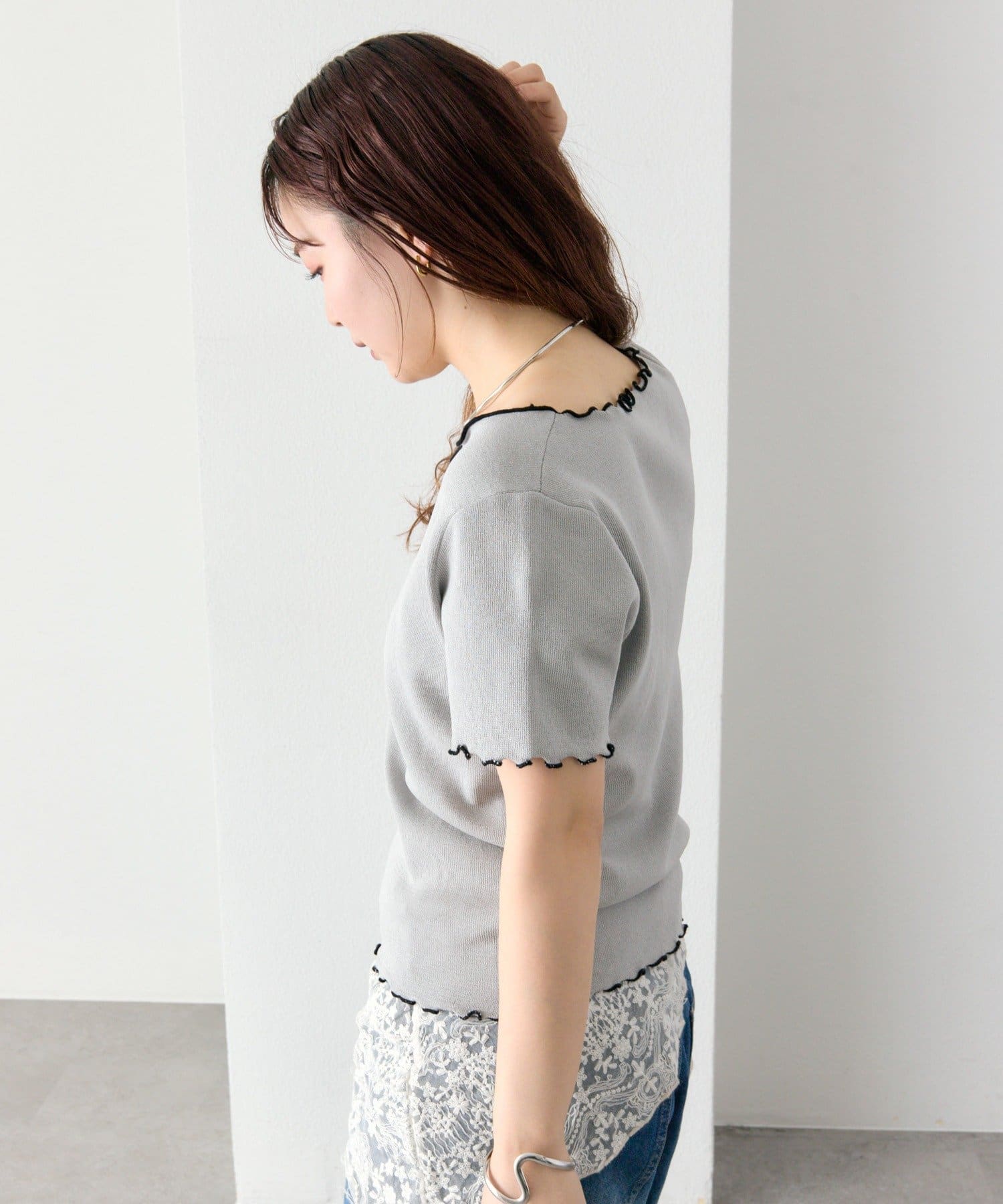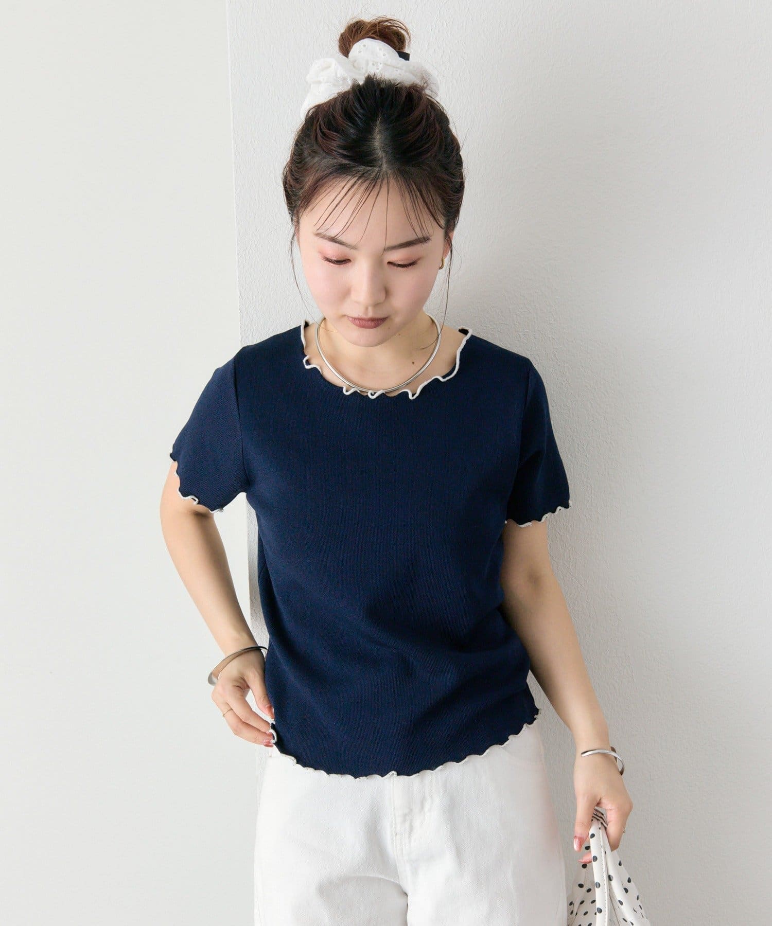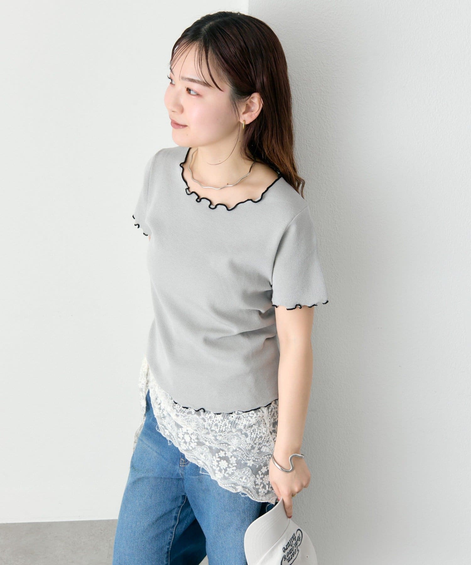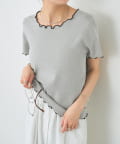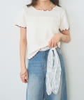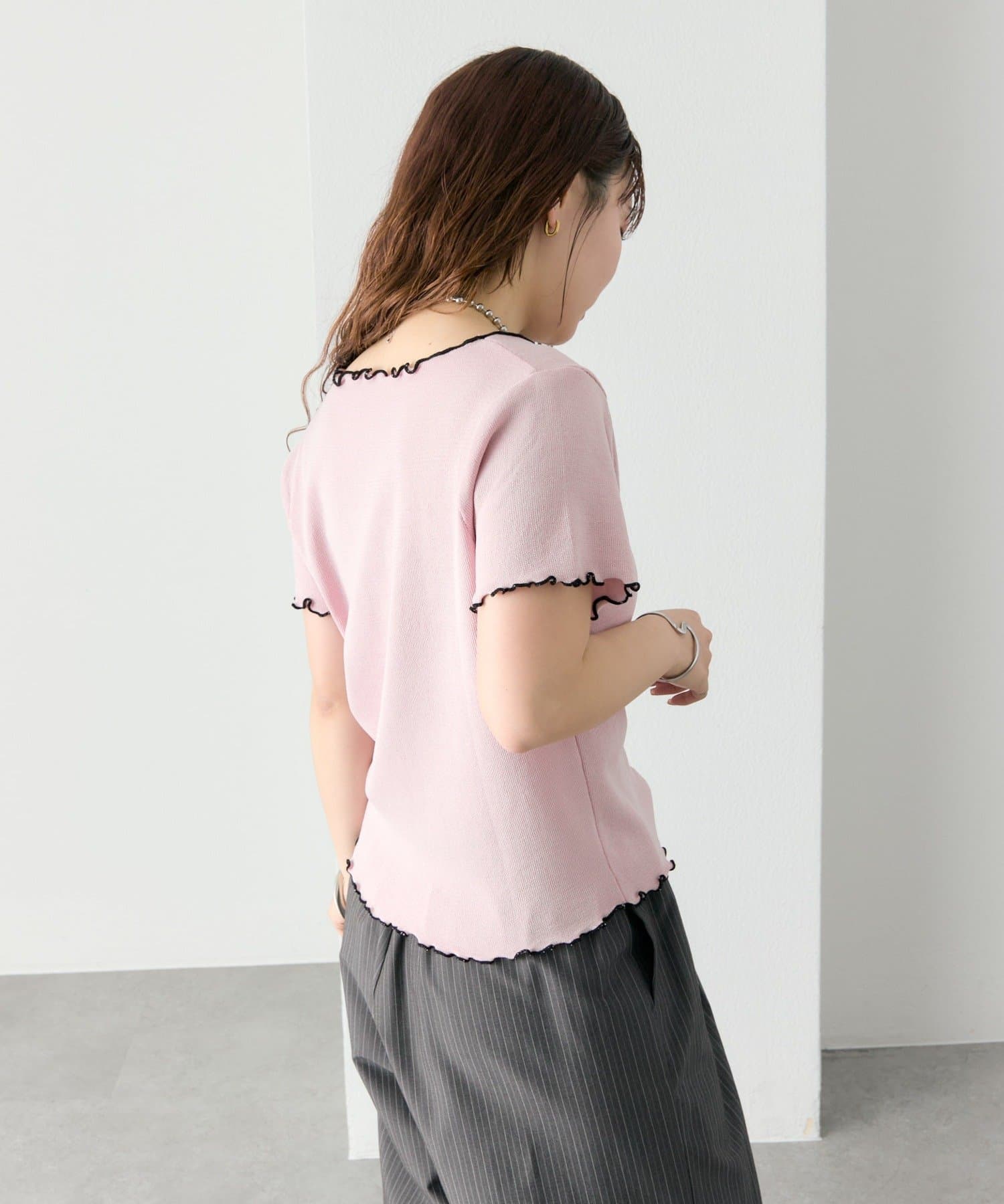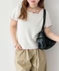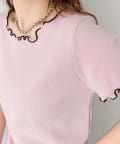 ・配色のメロウフリルがアクセントになったニットTシャツ。