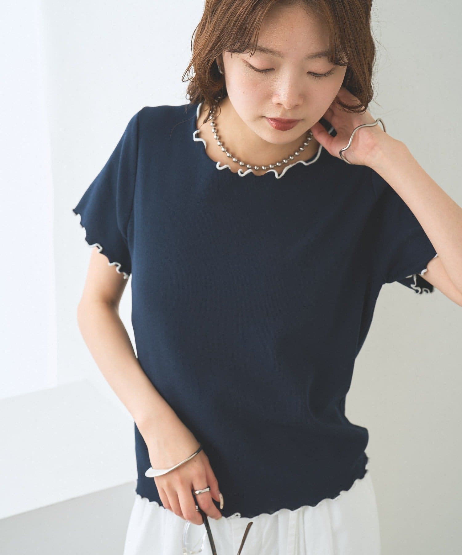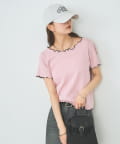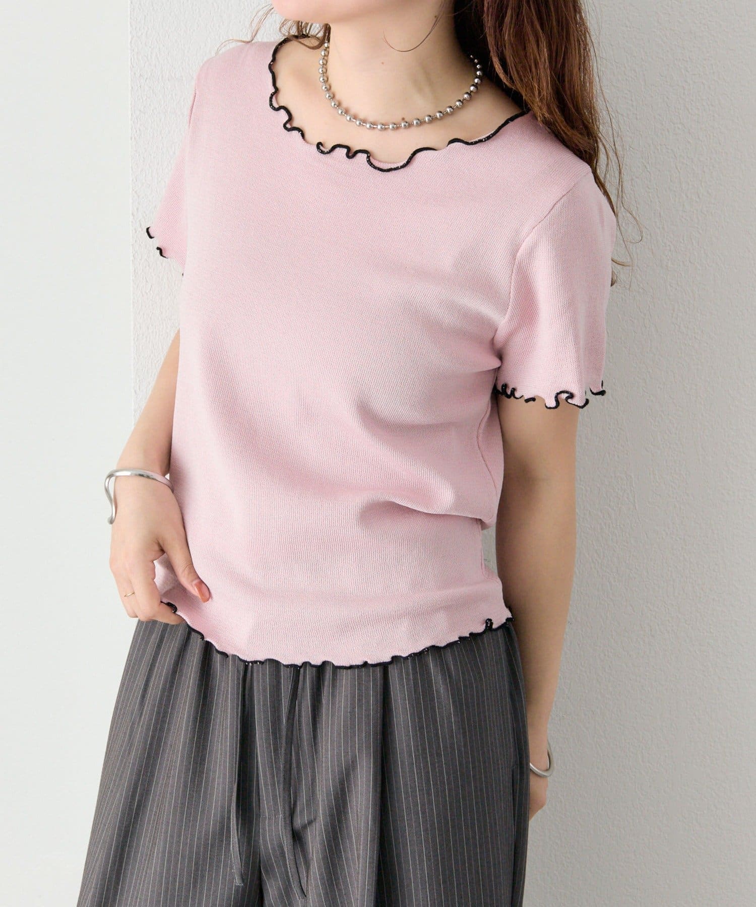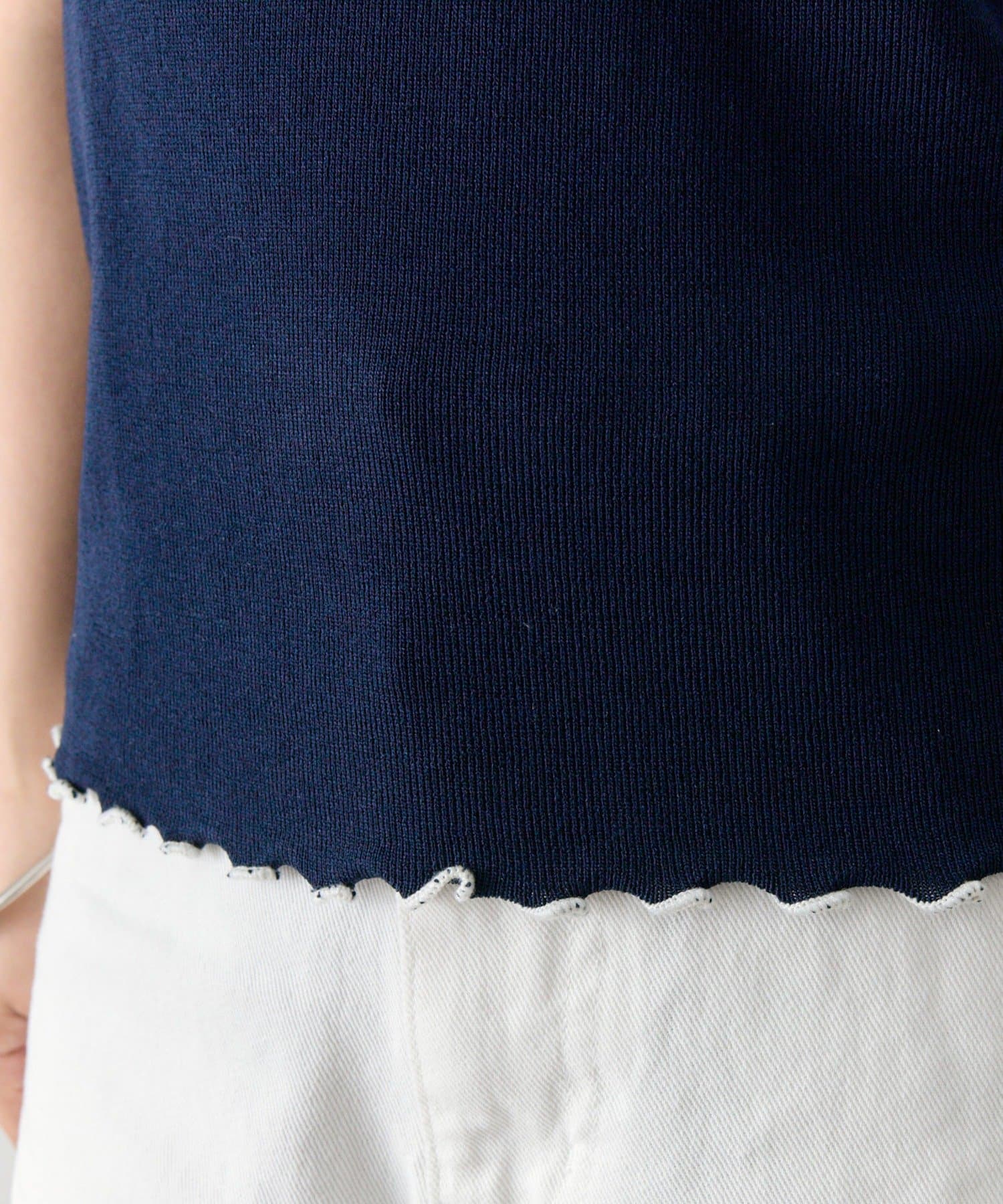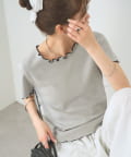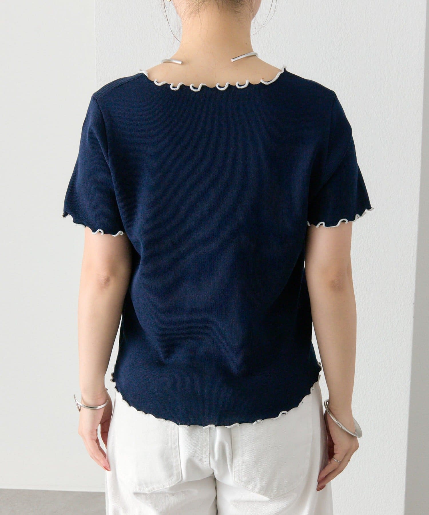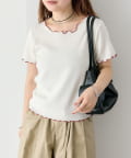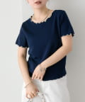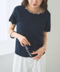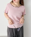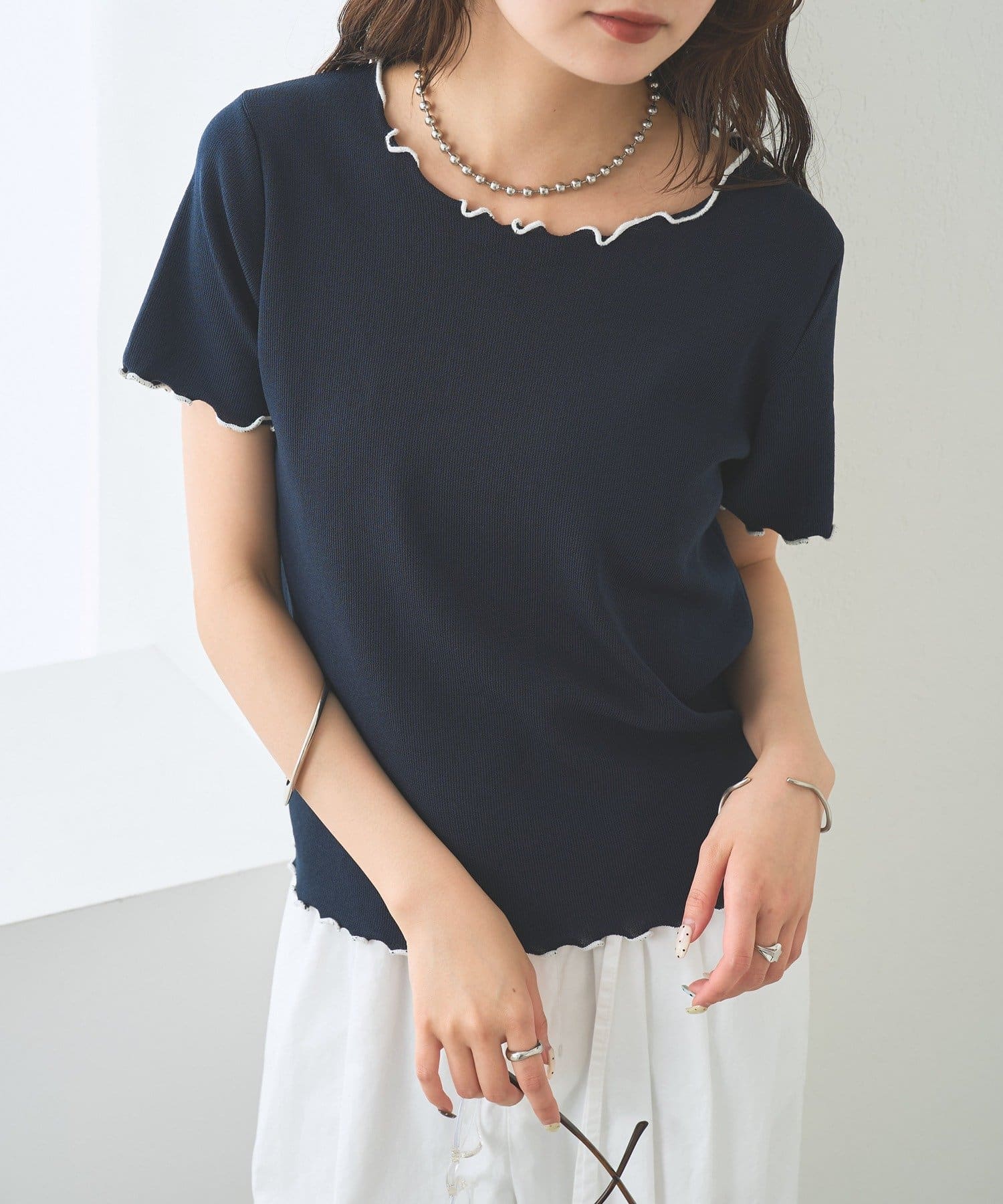 ・配色のメロウフリルがアクセントになったニットTシャツ。