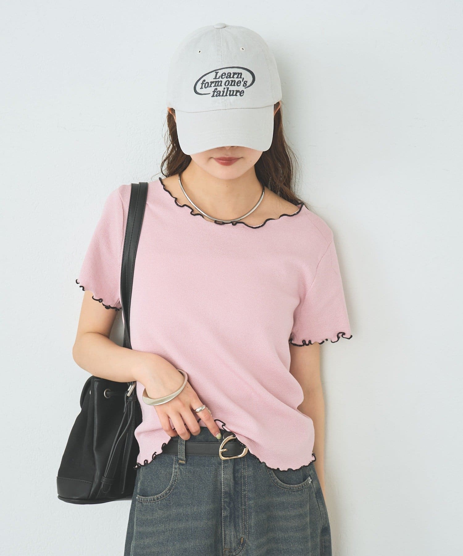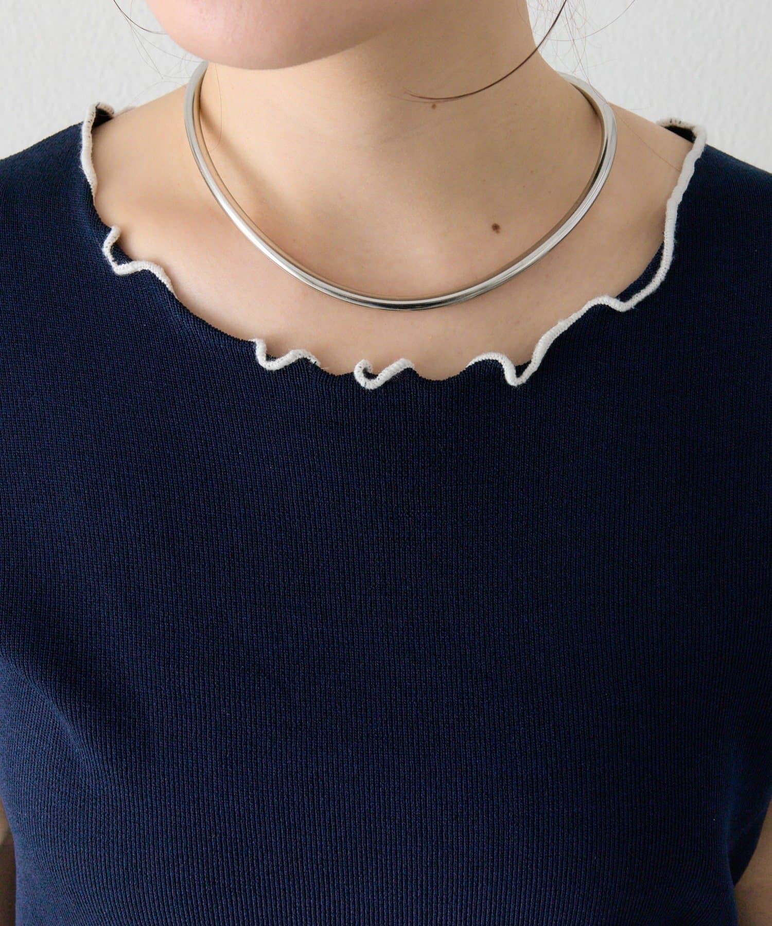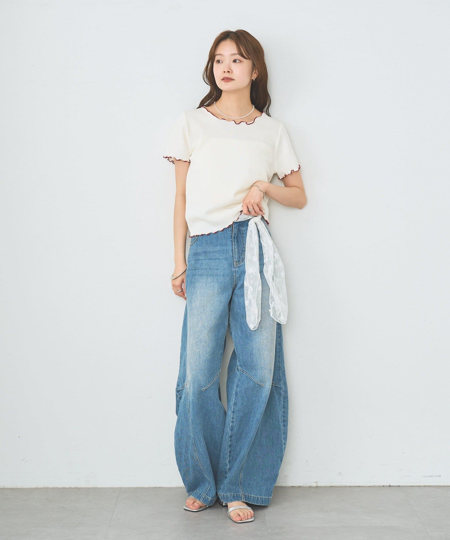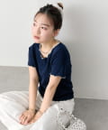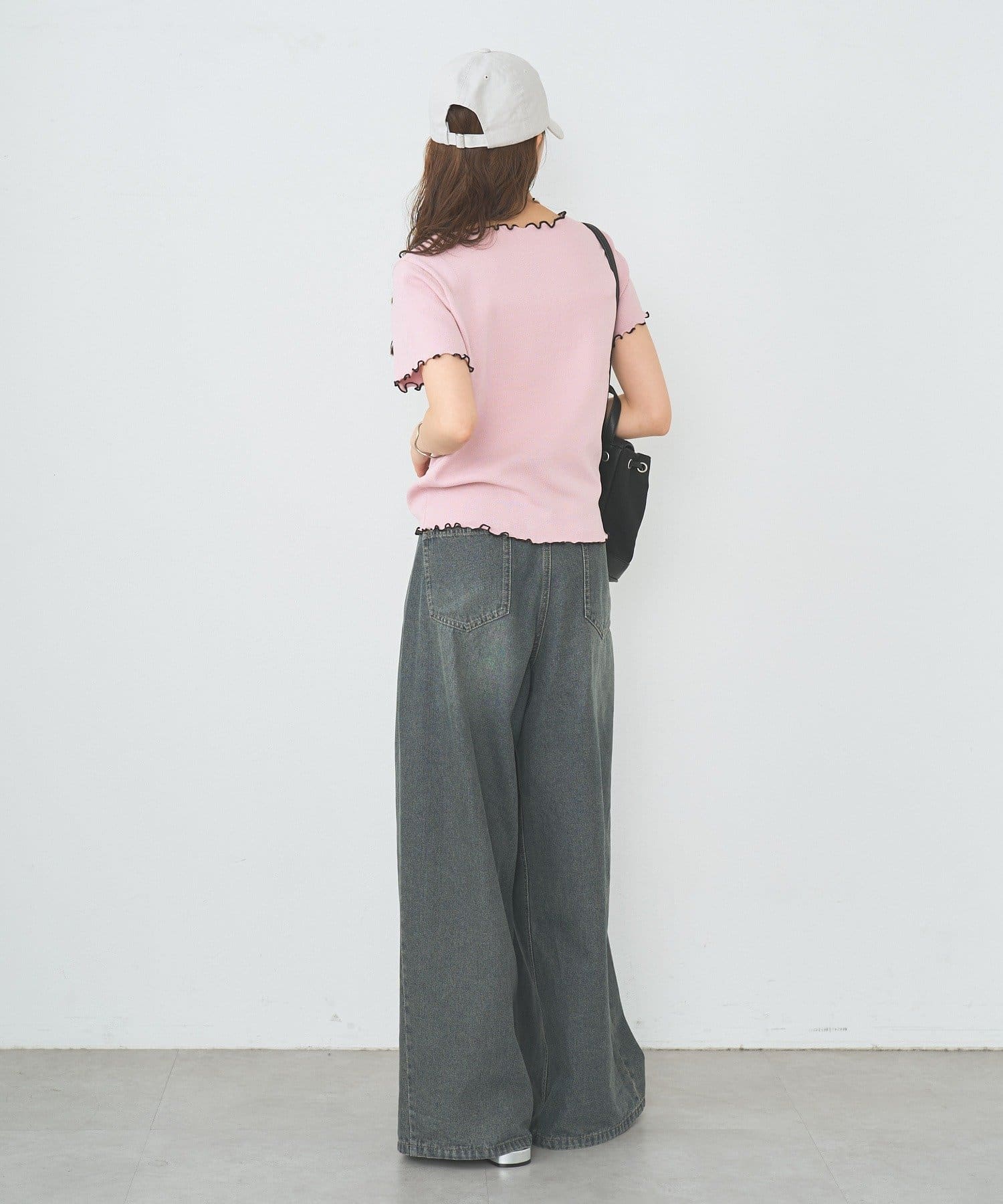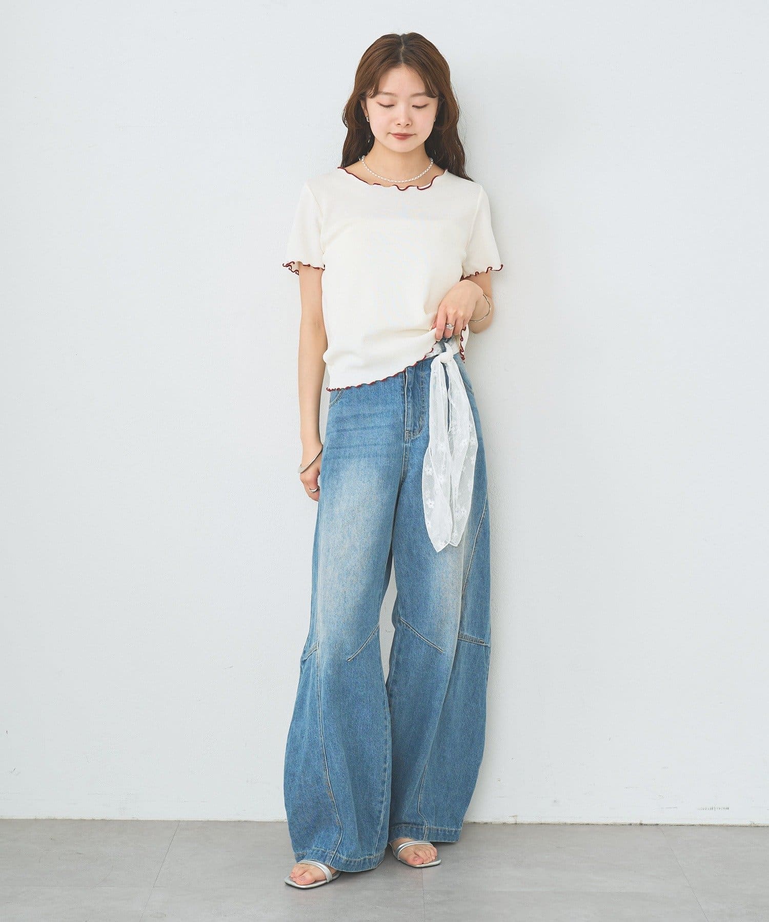 ・配色のメロウフリルがアクセントになったニットTシャツ。