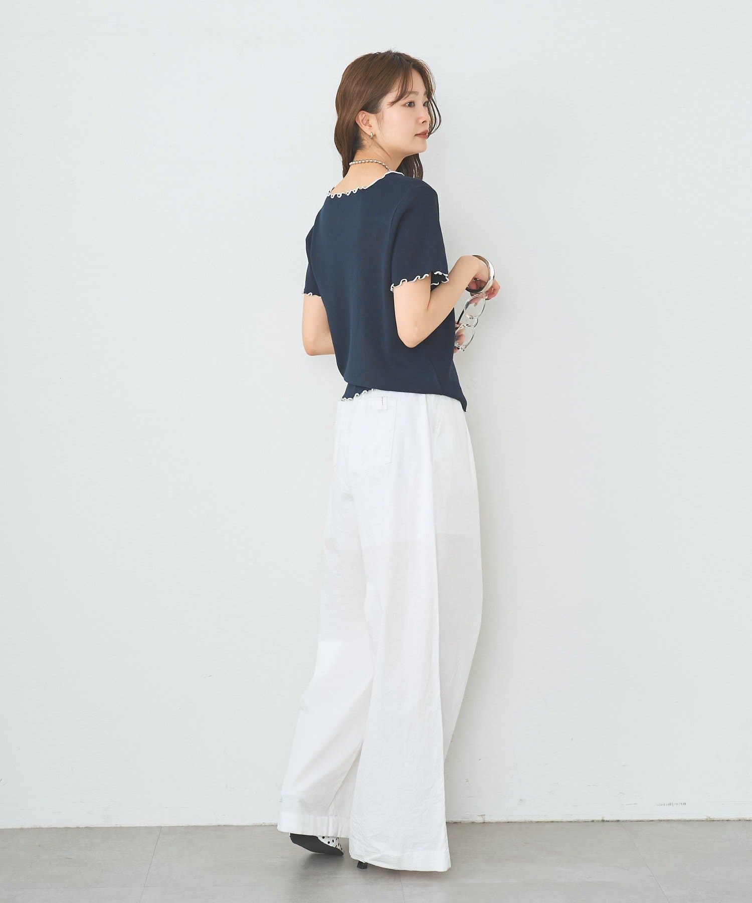 ・デニムやスラックスを合わせたカジュアルスタイルに。