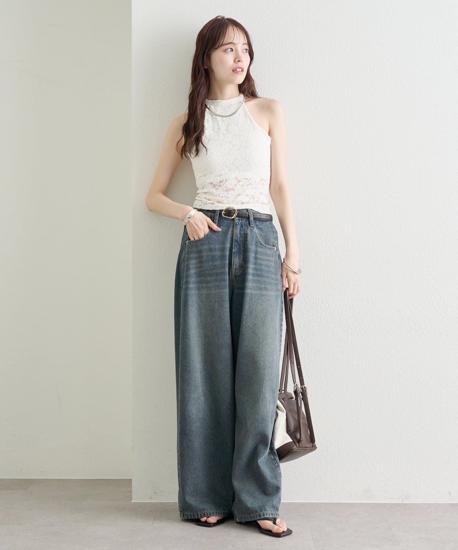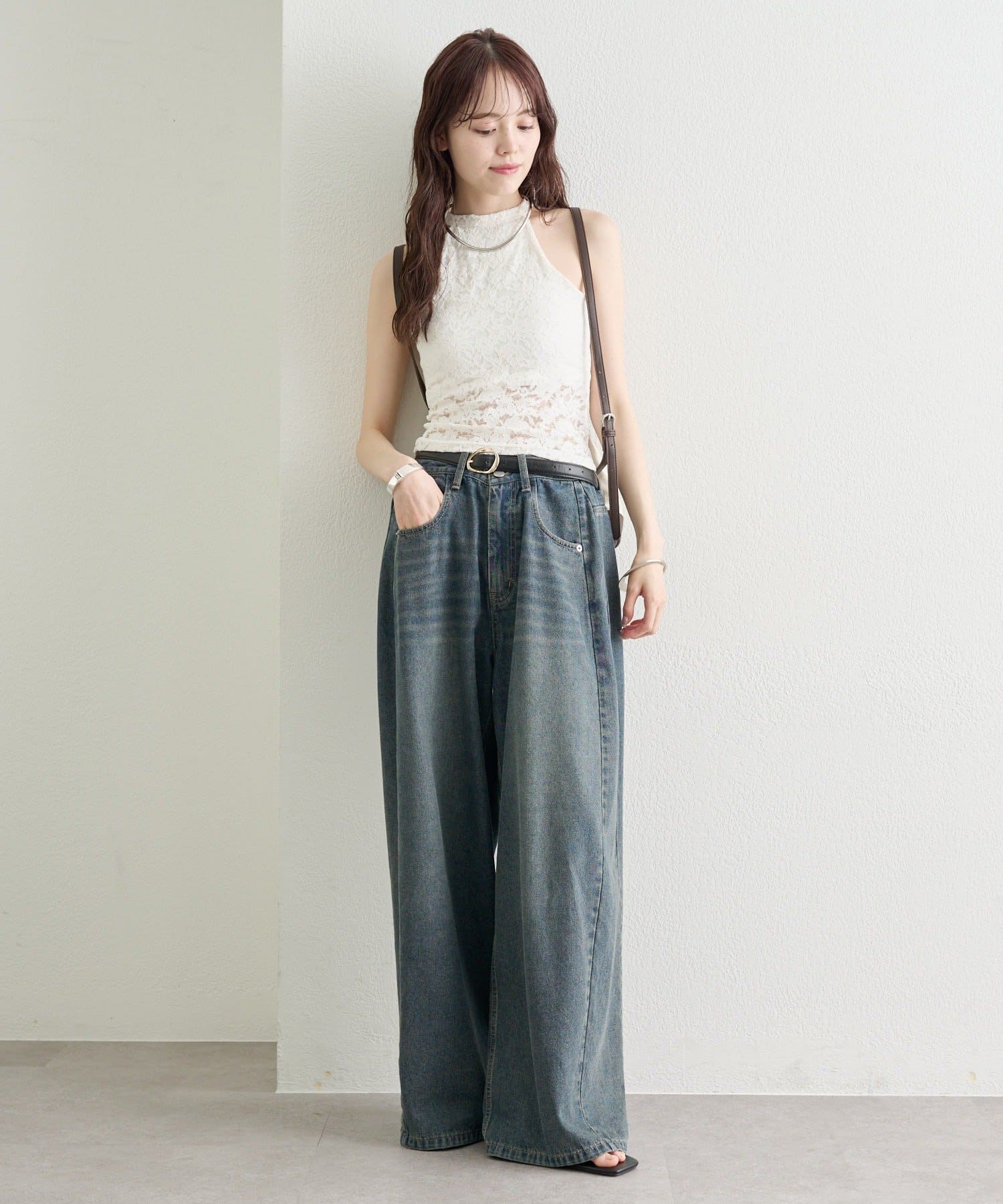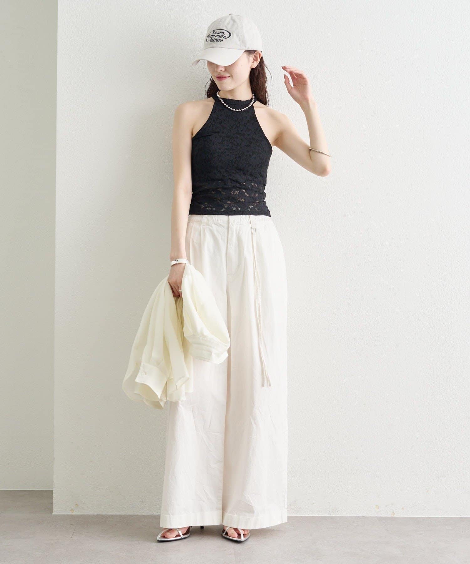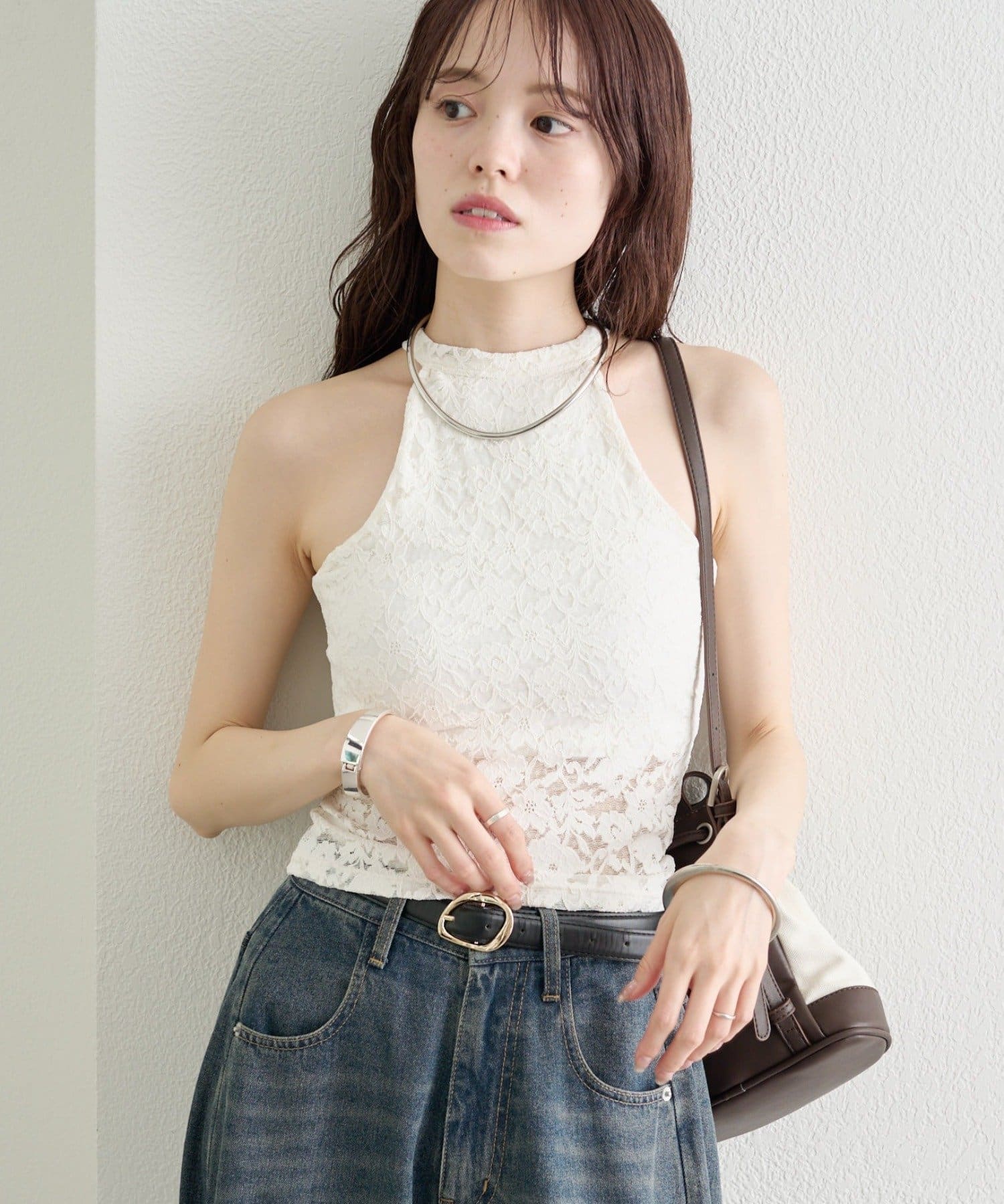 デニムやワイドパンツと合わせて、甘さをプラスしたカジュアルな着こなしに。